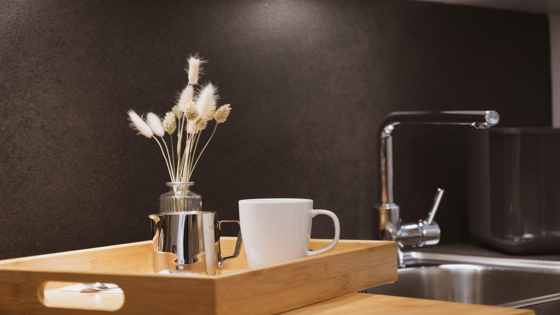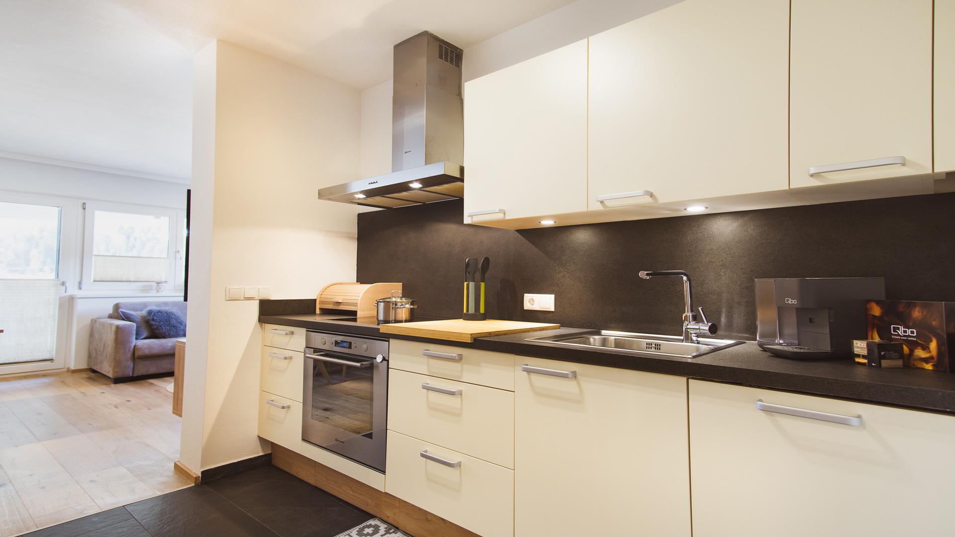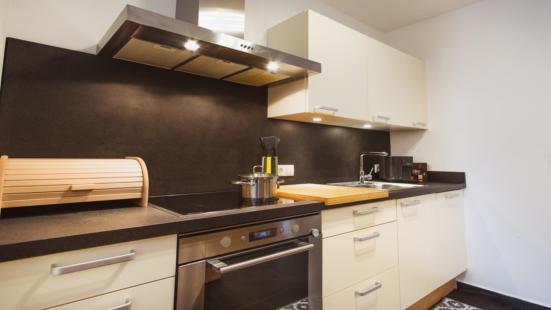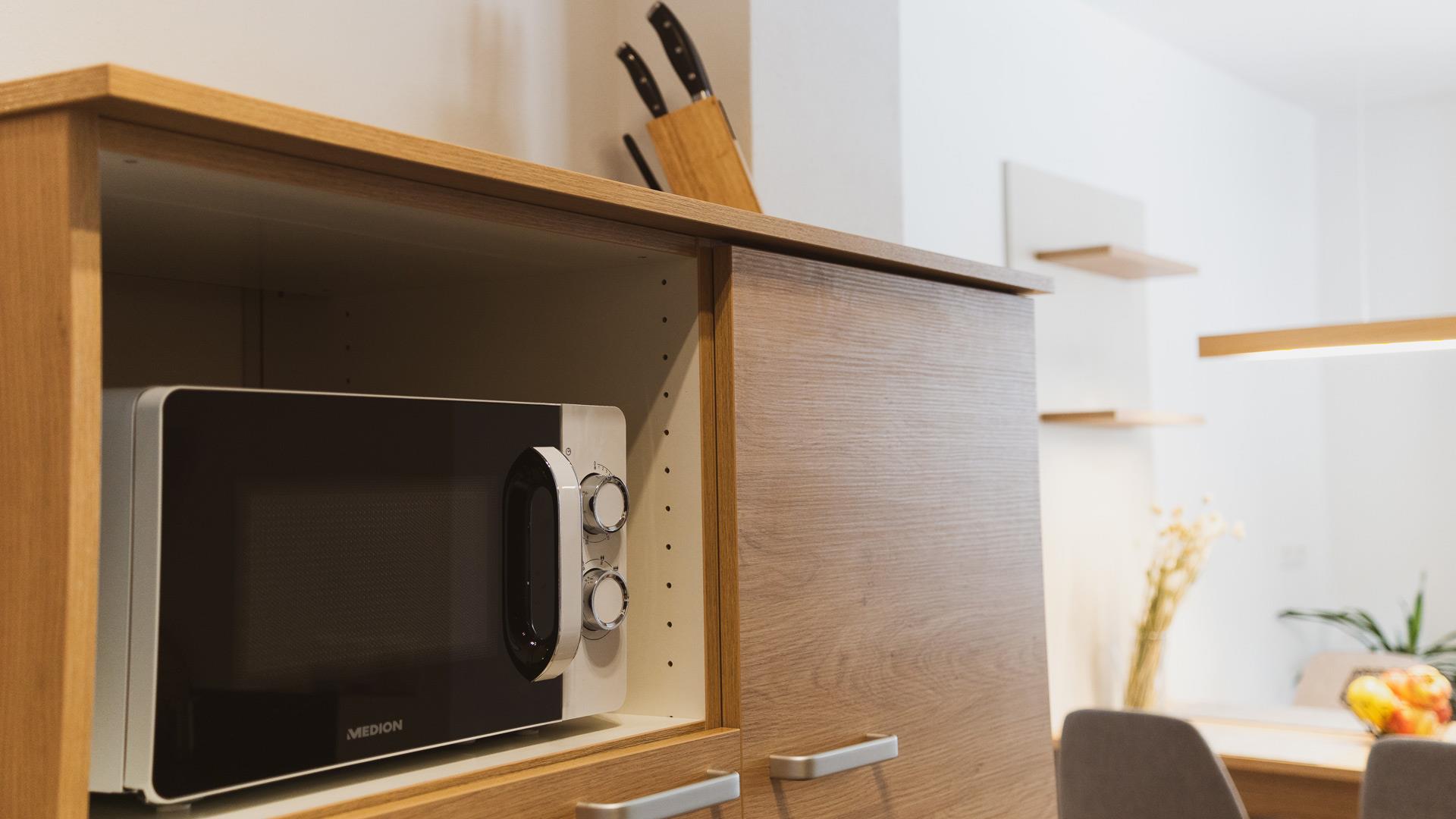 Das Apartment verfügt über eine voll ausgestattete Küche inklusive Kaffeemaschine, Wasserkocher, Mikrowelle, Kühlschrank mit Gefrierfach, 4 Kochfelder und Backrohr, Toaster und natürlich einem Geschirrspüler. Ausreichend Geschirr, Besteck, Koch,- und Spülutensilien inklusive Spültaps und Geschirrtücher sind vorhanden.