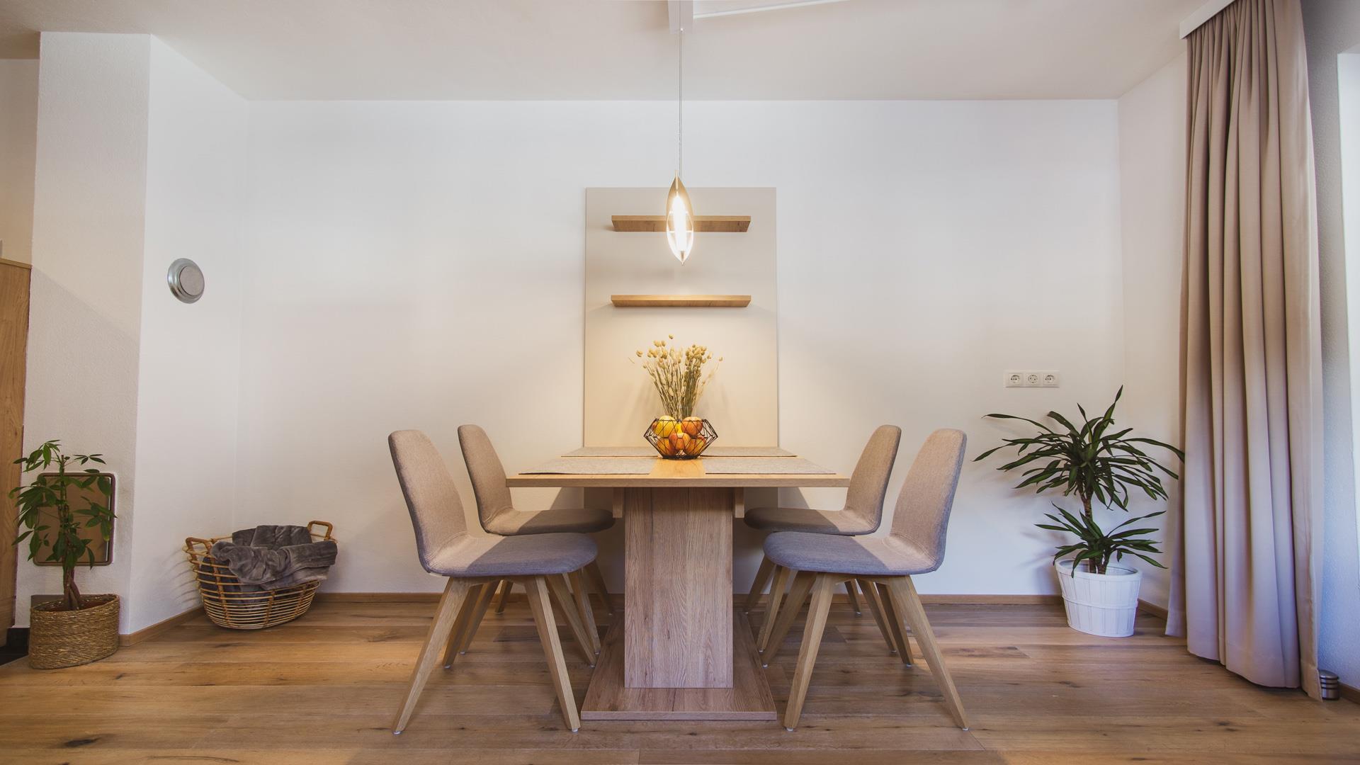 Der gemütliche Essbereich lädt zum gemeinsamen Speisen oder einem Spieleabend ein. Natürlich steht ein Hochstuhl für Eure Kleinen bei Bedarf bereit.