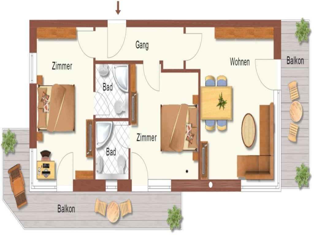 • 2 Badezimmer mit Dusche & WC (inkl. Haartrockner),