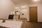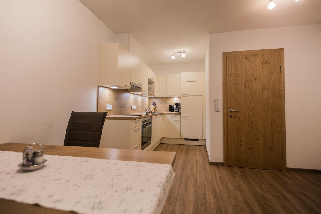 • 1 Wohnküche komplett ausgestattet mit gemütliche Polstersitzecke und großem Esstisch