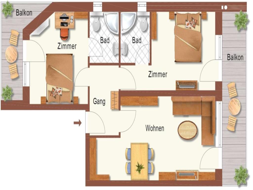 • 2 Badezimmer mit Dusche & WC (inkl. Haartrockner),