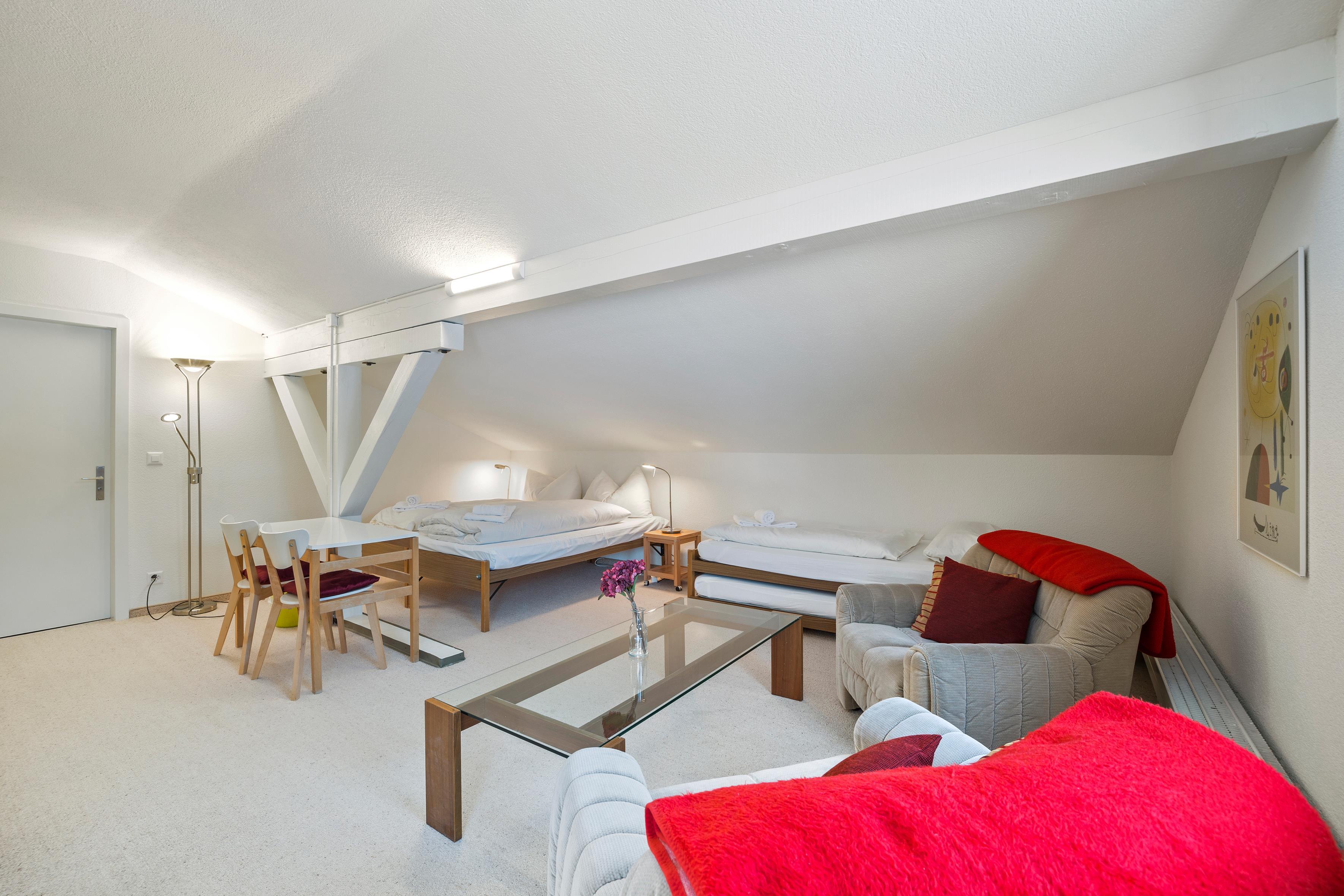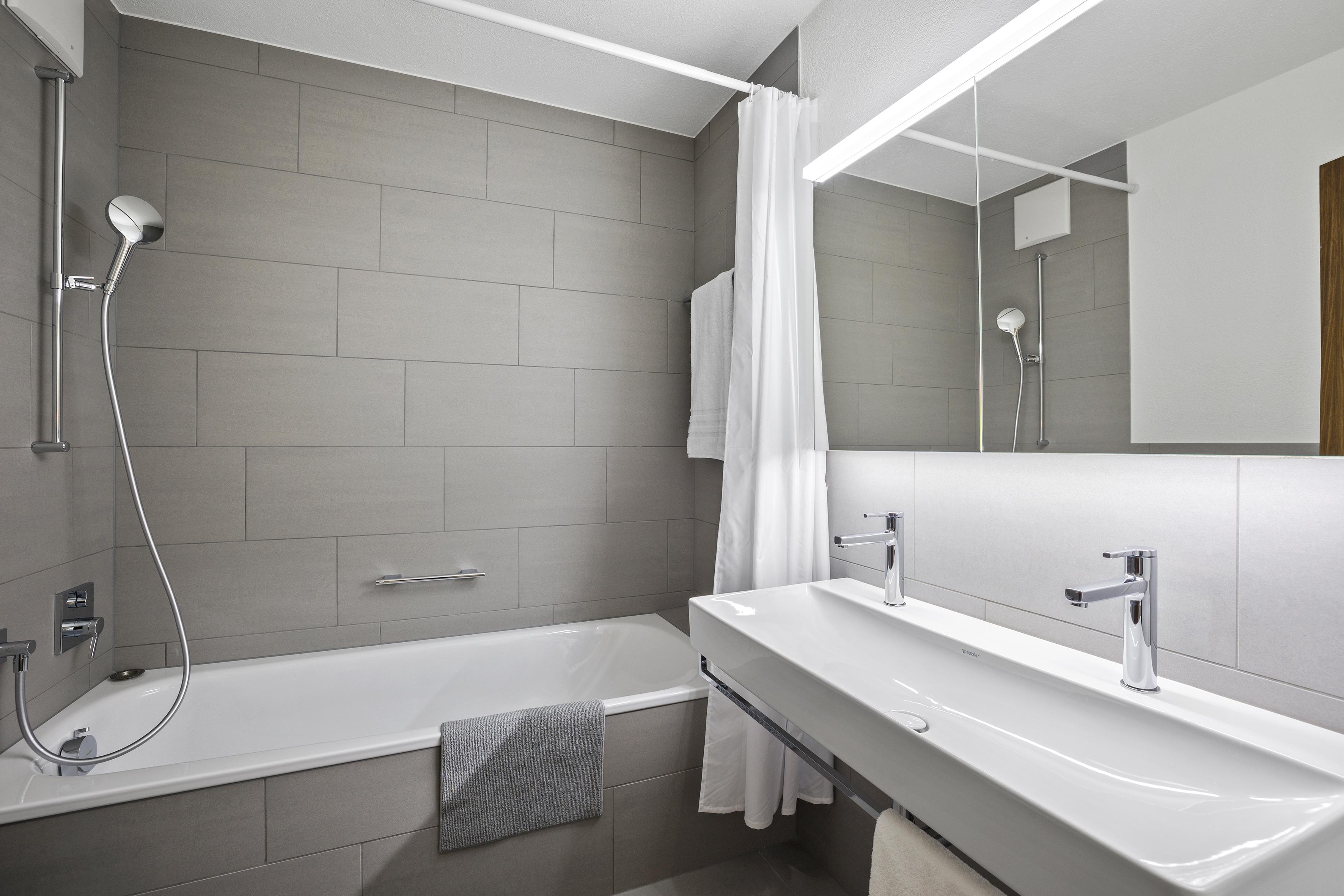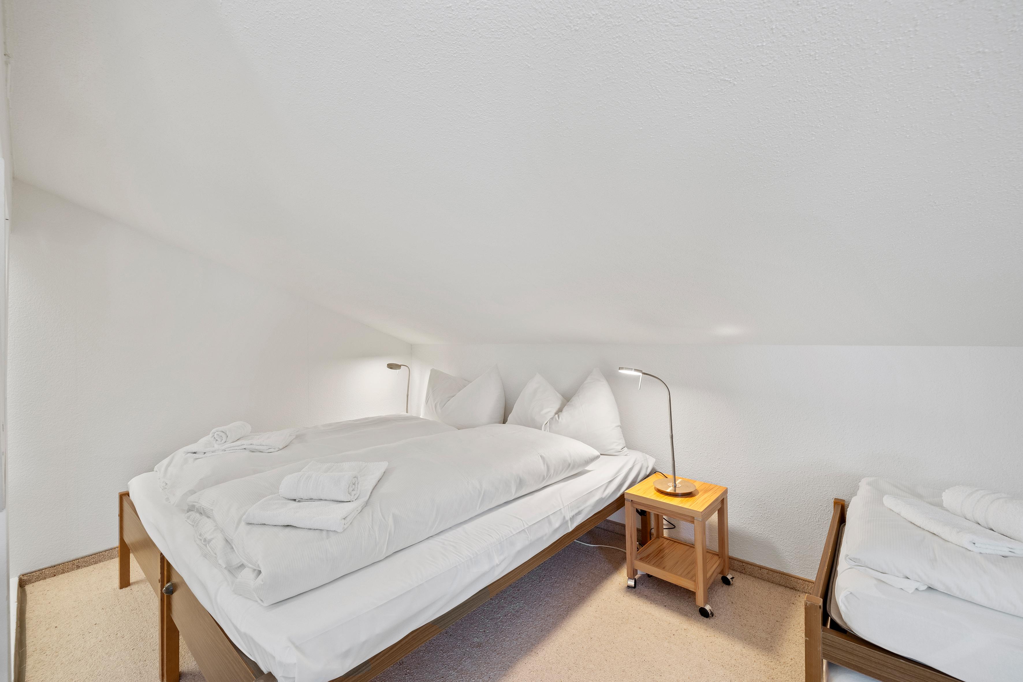 Triangel Haus A / Lift / Wlan ja / 3. Obergeschoss / 1 Zimmer mit Doppelbett / 1 Zimmer mit Doppelbett und zwei Einzelbetten / 1 Badezimmer mit WC und Badewanne / 1 Separates WC