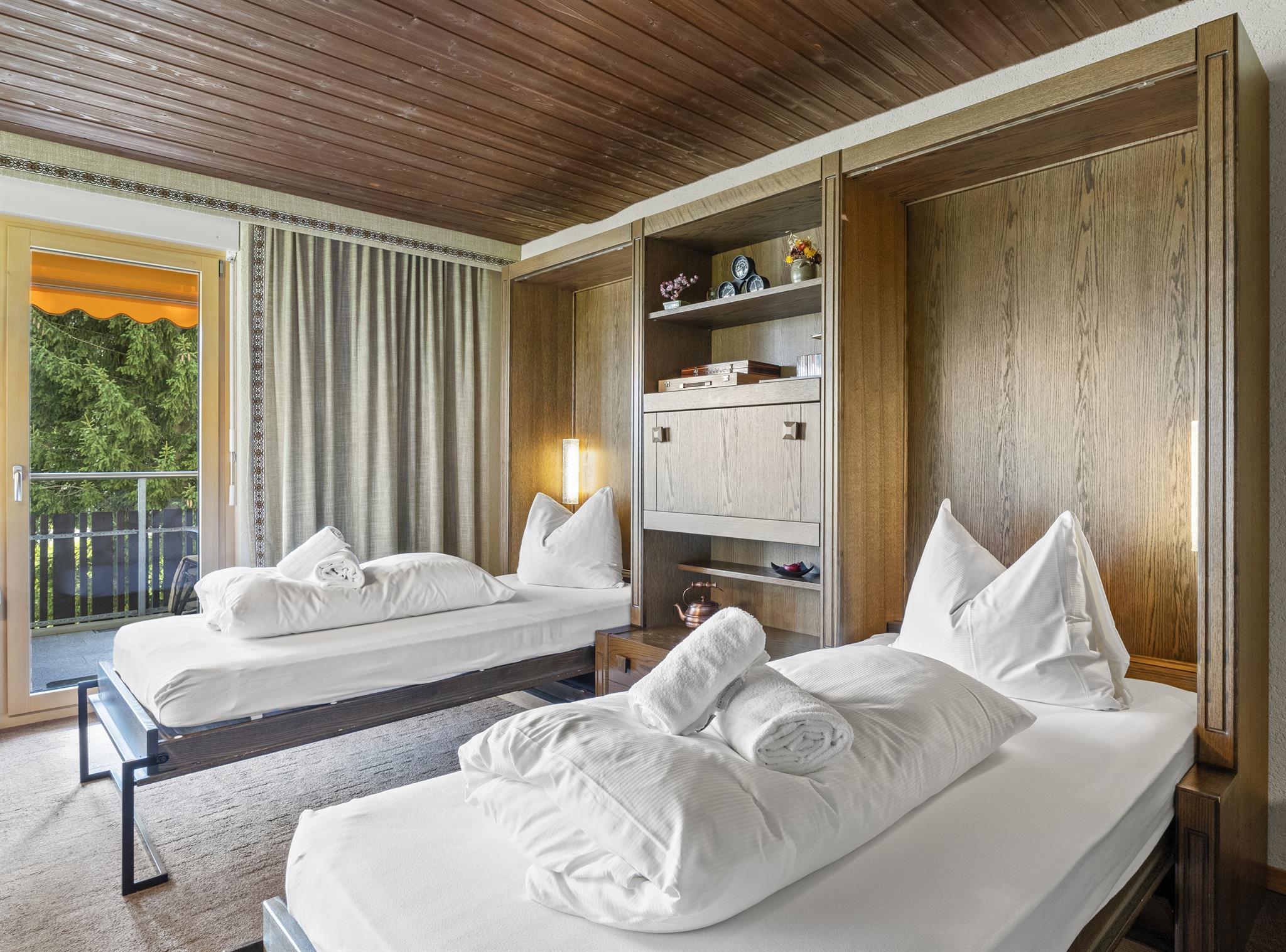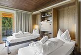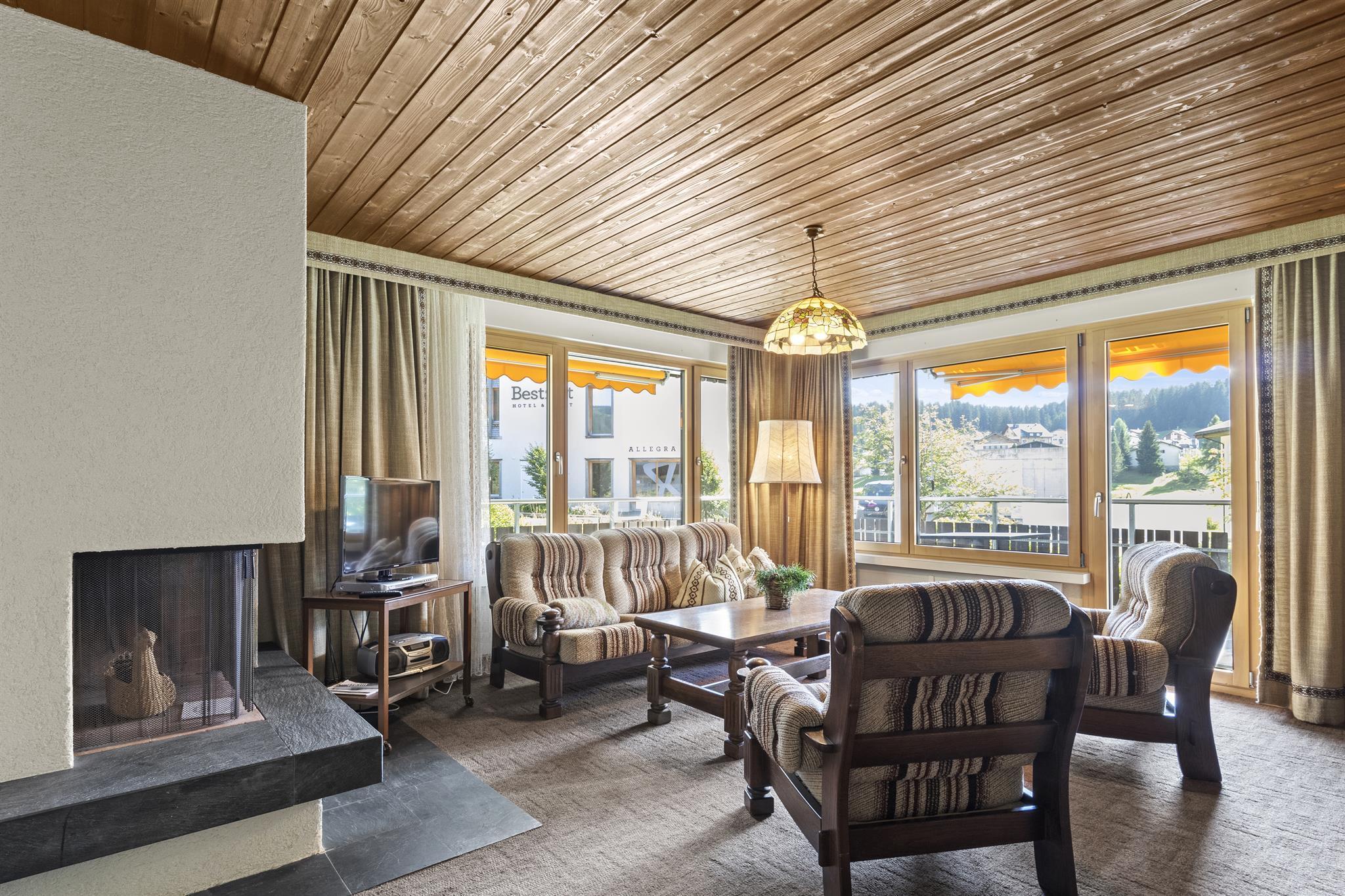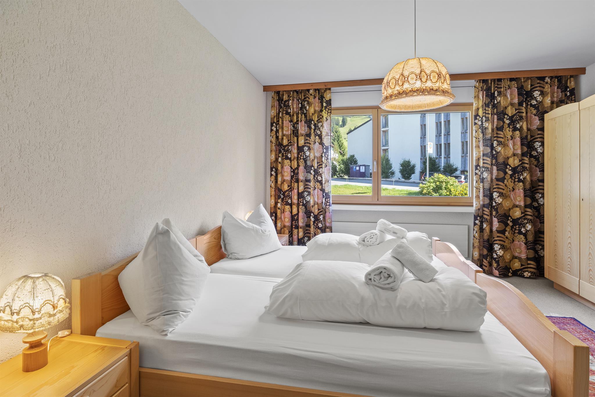Triangel Haus D / 1. Obergeschoss / Lift / kein Wlan / 1 Zimmer mit Doppelbett / 1 Zimmer mit 2 Schrankbetten im Wohnbereich / 1 Badezimmer mit WC mit Badewanne / 1 separates WC