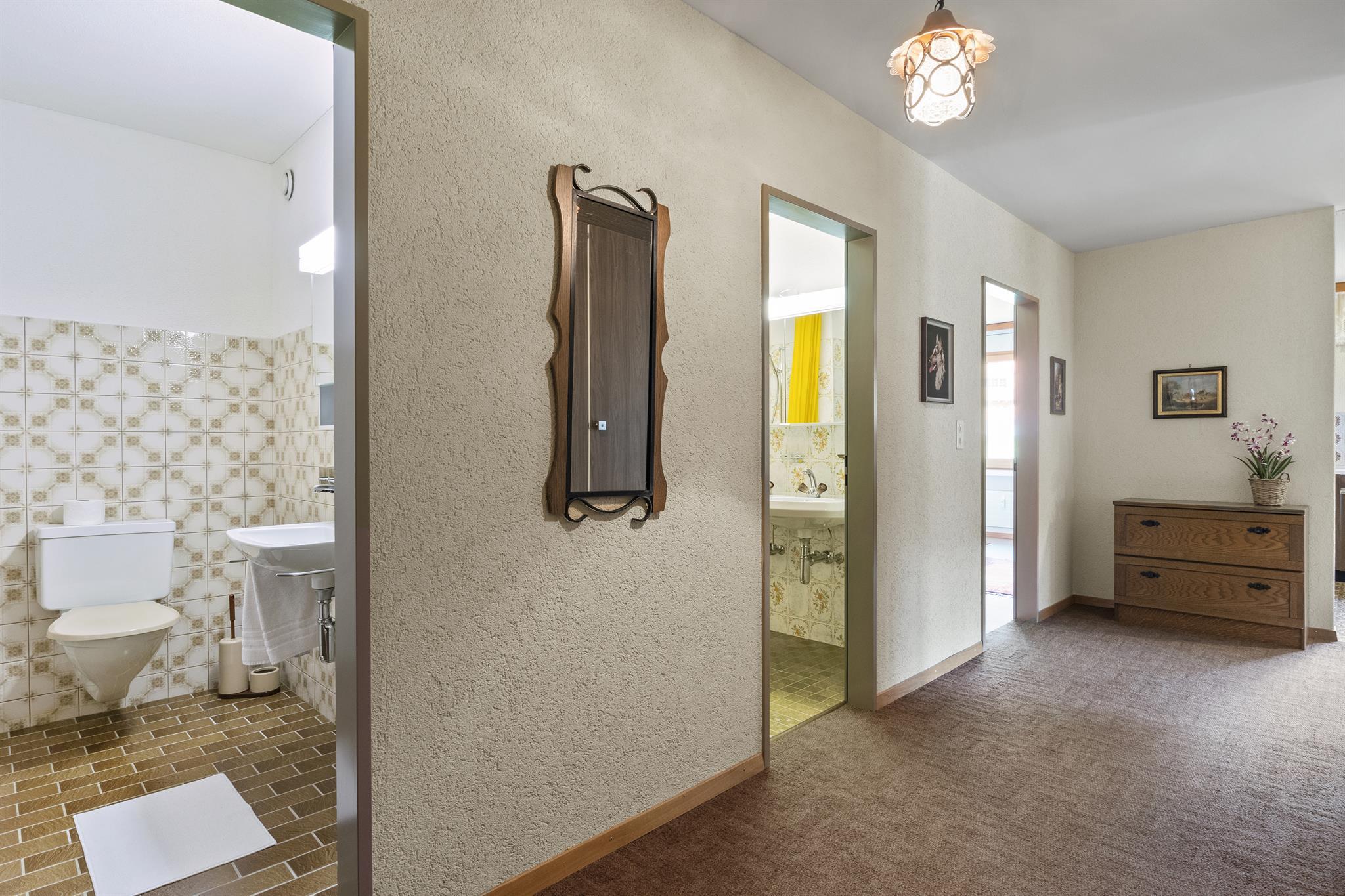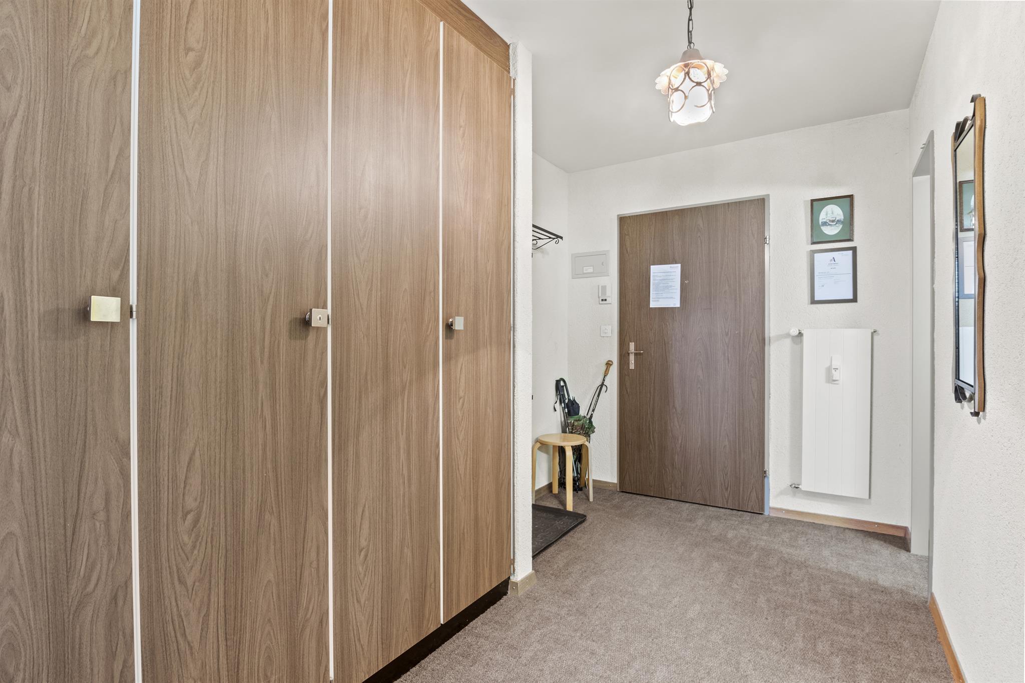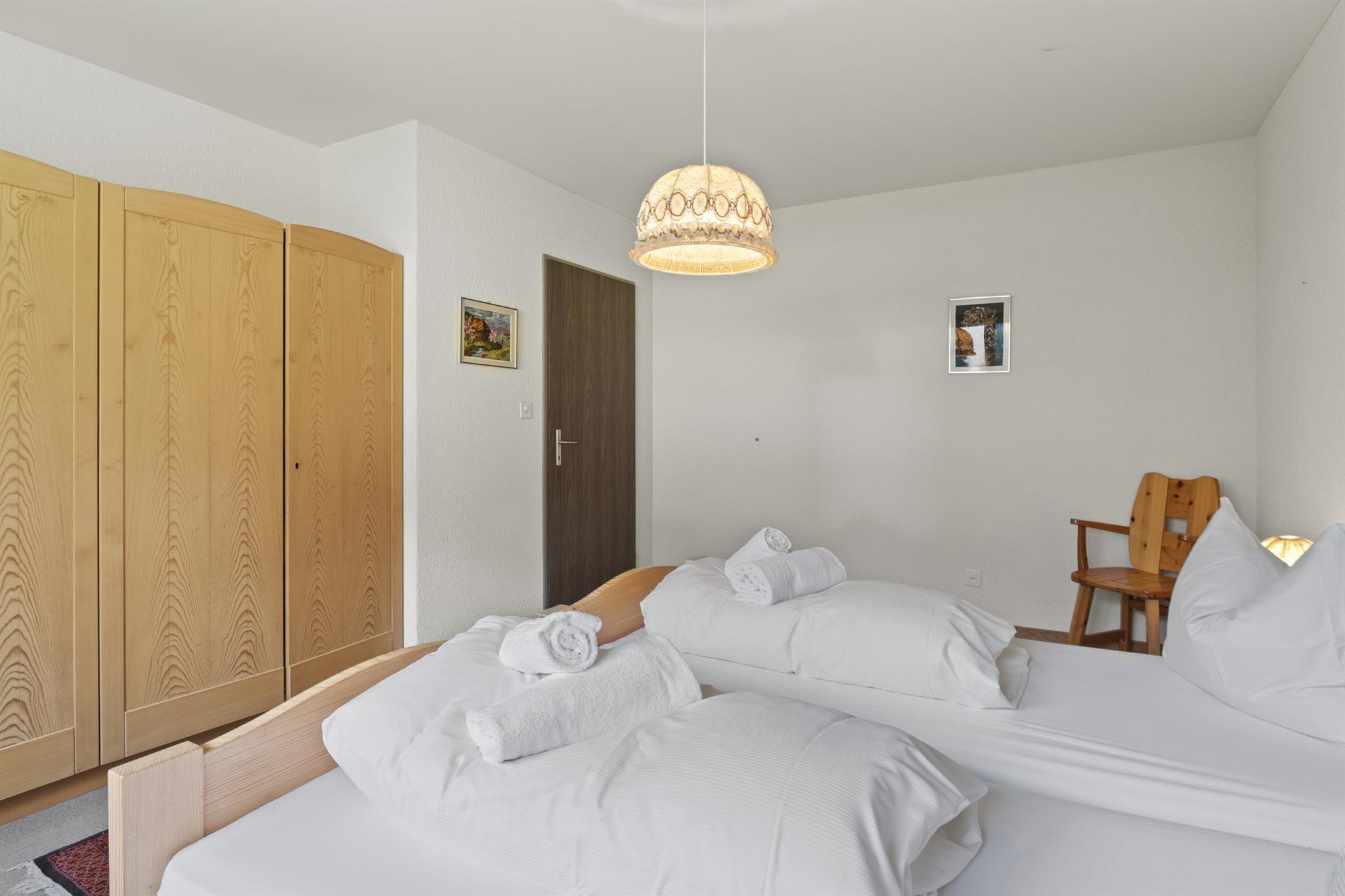 Rustikale 2.5 - Zimmerwohnung in einem Mehrfamilienhaus. Die 4 Bett-Wohnung befindet sich im 1. Obergeschoss und ist mit Teppichboden ausgestattet, sie verfügt über eine offene Wohnküche.