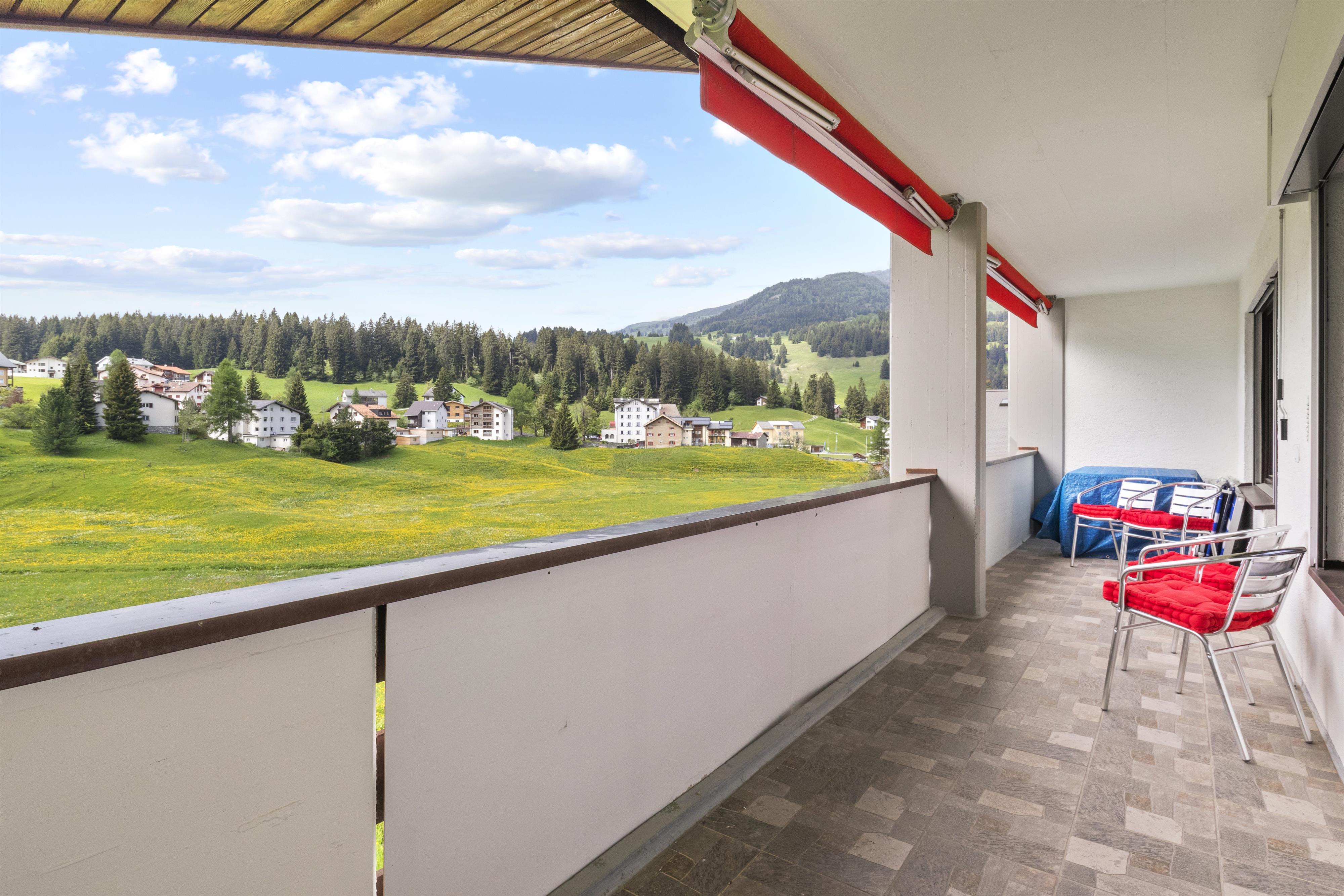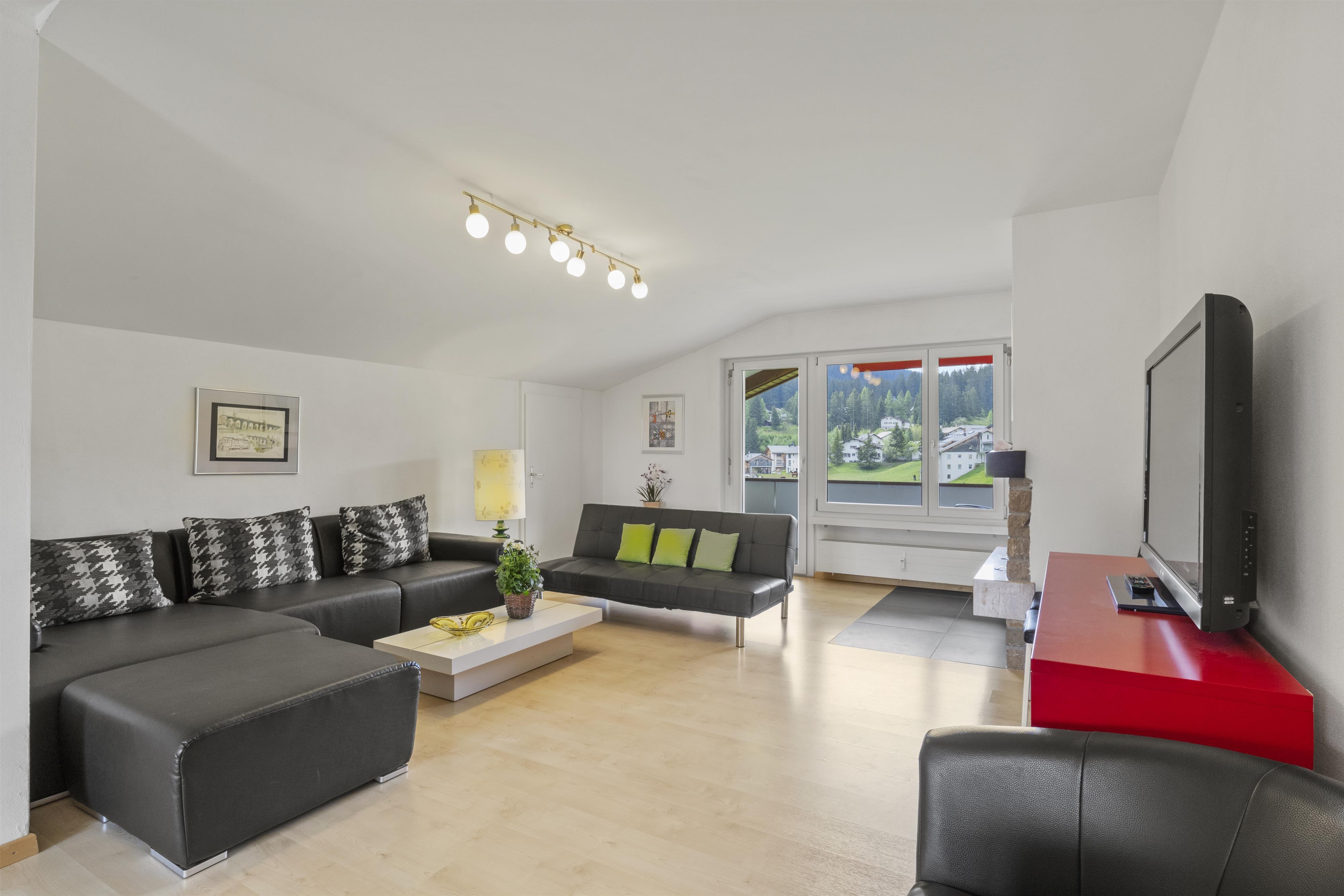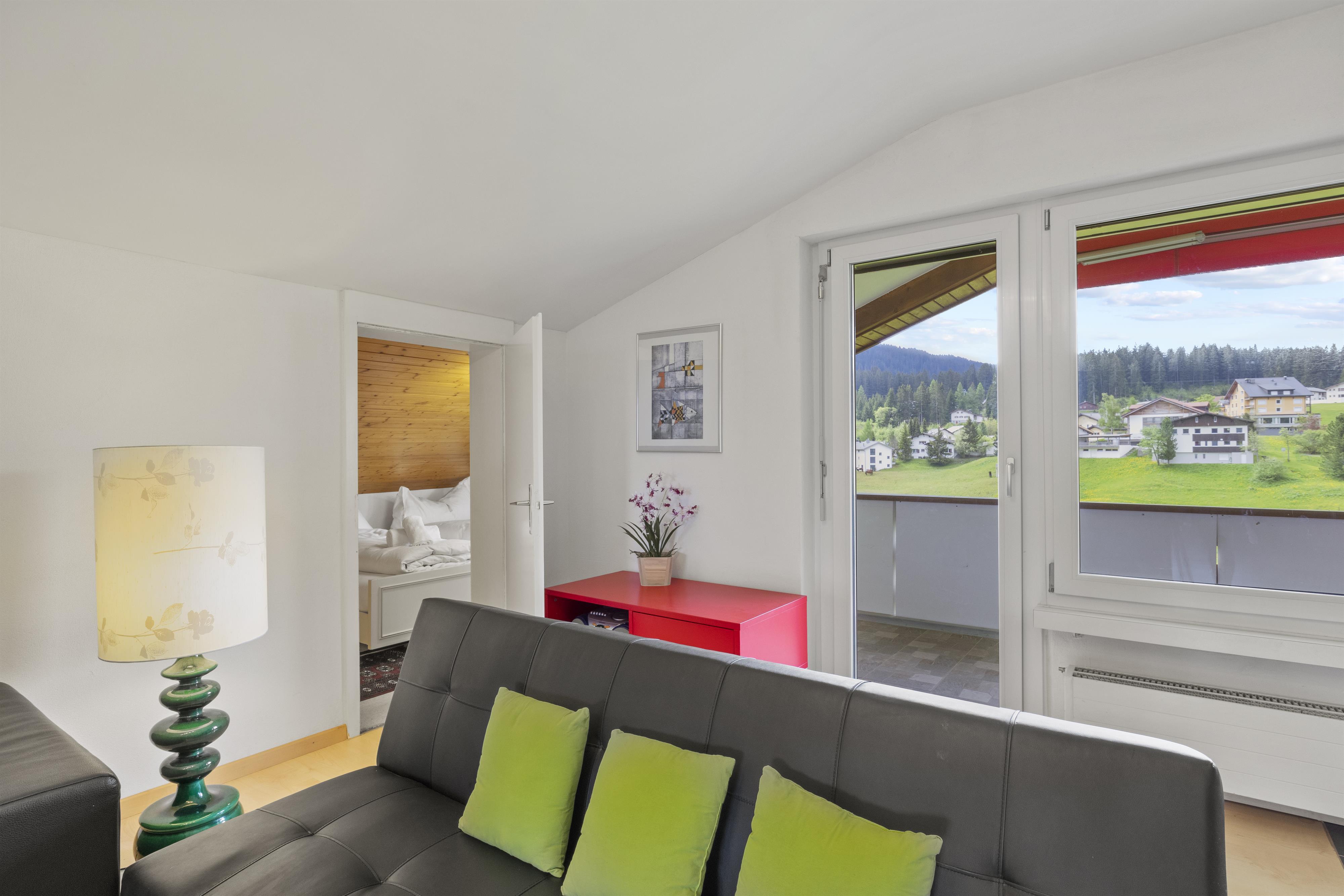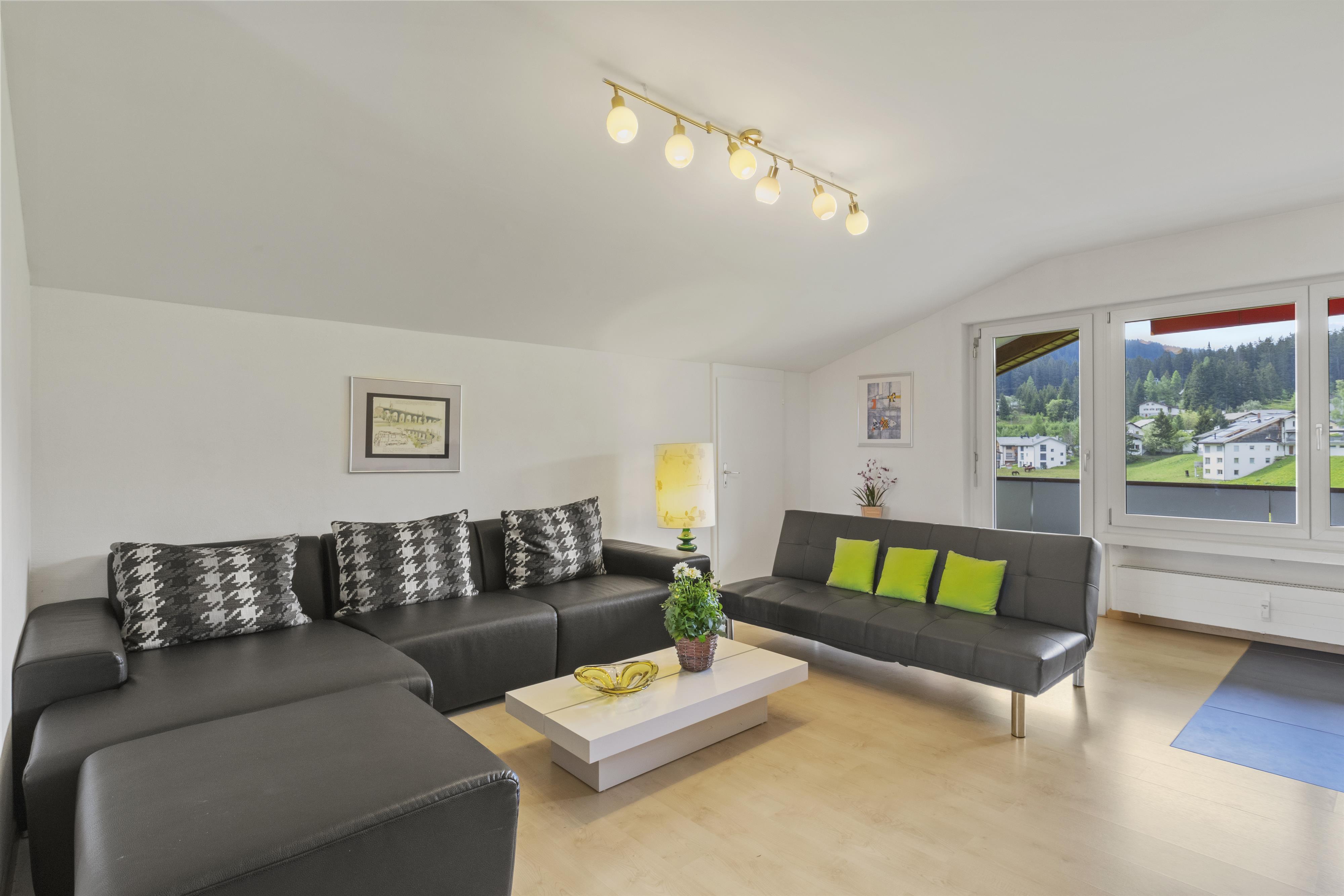 Schöne, grosszügige 3.5 - Zimmer-Dachwohnung mitten in Parpan. Die Wohnung verfügt über einen sehr grosszügigen Wohnbereich sowie über ein Drei-Bettzimmer und ein Zwei-Bettzimmer, die beide direkten Zugang zum gedeckten Süd-Balkon haben.