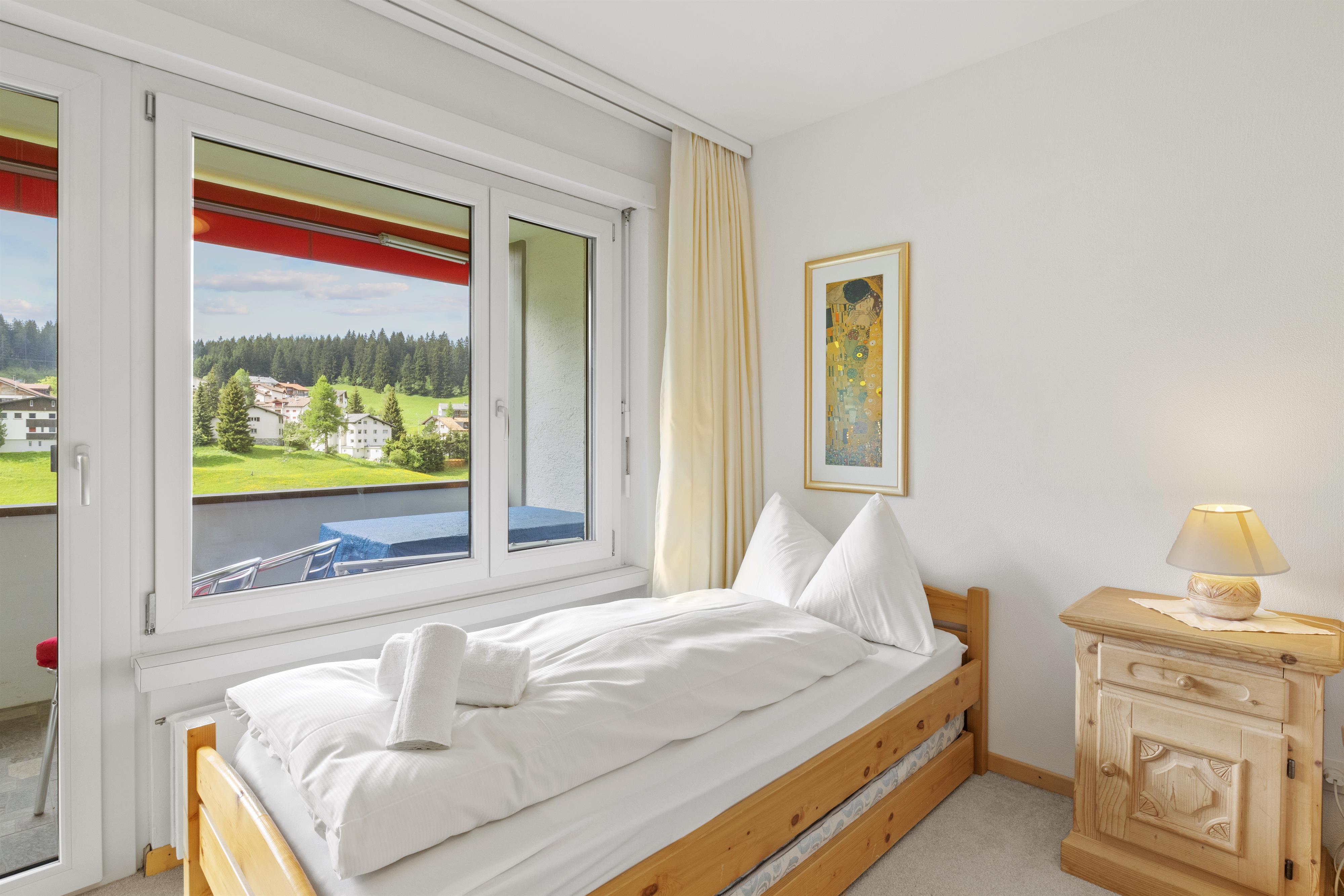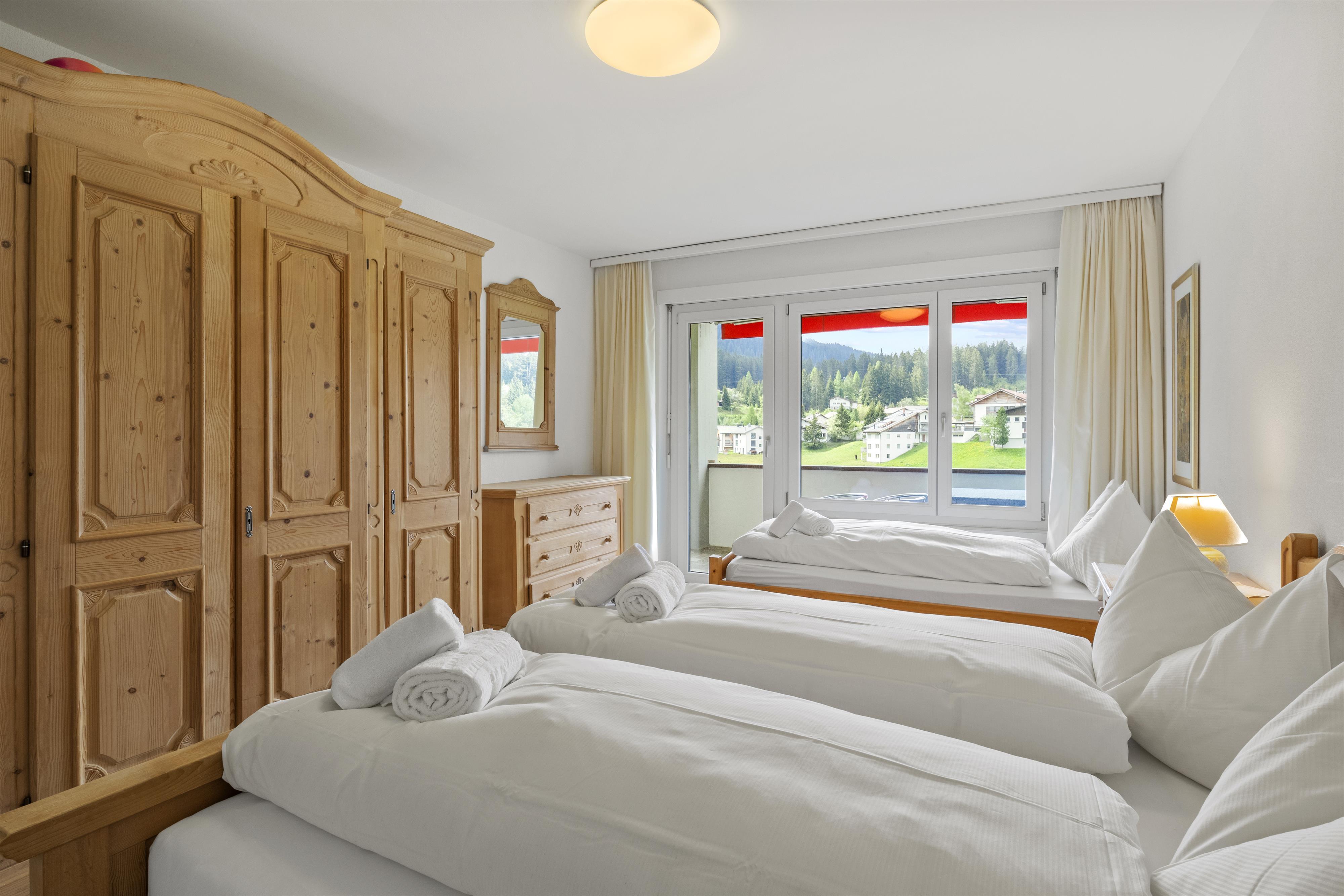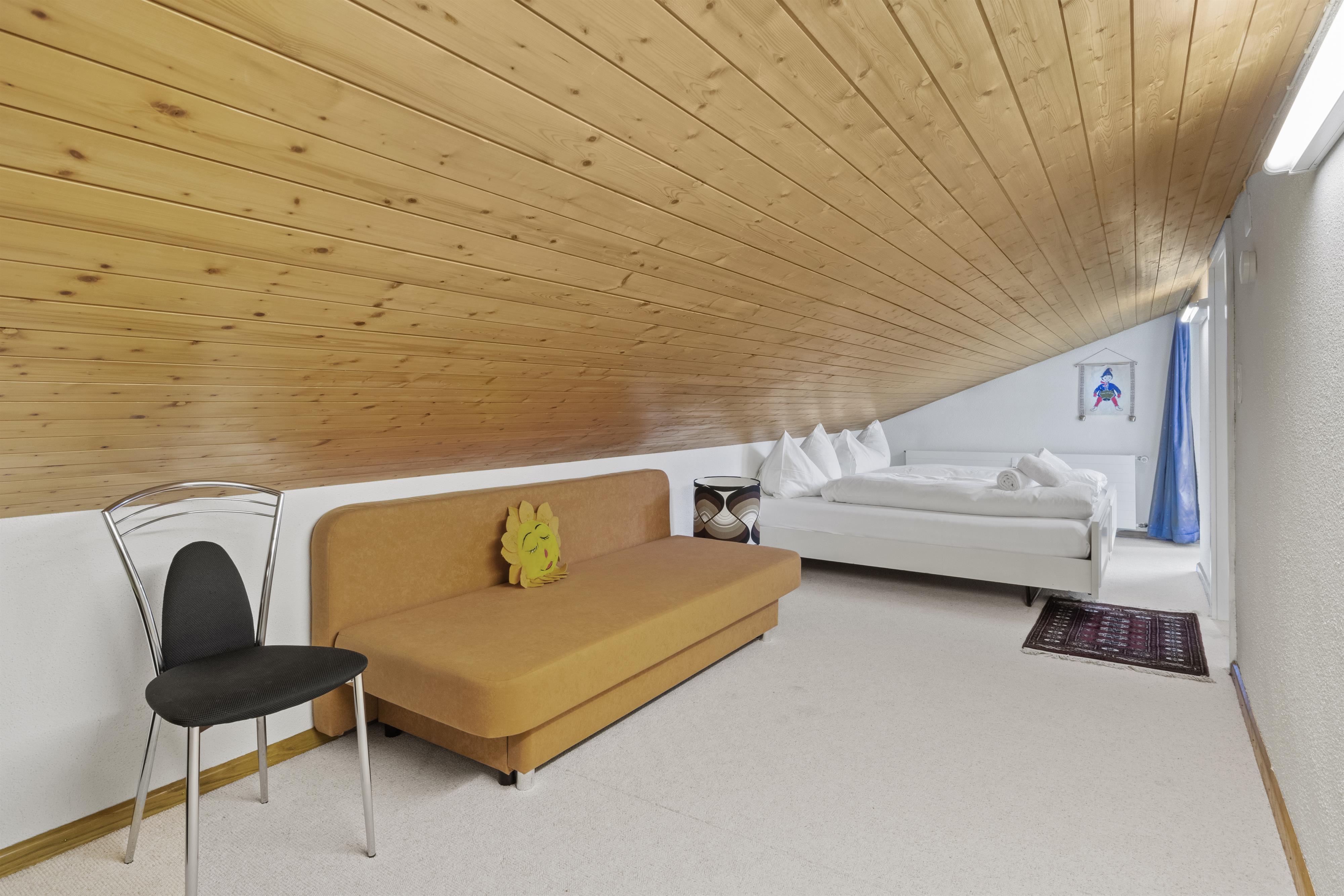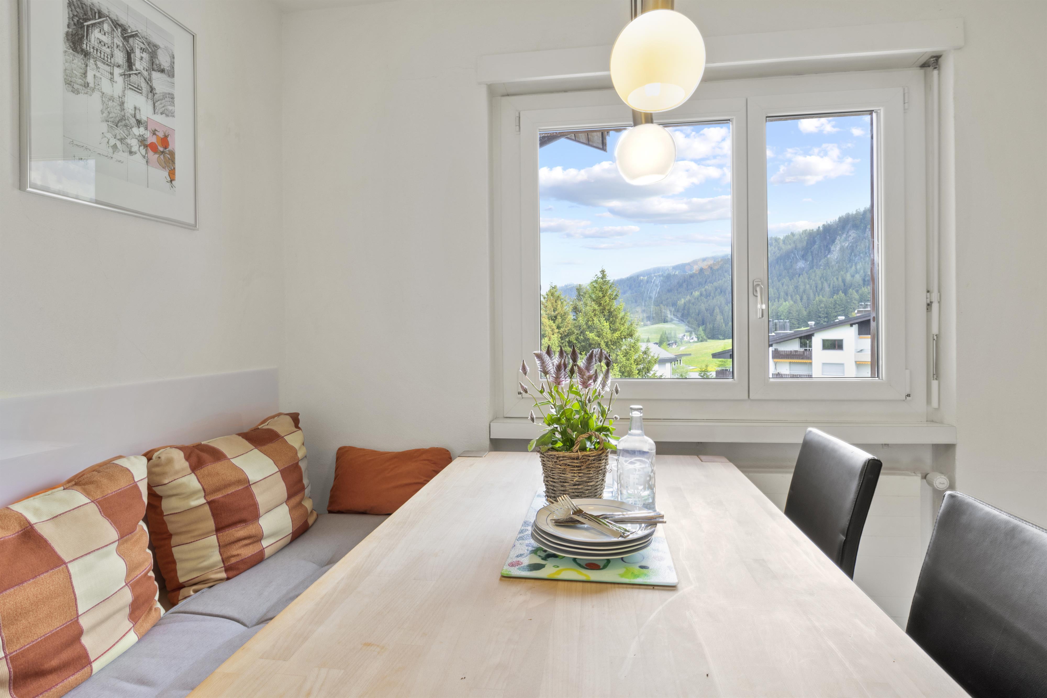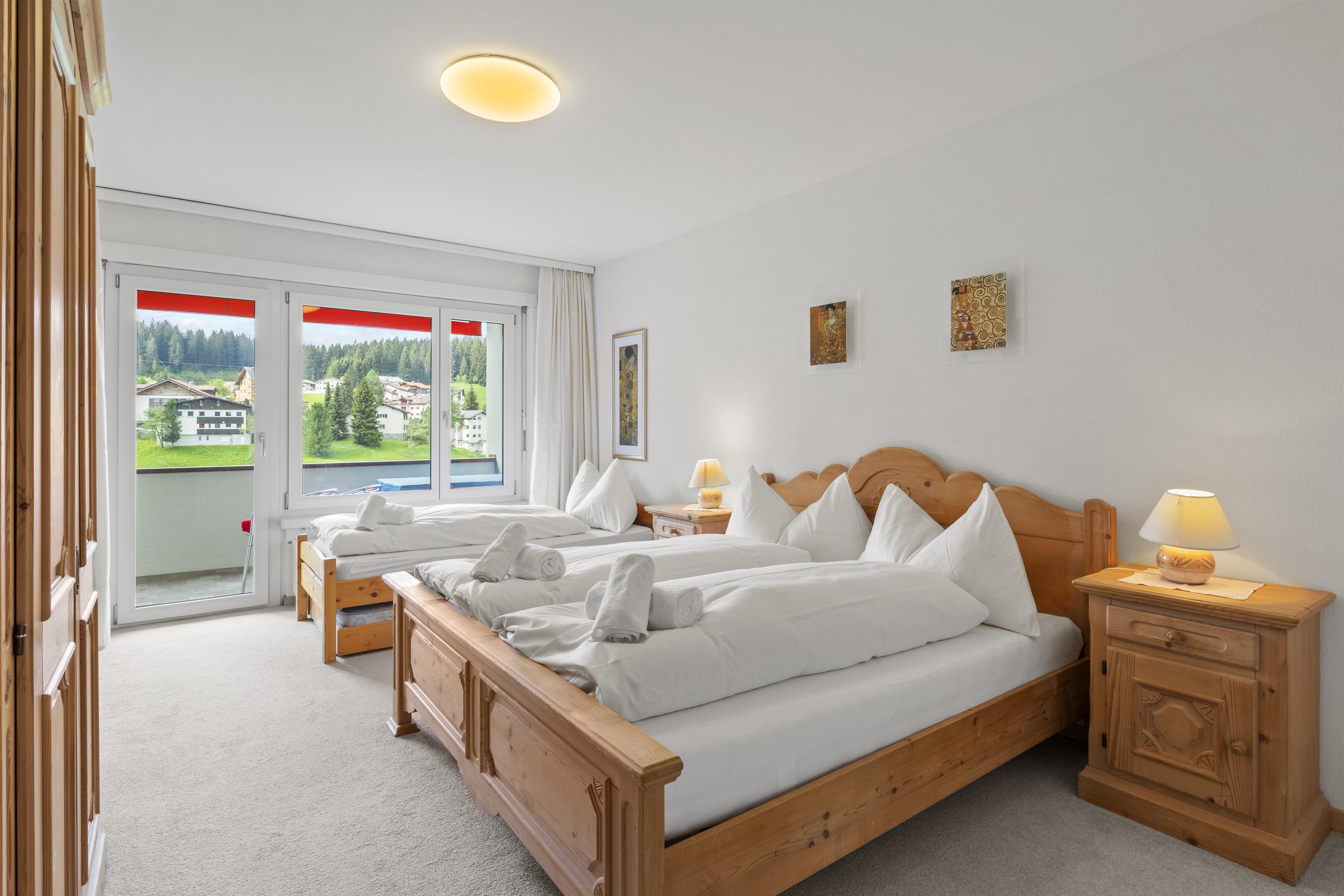 Schöne, grosszügige 3.5 - Zimmer-Dachwohnung mitten in Parpan. Die Wohnung verfügt über einen sehr grosszügigen Wohnbereich sowie über ein Drei-Bettzimmer und ein Zwei-Bettzimmer, die beide direkten Zugang zum gedeckten Süd-Balkon haben.