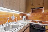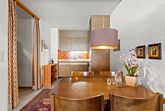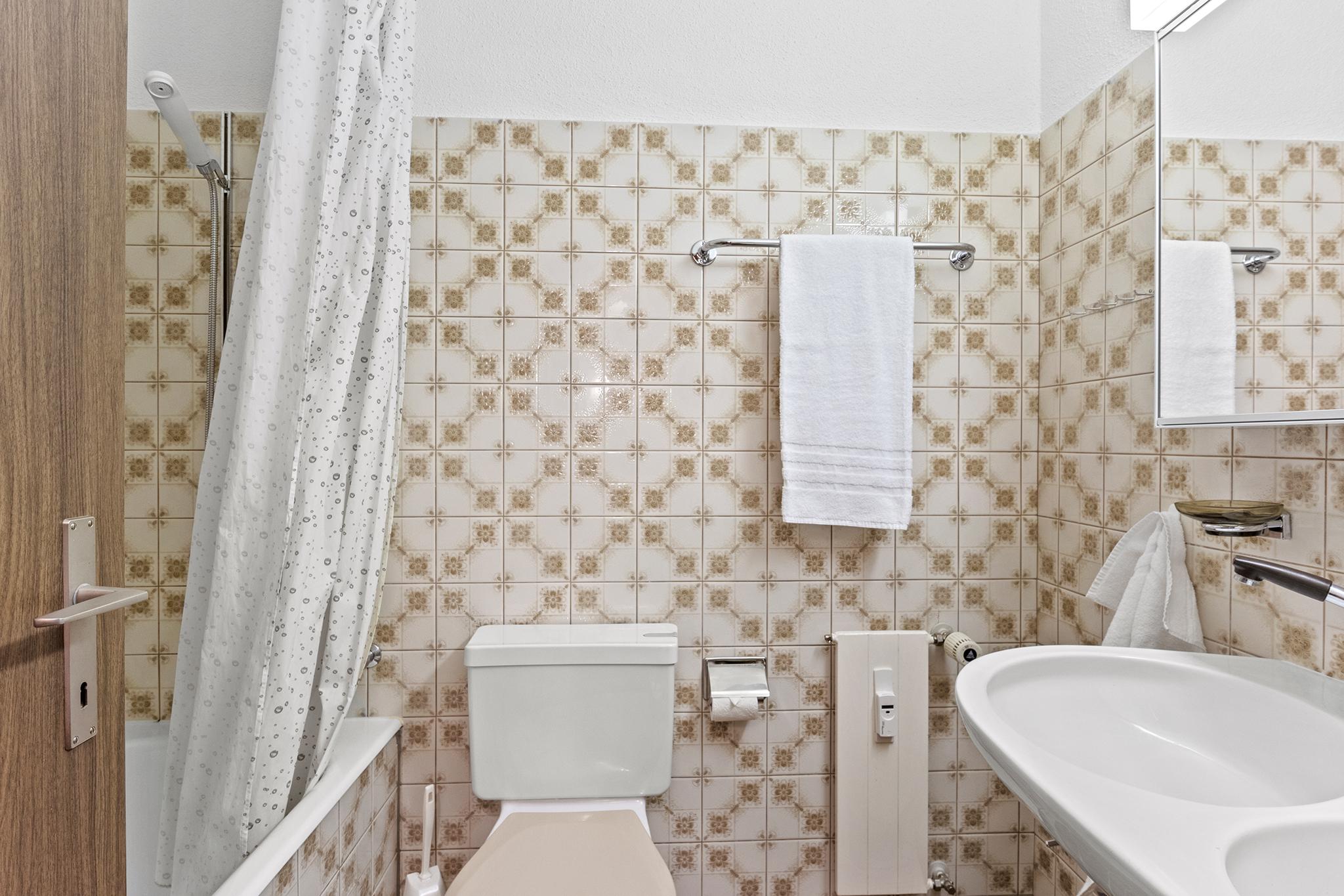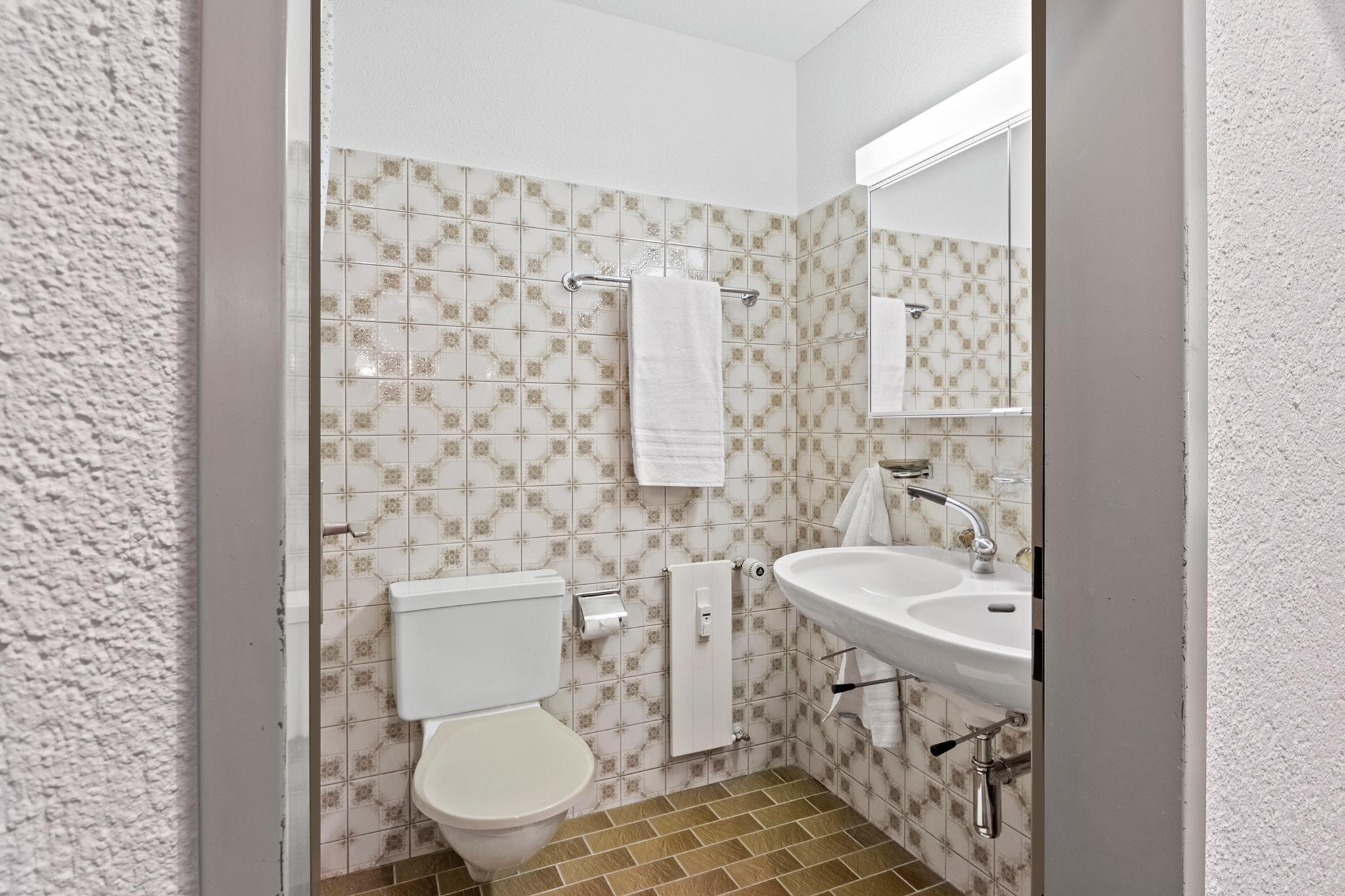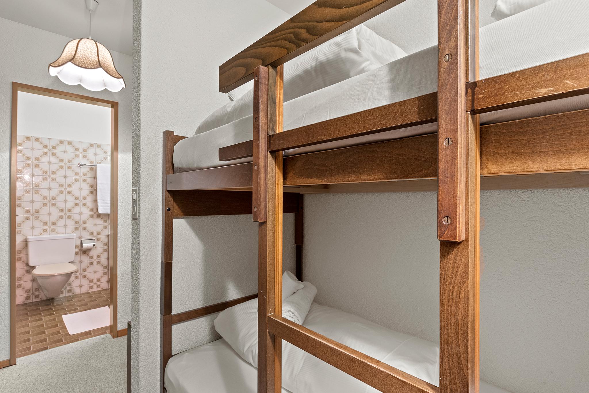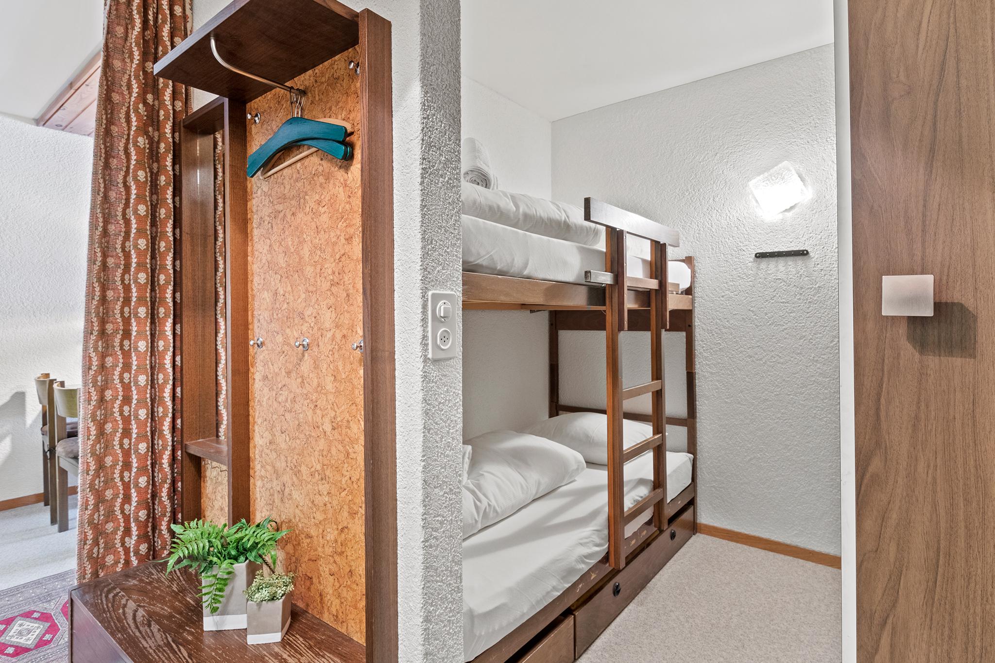 Triangel Haus C / 2. Obergeschoss / Lift / 1 Stockbett in Nische neben Eingang / 1 Schrankbett für zwei Personen im Wohnbereich / 1 Badezimmer mit WC und Badewanne