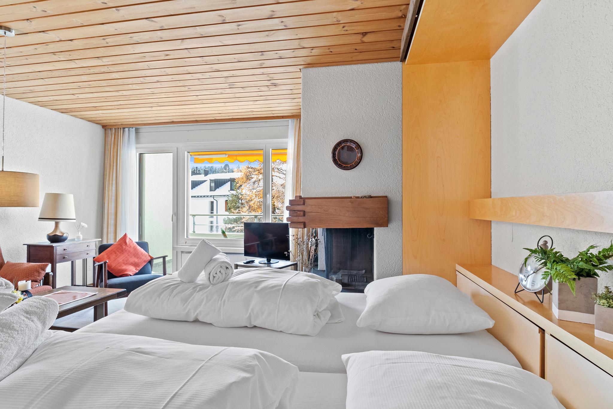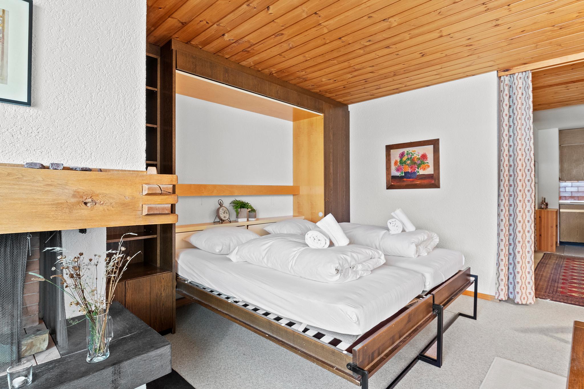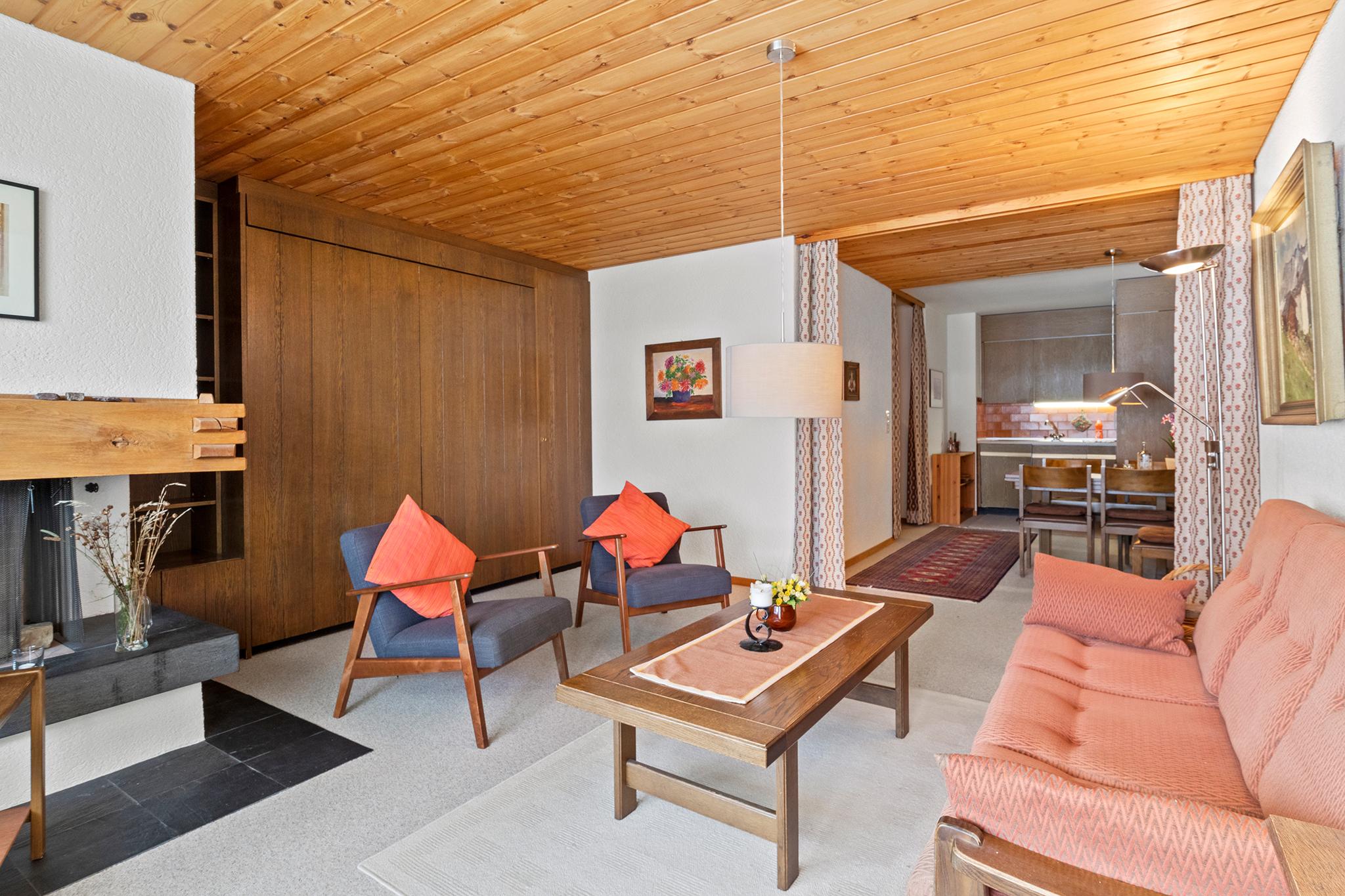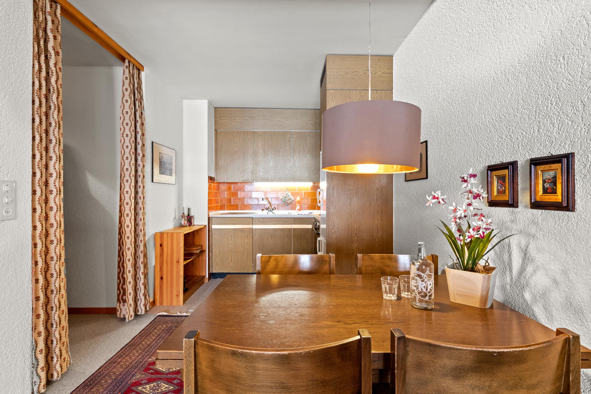 Kleine, gemütliche 1.5 - Zimmerwohnung in mitten von Parpan. Die Ferienwohnung verfügt über ein Stockbett in einer Nische beim Eingangsbereich sowie ein Schrankbett im Wohnbereich für zwei Personen.
