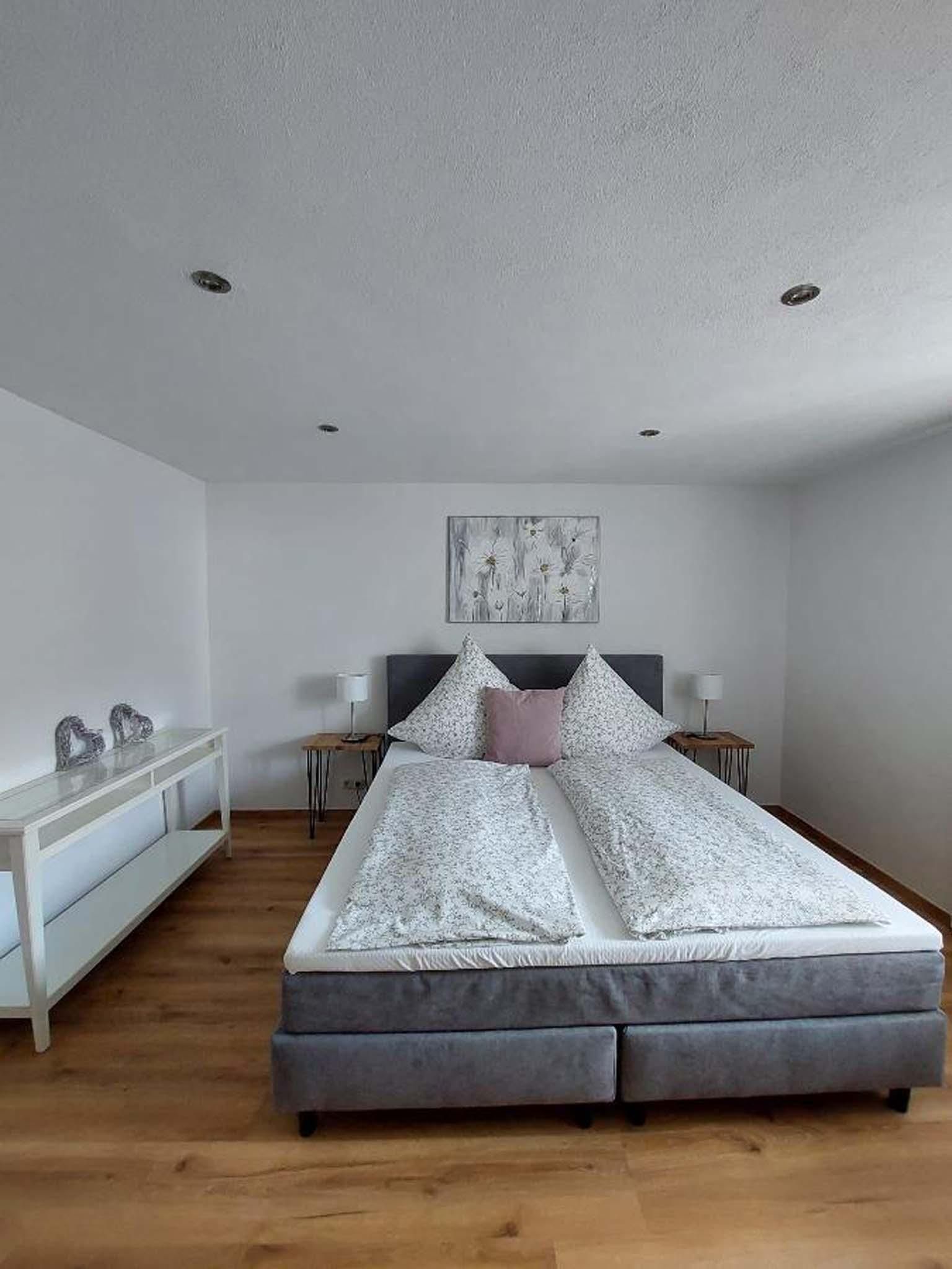 Die Ferienwohnung verfügt über 3 separate moderne Schlafzimmer: 1 SZ mit Boxspringbett, 1 SZ mit Doppelbett, 1 SZ Seniorenbett mit erhöhter Einstiegshöhe.