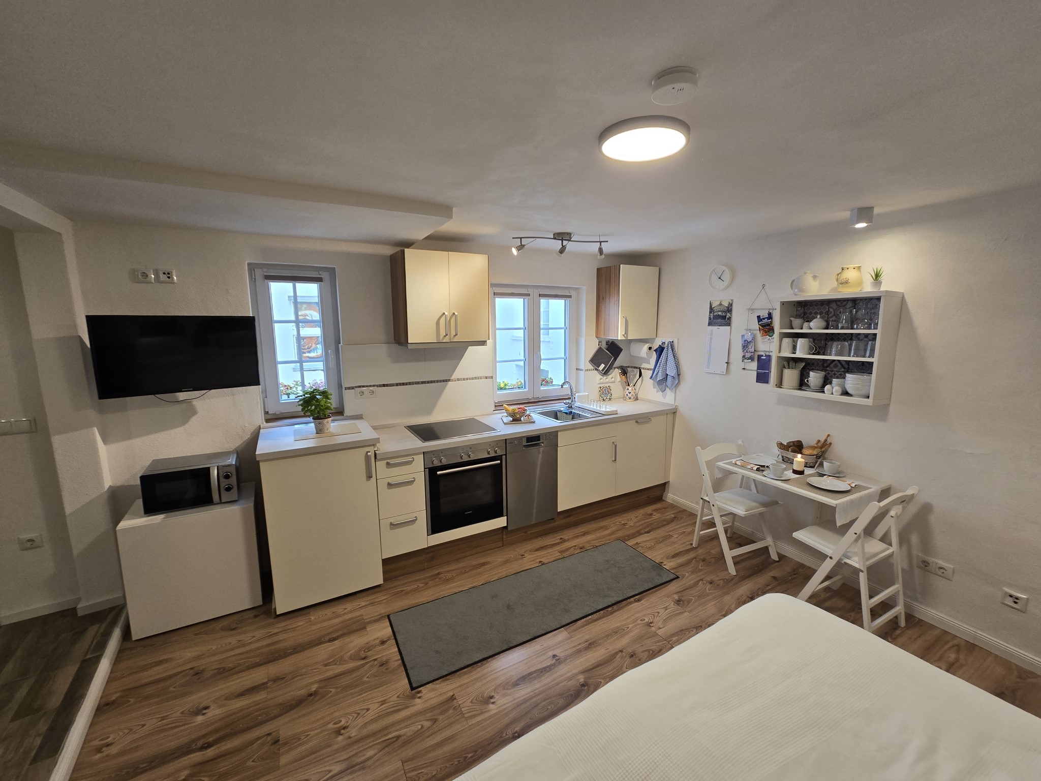 Willkommen in unserer liebevoll eingerichteten 1-Zimmer Ferienwohnung in einem historischen Gebäude in der Altstadt von Bad Reichenhall! Diese Wohnung wurde im Jahr 2024 komplett renoviert und bietet mit ihrer zentralen Lage den perfekten Ausgangspunkt für alle Unternehmungen. Der gemütliche Wohn-Schlafraum mit zwei Fenstern zum ruhigen Innenhof garantiert Entspannung und Erholung und eine erholsame Nachtruhe für Sie und Ihre Begleitung auf einem großen Doppelbett. Die voll ausgestattete Küchenzeile mit Geschirrspüler, Mikrowelle, Kaffeemaschine, Wasserkocher und Toaster ermöglicht Ihnen die Zubereitung Ihrer Lieblingsgerichte. Zur Unterhaltung stehen Ihnen ein Flachbild-Digital-TV und kostenloses WLAN zur Verfügung. Das moderne Badezimmer ist mit einer Dusche, einem Fön und einem Kosmetikspiegel ausgestattet. Willkommen in Ihrem Zuhause fernab von zuhause!