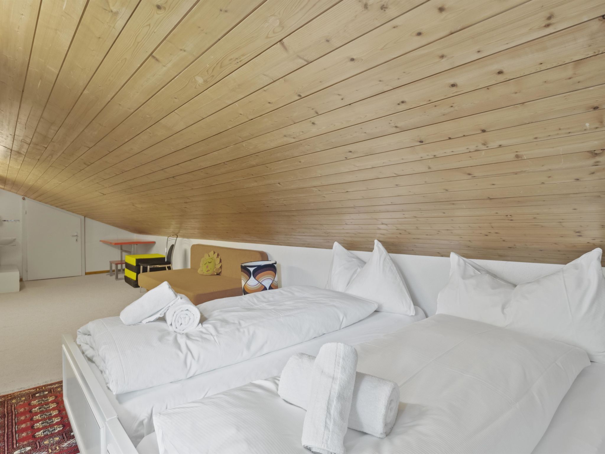 70 m2. Weitere Angaben des Anbieters: Schöne, grosszügige 3.5 - Zimmer-Dachwohnung mitten in Parpan. Die Wohnung verfügt über einen sehr grosszügigen Wohnbereich sowie über ein Drei-Bettzimmer und ein Zwei-Bettzimmer, die beide direkten Zugang zum gedeckten Süd-Balkon haben. Willkommen in der Ferienwohung Rezia in unmittelbarer Nähe des Sessellifts Heimberg! Diese erstklassige Lage bietet Ihnen direkten Anschluss an die Ostseite des Skigebiets Lenzerheide, was Ihnen ein komfortables Ski-in und Ski-out ermöglicht. Von hier aus haben Sie auch Zugang zur spektakulären Verbindungsbahn Lenzerheide-Arosa, die Sie ins Skigebiet von Arosa bringt. Nach nur wenigen Gehminuten erreichen Sie zudem die Talstation Proschieri, die Sie mit der Westseite des Skigebiets Lenzerheide verbindet. Im Winter profitieren Sie von einem direkten Anschluss an die Langlaufloipe, die sich nur wenige Meter von der Wohnung entfernt befindet. Das nahegelegene Kinderland Heimberg bietet ideale Bedingungen, damit Ihre Kinder bei der Skischule Parpan spielerisch das Skifahren erlernen können. Zusätzlich sorgt eine wunderschöne und gemütliche Schlittelbahn in der Umgebung für Spass bei Groß und Klein. Im Sommer erwartet Sie hier ein Paradies für Outdoor-Aktivitäten. Zahlreiche Velotouren und Wanderwege starten direkt vor Ihrer Haustür. In nur 10 Minuten erreichen Sie mit dem Fahrrad den idyllischen Heidsee (mit dem Auto in nur 4 Minuten), wo Sie Stand-up-Paddeln, Baden, Surfen, Segeln, Pedalos, Ruderboote und Kayaks ausprobieren können. Triangel Haus B / 3. Obergeschoss-Dachgeschoss / Lift / kein Wlan / 1 Zimmer mit Doppelbett und einem Einzelbett / 1 Zimmer mit Doppelbett (Dachschräge/Mansarde) / 1 Badezimmer mit WC, Dusche und Badewanne / 1 separates WC Der Sessellift Heimberg, das Kinderland und die Langlaufloipen sind in unmittelbaren Nähe zur Wohnung. - Bettwäschenverrechnung inkludiert Frottee, Handtücher und Küchenwäsche - der Parkplatz ist inkludiert - kostenpflichtige Leistungen: Waschmaschine/Tumbler (Münzgeräte im Gemeinschaftsbereich).