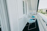 • Möglichkeit zur Beschattung der Fenster und Balkontüren mit Klappläden mit schrägen Belüftungslamellen