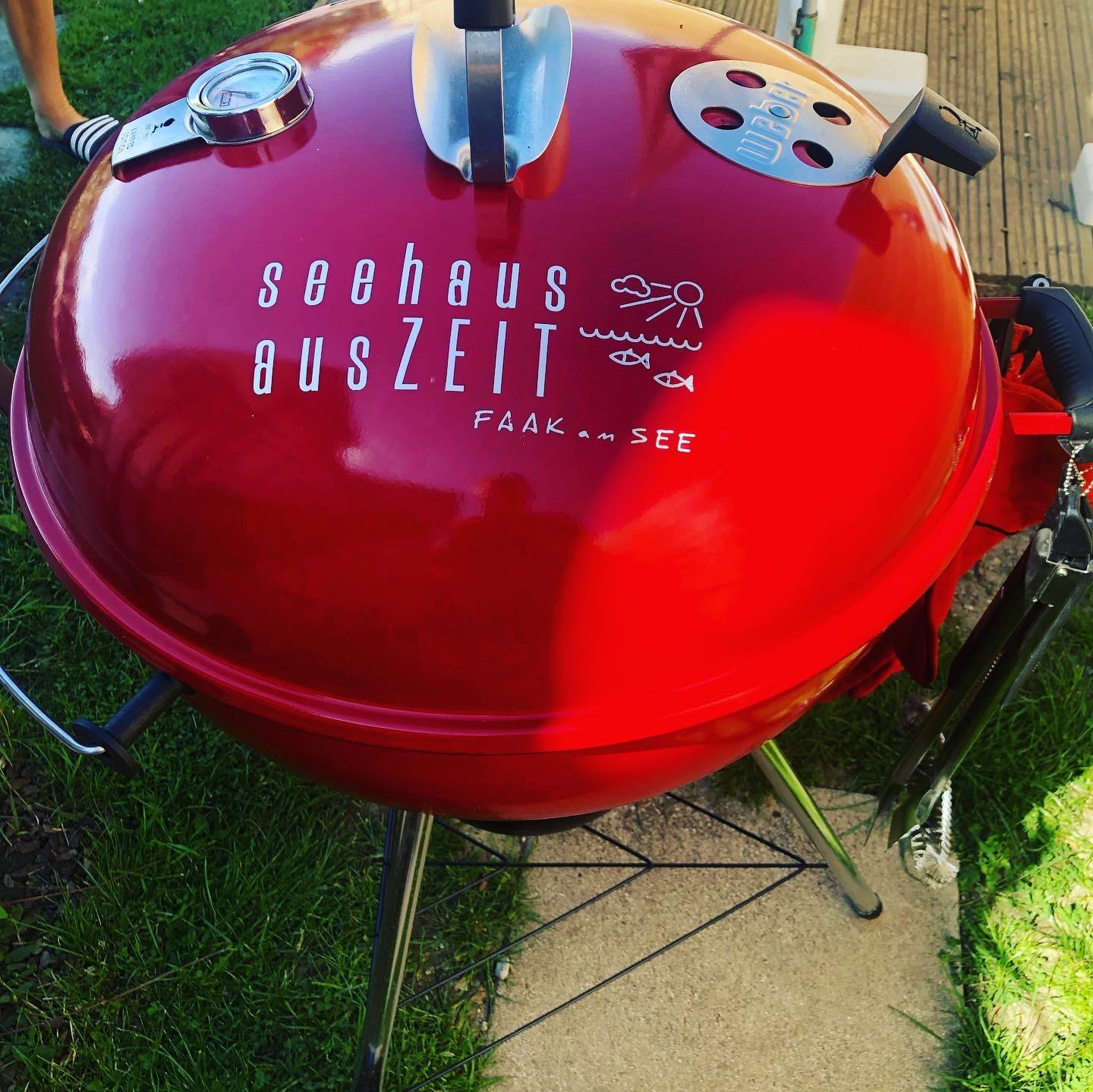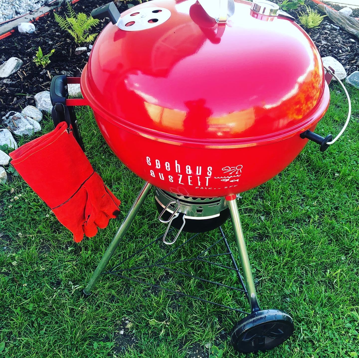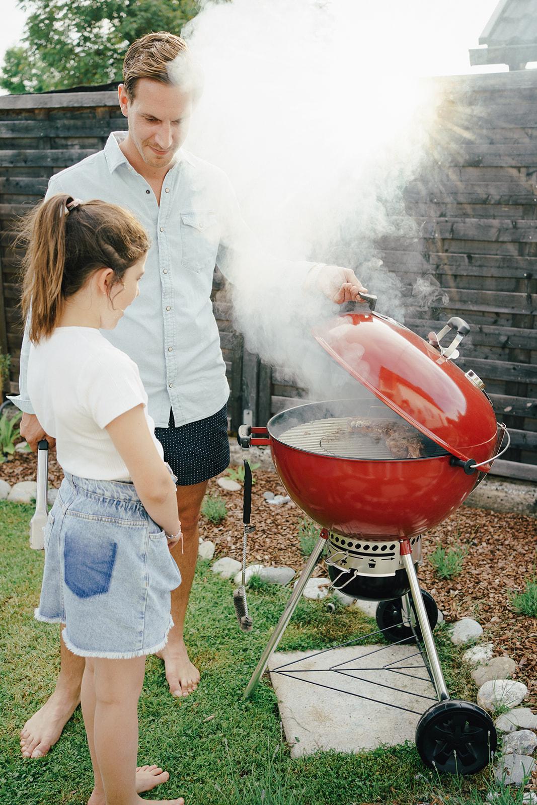 • Weber Holzkohle-Grill im Garten mit Holzkohle