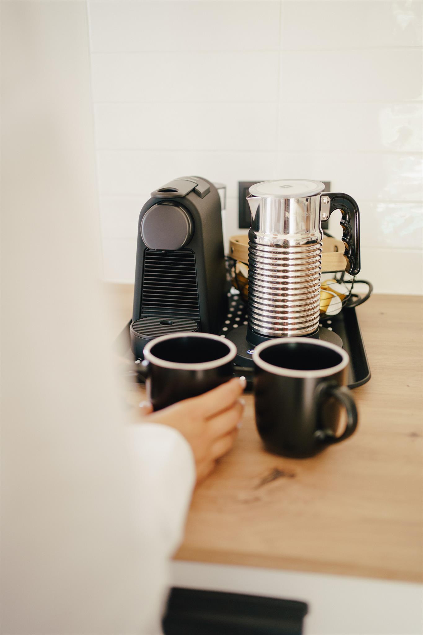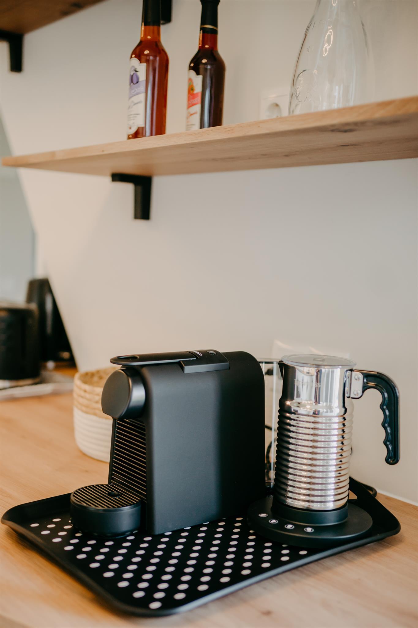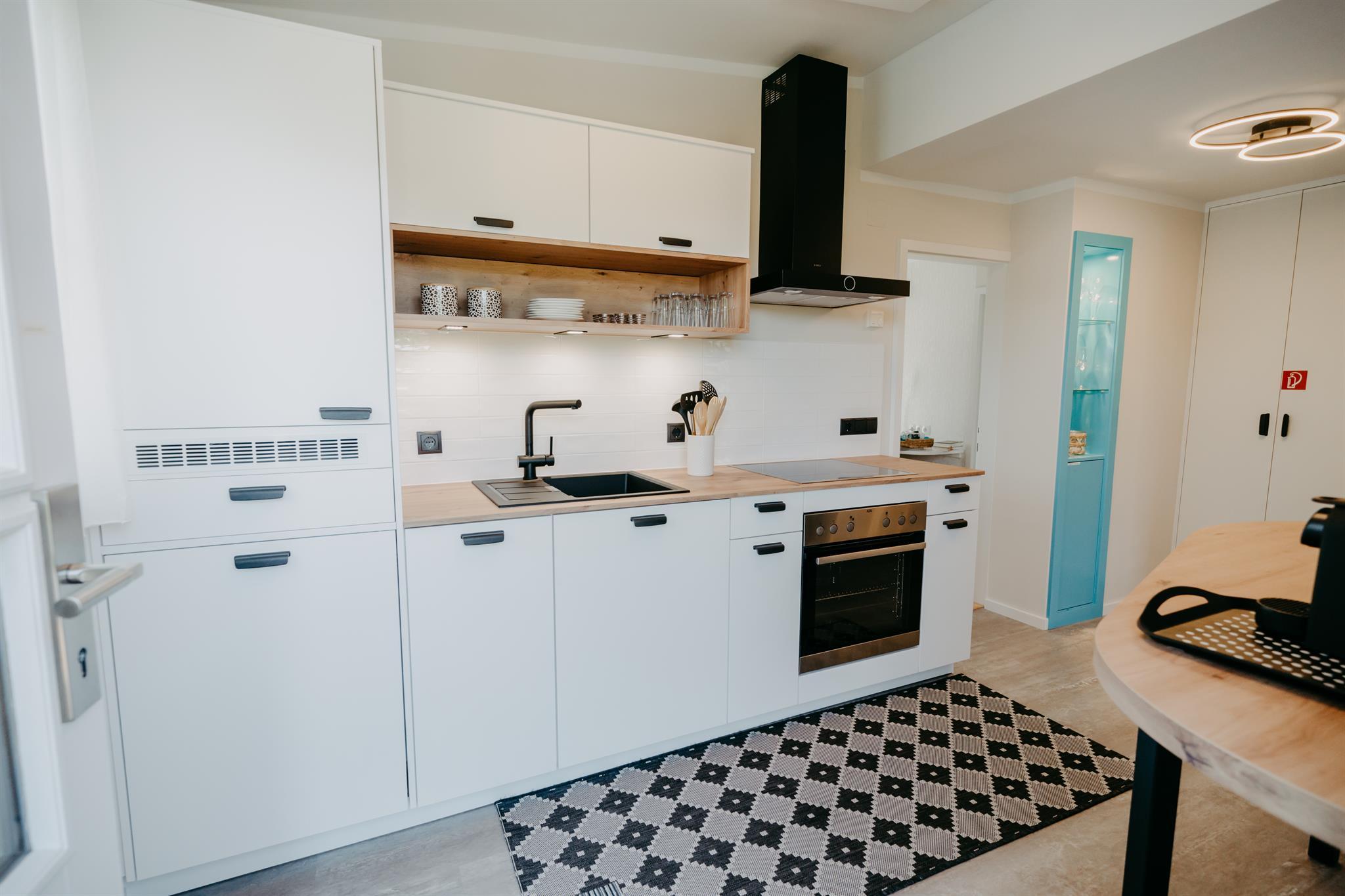 • komplett ausgestattete Wohnküche mit Geschirrspüler, Kühlschrank mit Gefrierfach, besonders gut ausgestattet mit Geschirr und Besteck für Selbstversorger, Nespresso-Kaffeemaschine und -Milchschäumer