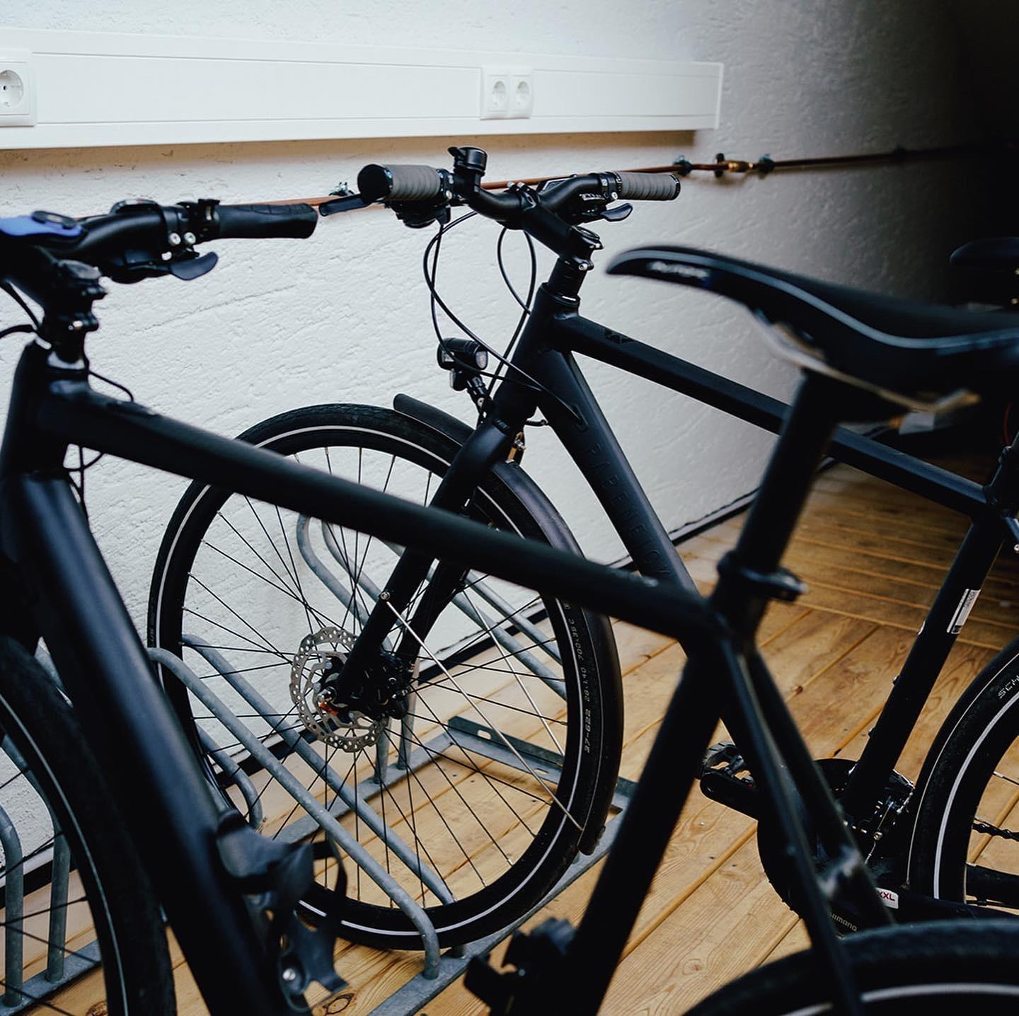 • E-Bike-Garage, für drei E-Bikes, nicht einsehbar, abschließbar, mit Ladestation, Waschmöglichkeit