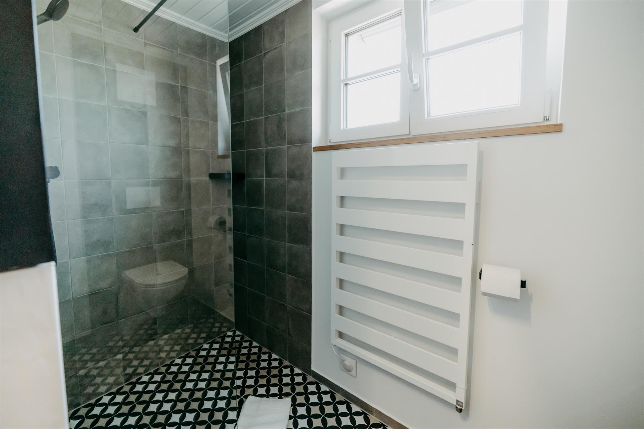 • Dusche, WC mit Fenster , mit Air-WC plus Raumventilator, Fußbodenheizung und Handtuchwärmer
