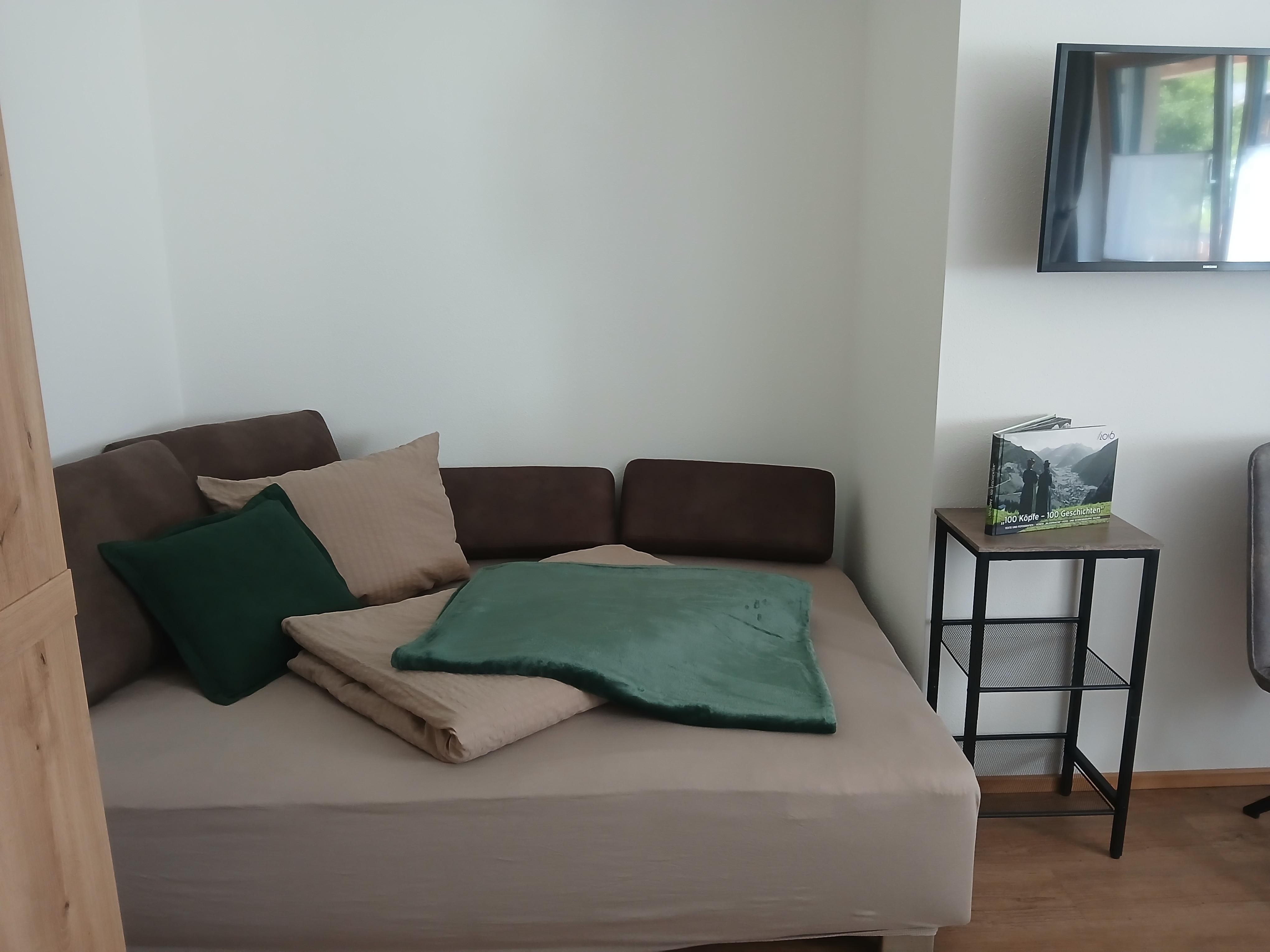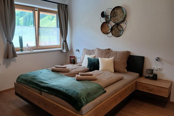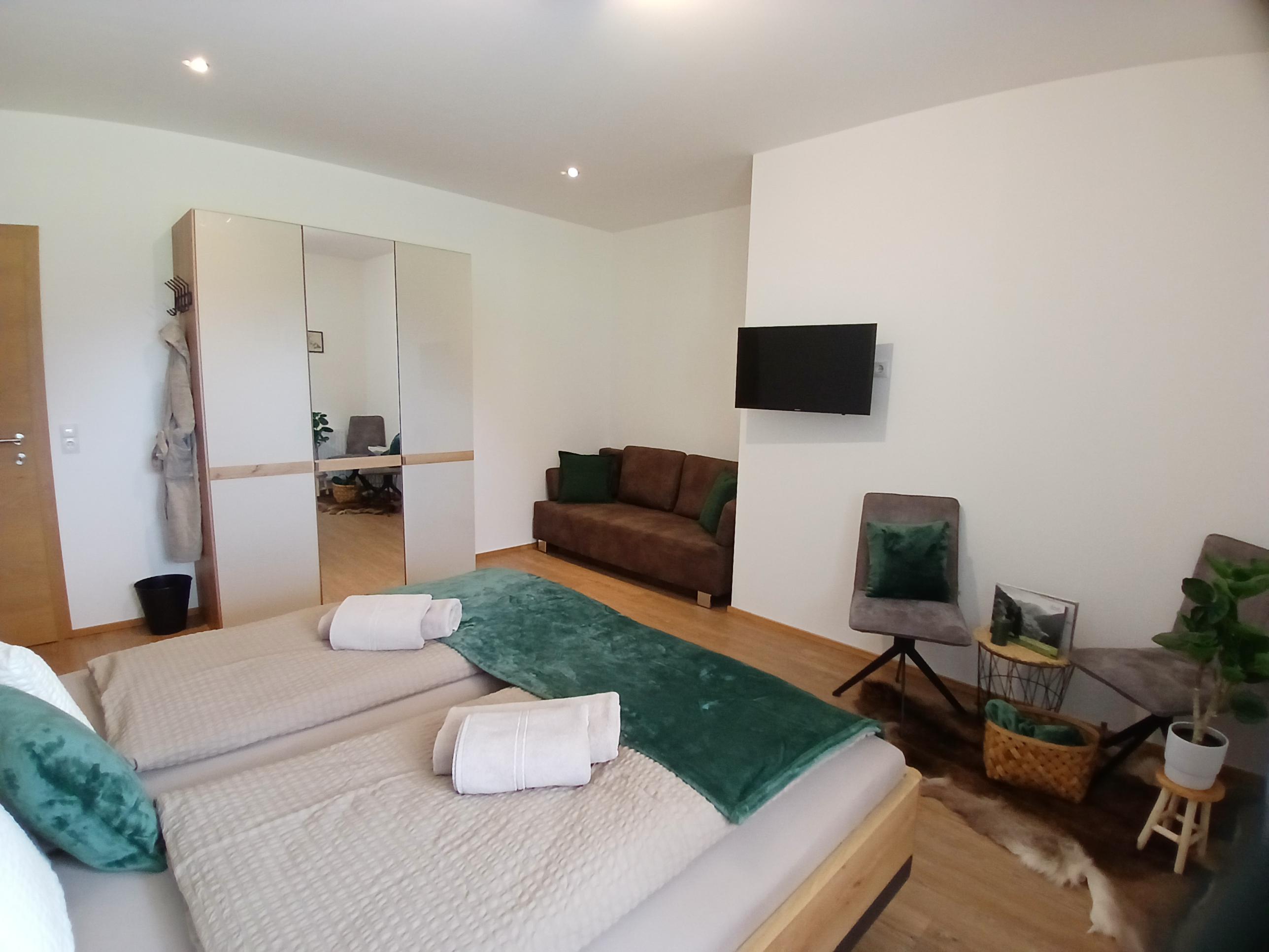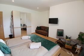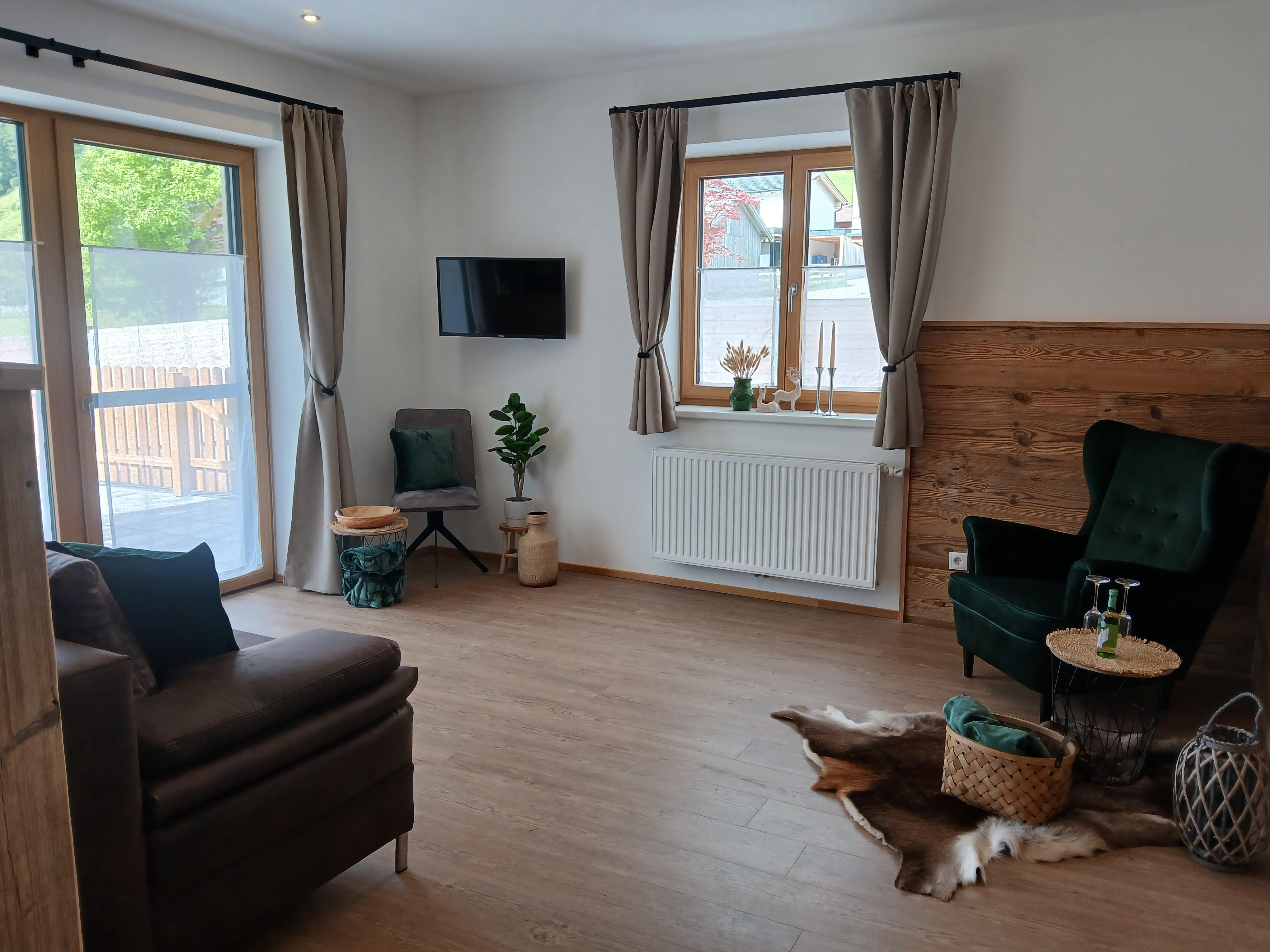 Im Erdgeschoß befindet sich das 90m2 große Appartement mit einer großen Wohnküche incl. abgetrenntem Schlafbereich mit großem Schlafsofa und einem zusätzlichen Tagesbett, 1 Doppelbettzimmer - auf Anfrage kann ein Zusatzbett bereitgestellt werden, Toilette und Bad/Dusche getrennt, separater barrierefreier Eingang, große Terrasse mit abgeschlossenem Gartentor, geräumiger Vorraum; Kellerabteil für Ski/Rad Abstellung. Haustiere mit Rücksprache gestattet.