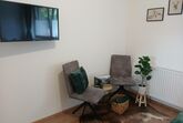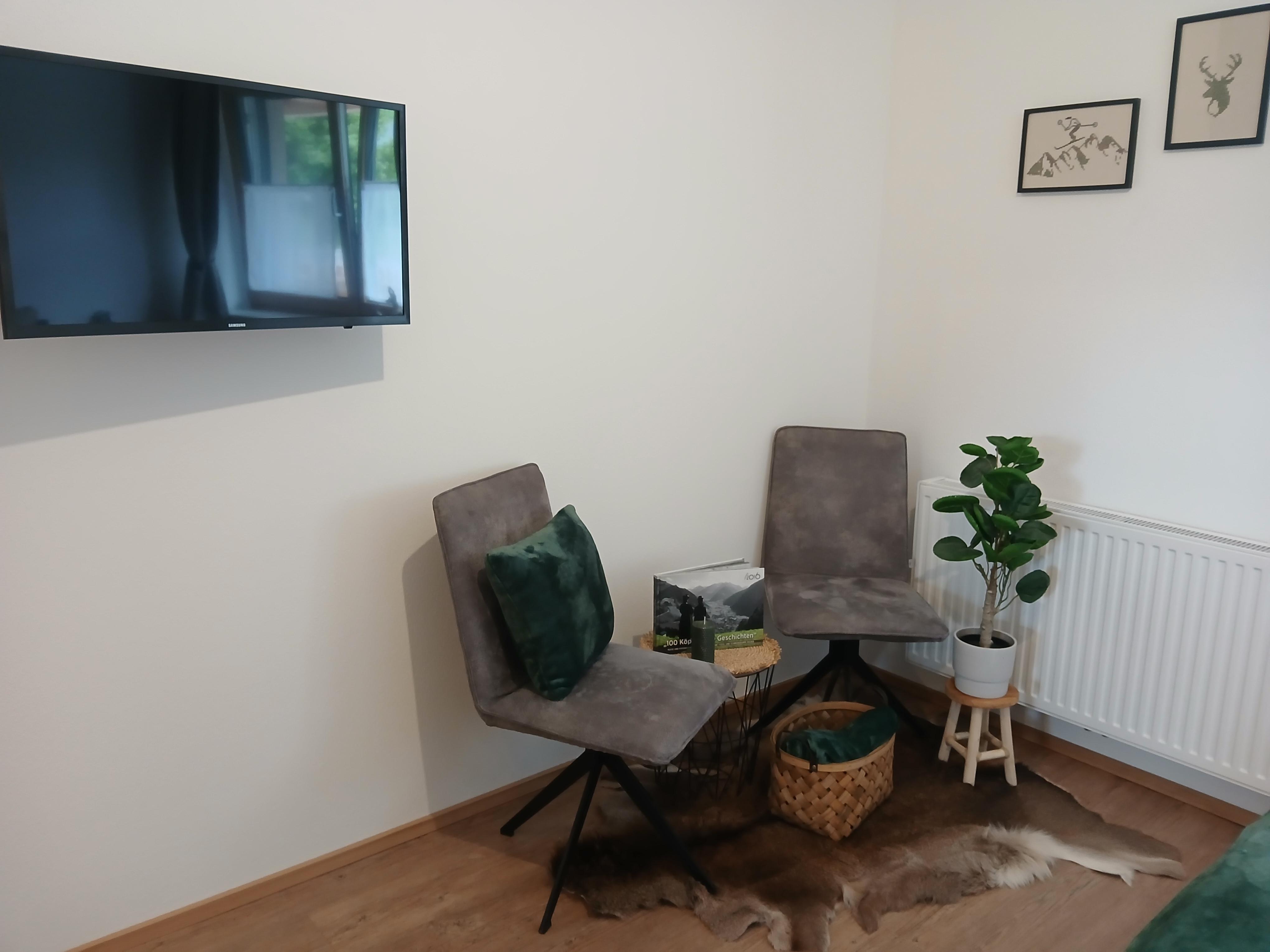 TV, Internet, Föhn, Bettwäsche, Handtücher, komplett eingerichtete Küche mit Kühlschrank, Mikrowelle, Kaffeeautomat, Wasserkocher und Geschirrspüler (auf Wunsch: Kinderbett, Kinderstuhl), separates WC, Badezimmer mit Dusche und Waschmaschine;