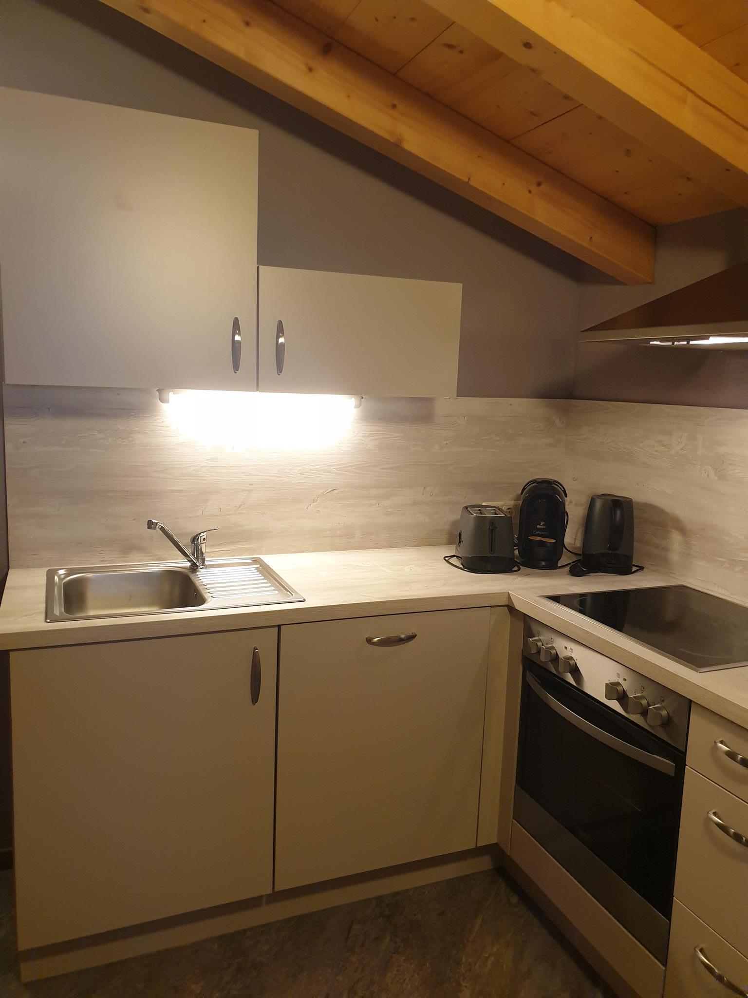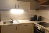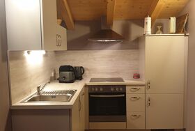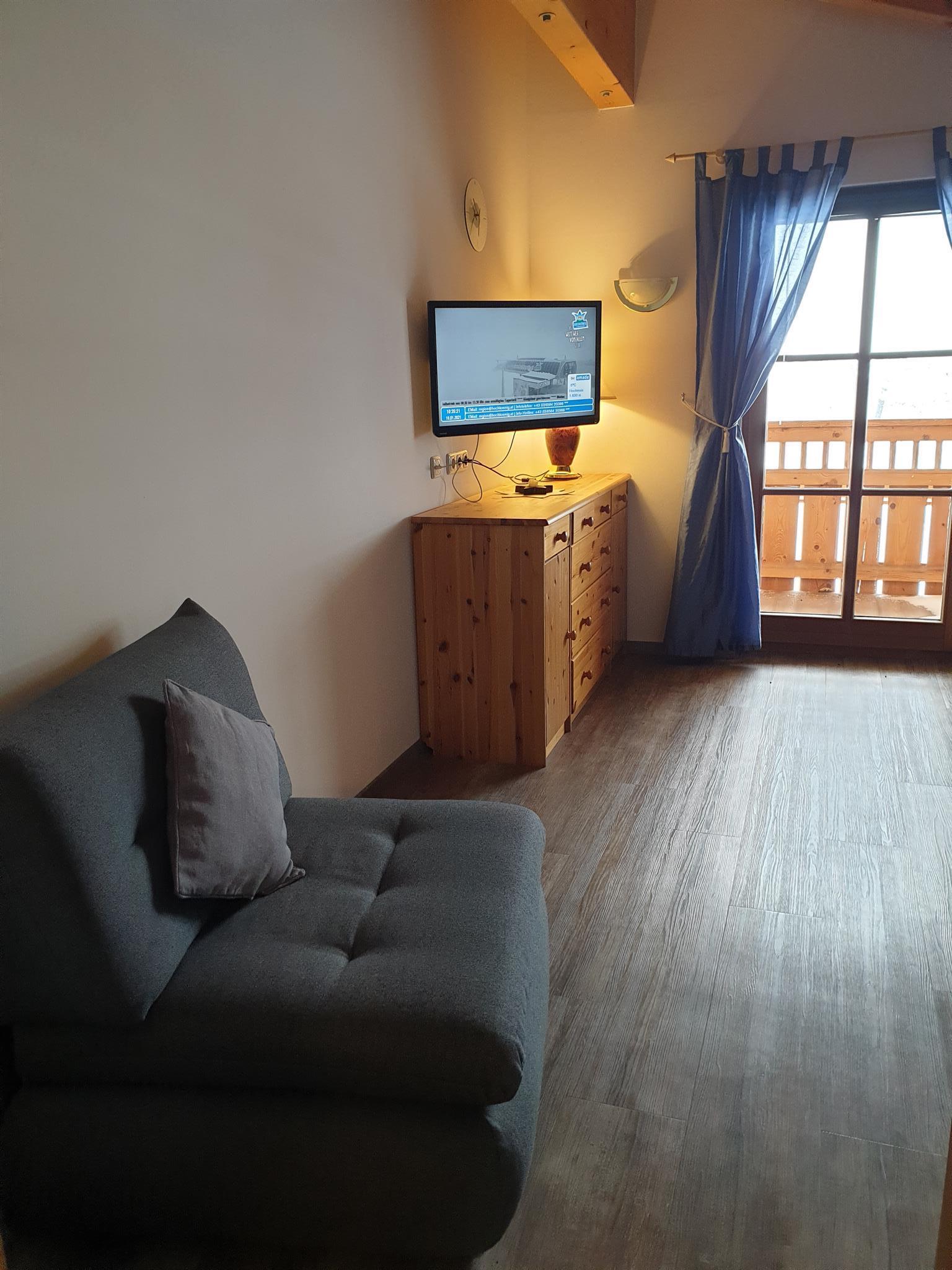 Ferienwohnung mit Dusche/WC, einem Schlafzimmer, Wohn-Schlafraum, Küche, Radio, Telefon, Kabel-TV und Balkon.