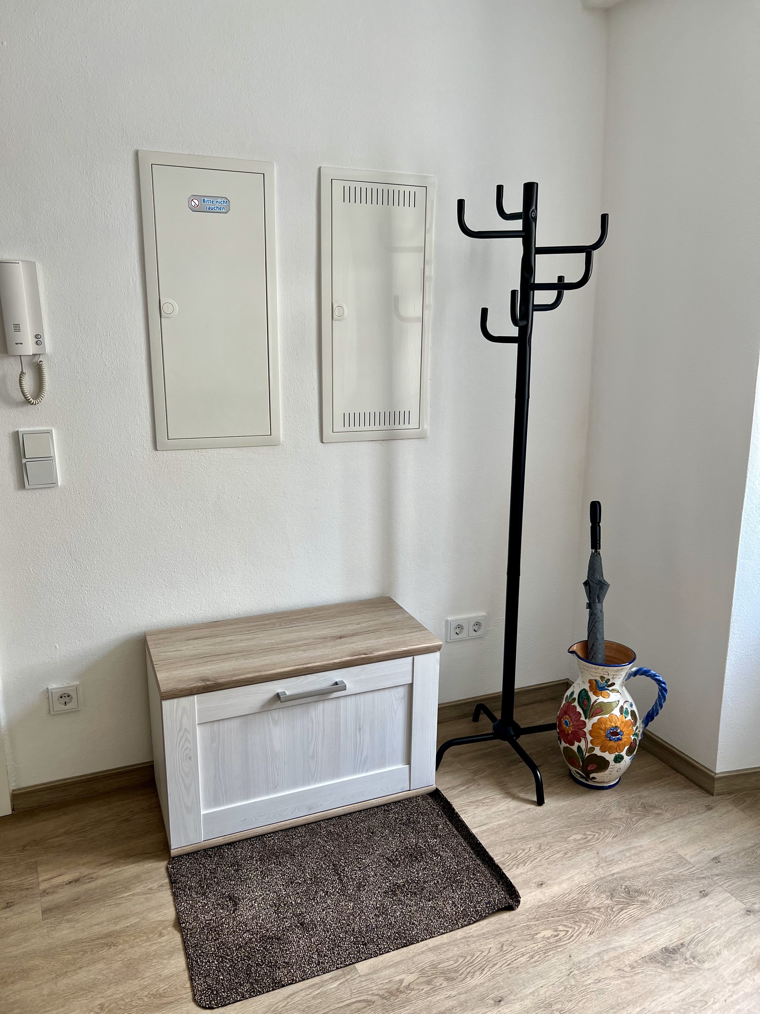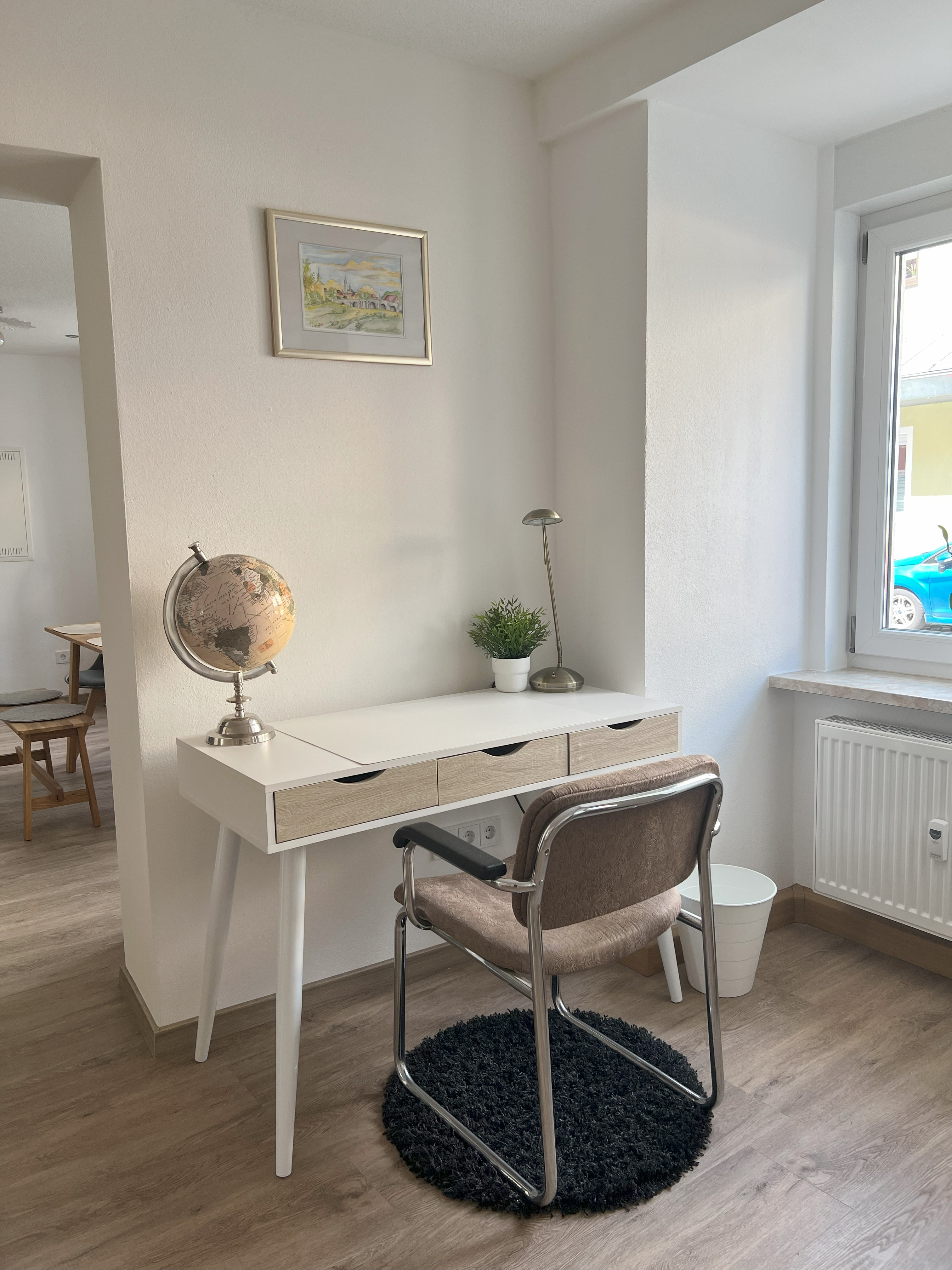 In unmittelbarer Nähe können Autos auf den öffentlichen Parkplätzen geparkt werden. Ebenso steht eine öffentliche Ladestation für E-Autos beim Landratsamt zur Verfügung. Für Ihre eigenen Räder oder Kinderwagen gibt es einen separaten Raum im Haus.
