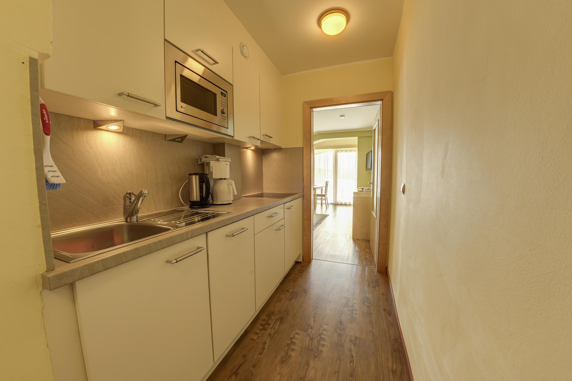 Die Appartements sind wirklich komplett eingerichtet -Geschirr, Bettwäsche, Handtücher, Haustelefon, Kühlschrank, Balkon mit Seeblick, Radio, Liegestühle - es ist alles für Sie da!