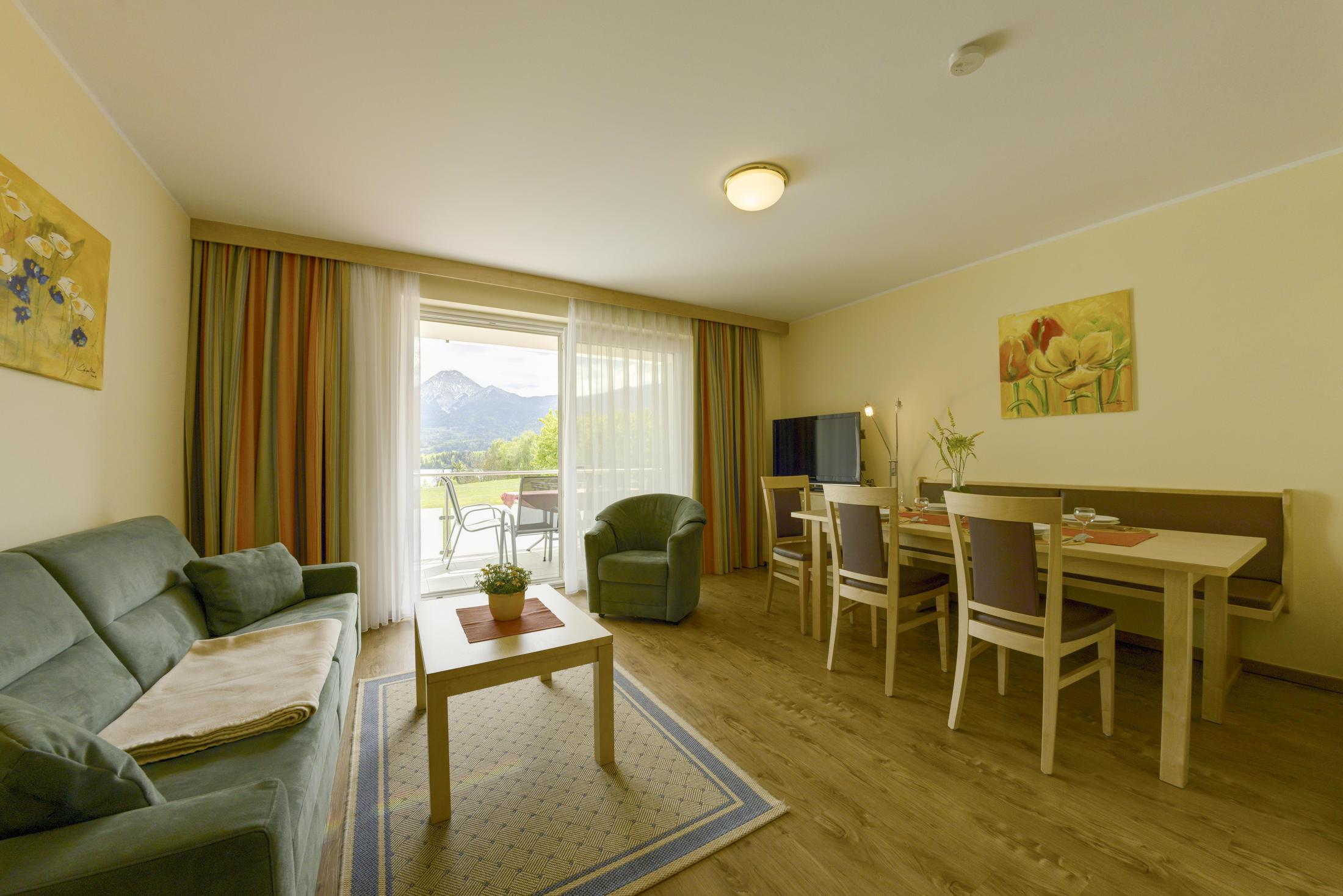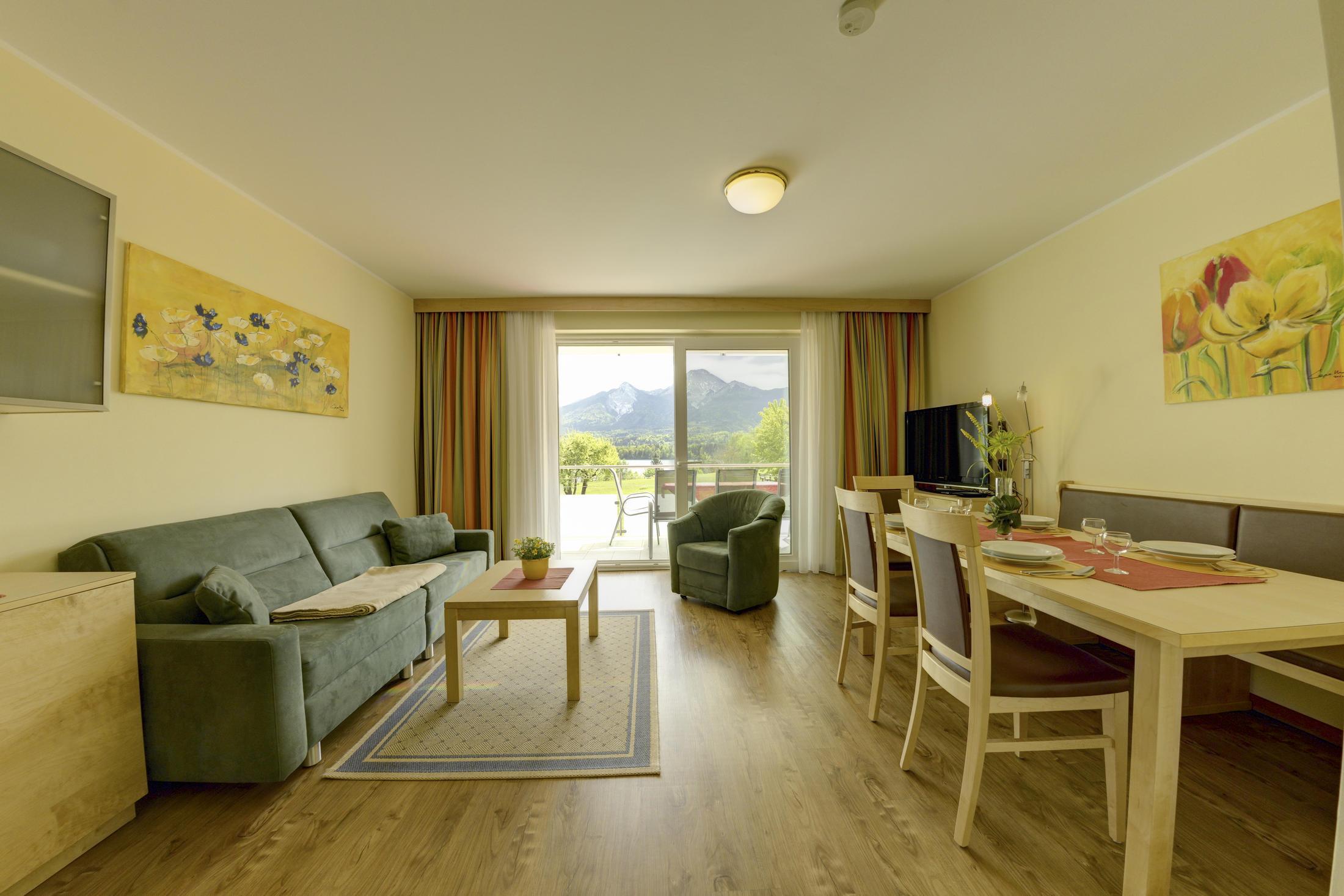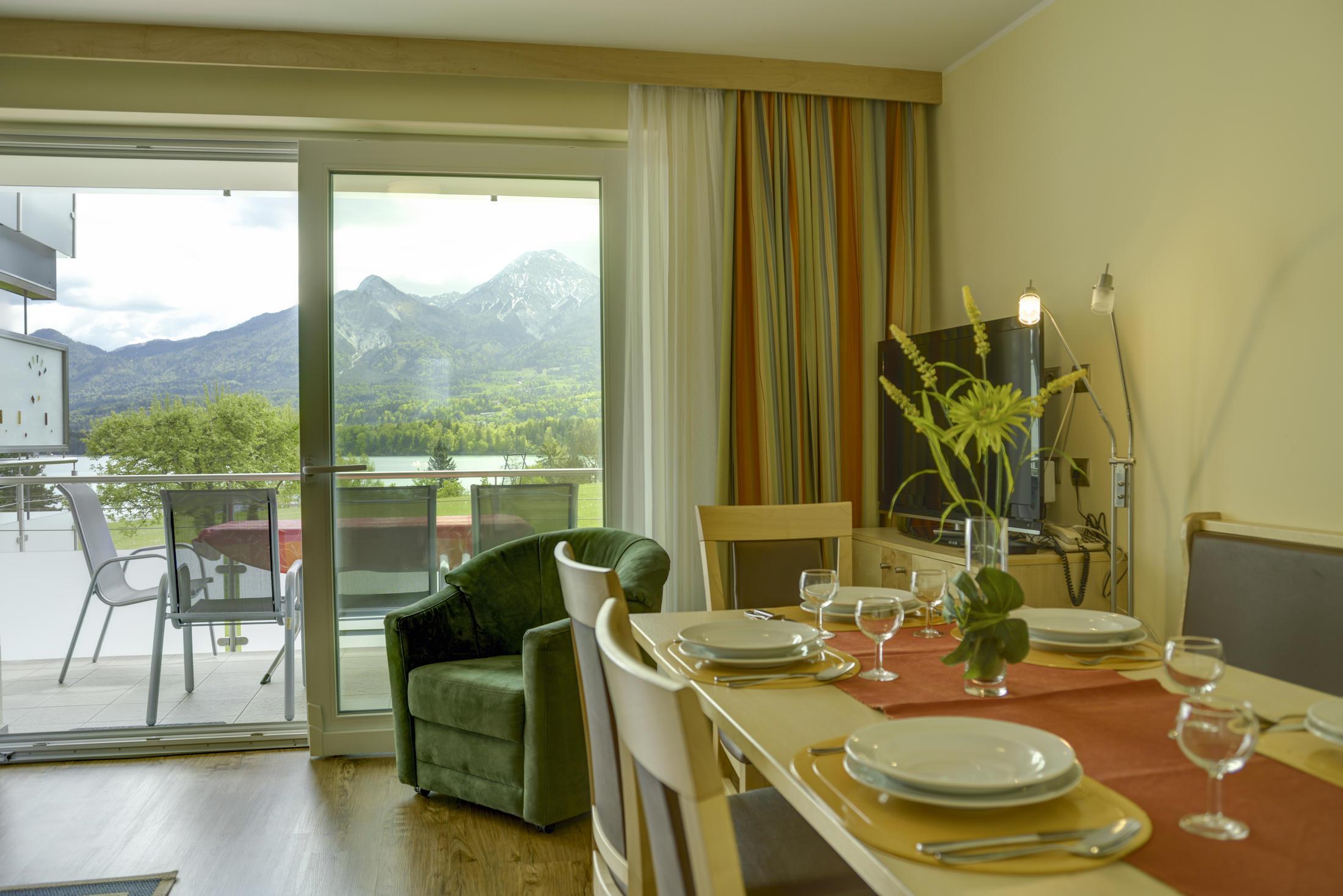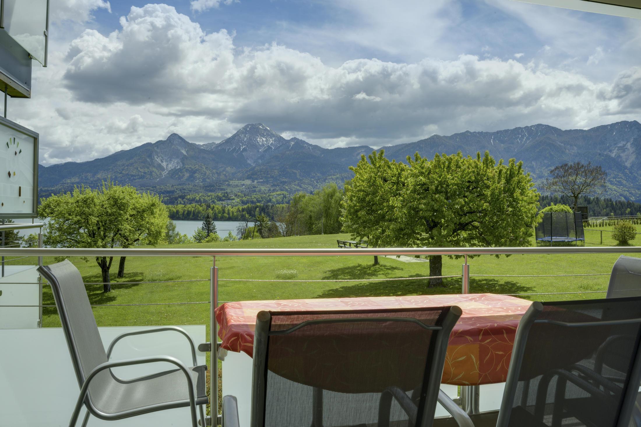Komplett neue Ferienwohnung im Haus Mittagskogel mit Wohnschlafraum + 2 Schlafzimmer, Südbalkon und Seeblick, herrlichen Panoramablick, im 2.Stock, modern eingerichtet mit hellen Holzmöbel und Holzfußböden, große Dusche, WC getrennt, Kochnische mit Geschirrspüler und Mikrowelle, Bett- und Tischwäsche, Handtücher, Haustelefon, Radio, SatTV im Wohnzimmer und Kinderzimmer, WLAN, Tresor, Sonnenschirm...
