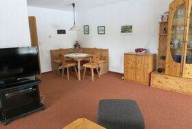 Die Ferienwohnung verfügt über ein Schlafzimmer mit Doppelbett und ein bequemes Schlafsofa im Wohnzimmer. Die gut ausgestattete Küche mit Spülmaschine und Kaffeemaschine lässt keine Wünsche offen. Auf der Terrasse können Sie entspannen und das Bergpanorama und die frische Luft genießen.