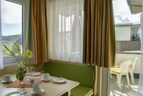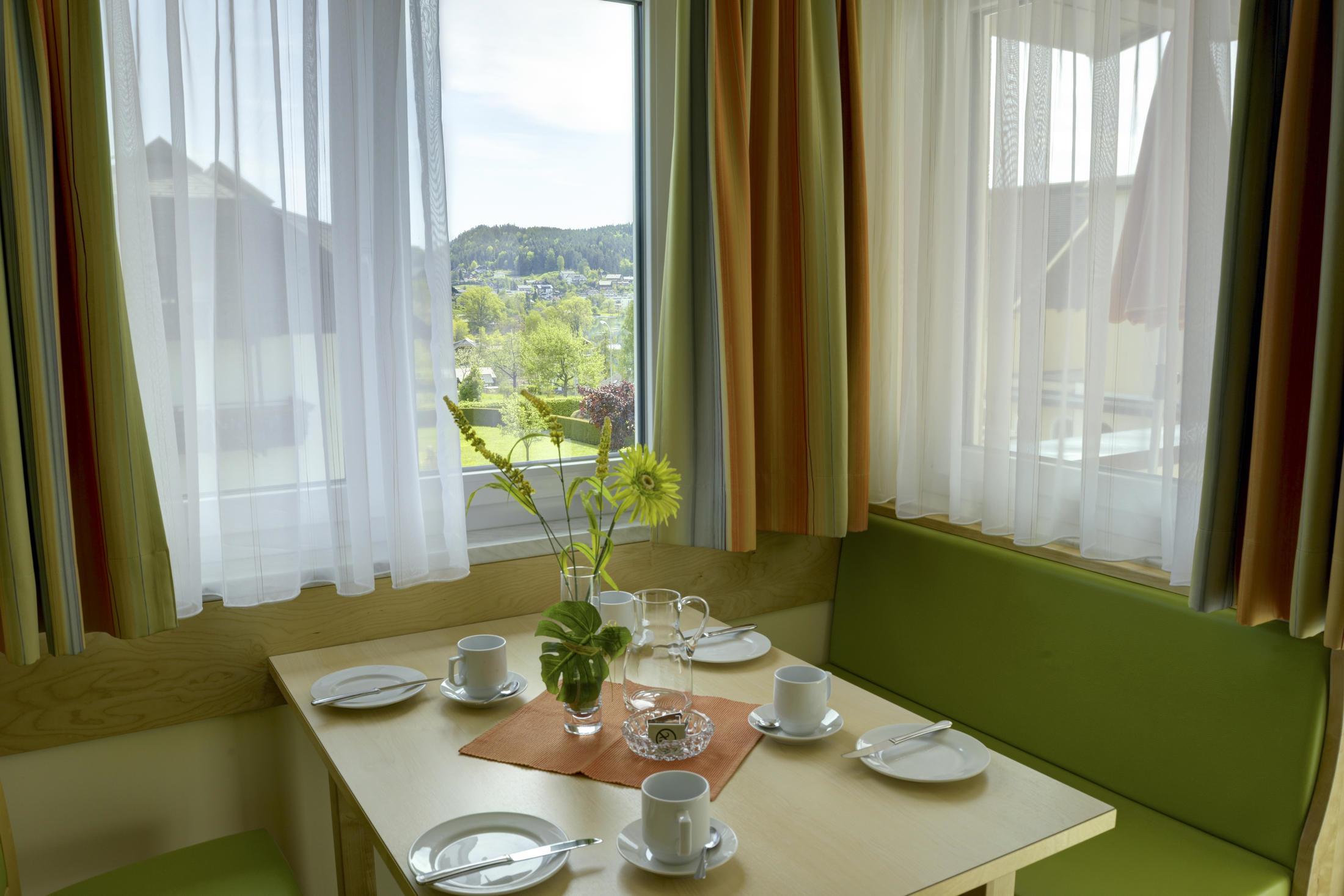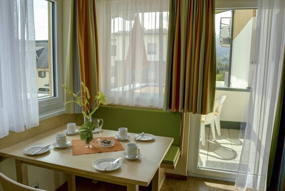 Komplett neue Ferienwohnung im Haus Mittagskogel mit Wohnschlafraum + 1Schlafzimmer, Südostterrasse und etwas Seeblick im 1. Stock, modern eingerichtet mit hellen Holzmöbel und Holzfußböden, große Dusche/WC, große Küche mit Geschirrspüler und Mikrowelle, Bett- und Tischwäsche, Handtücher, Haustelefon, Radio,SatTV in jedem Zimmer, WLAN, Tresor, Sonnenschirm