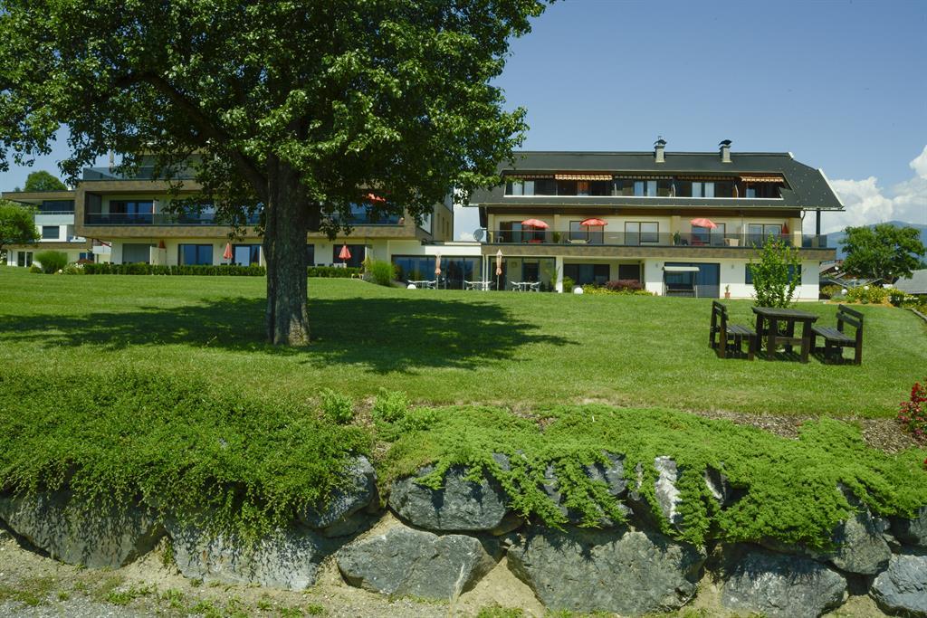 An einem der schönsten und ruhigsten Plätze des Faaker Sees liegt der Seepark Drobollach. Rundherum Wiesen und Felder, absolute Ruhe, ein herrlicher Ausblick auf Österreichs südlichsten Badesee und den Mittagskogel, sonnige Lage, das eigene Strandbad ist nur 100 Meter von den drei Häusern entfernt.