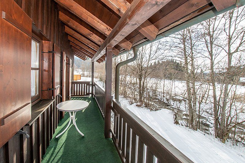 Die Wohnung verfügt über zwei Balkone. Einer davon befindet sich auf der Südseite mit tollem Blick auf die Alpspitze Nesselwang. Der zweite Balkon ist auf der Westseite mit großem Dachüberstand, und dadurch viel Schatten und angenehmen Temperaturen bei Hochsommerwetter. Der Blick von dort auf den Fluss Reichenbach und der angrenzenden Wiesen bietet Erholung pur.