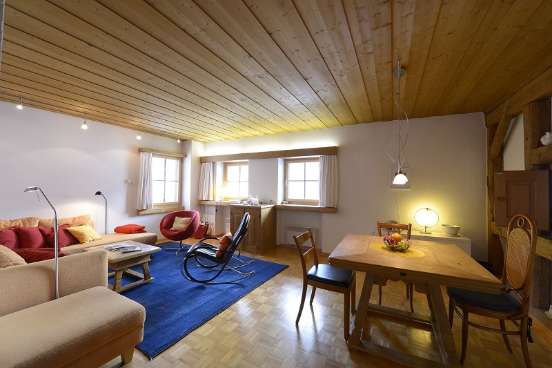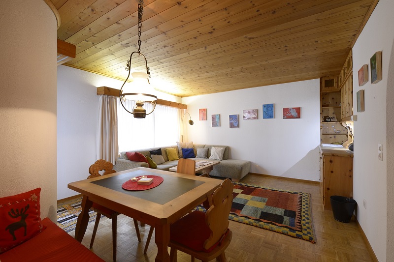Gemütliche und sehr ruhige 3,5-Zimmer- Ferienwohnung eines sorgfältig restaurierten 380-jährigen Engadiner Hauses. Die Wohnung verfügt über 1 Doppelschlafzimmer und 1 Schlafzimmer mit 2 Einzelbetten. 1 Wohnraum- und Essraum mit Ecksofa und Essecke. 1 komplett ausgestattete Küche mit allen Extras, 1 Nasszelle mit Bad/Dusche und WC. Balkon gegen Süden.