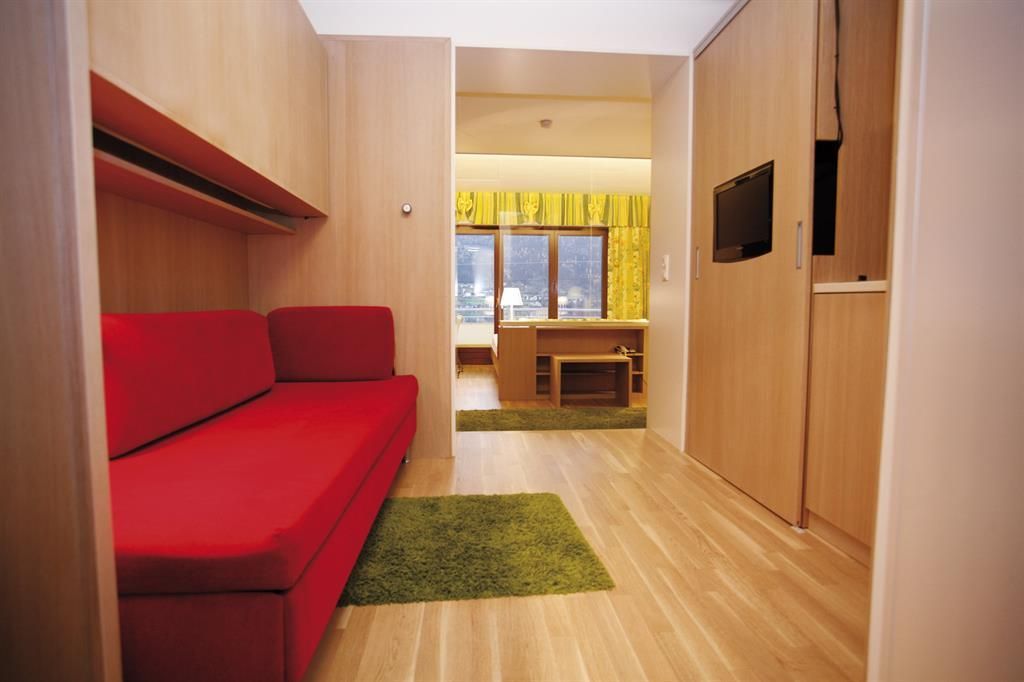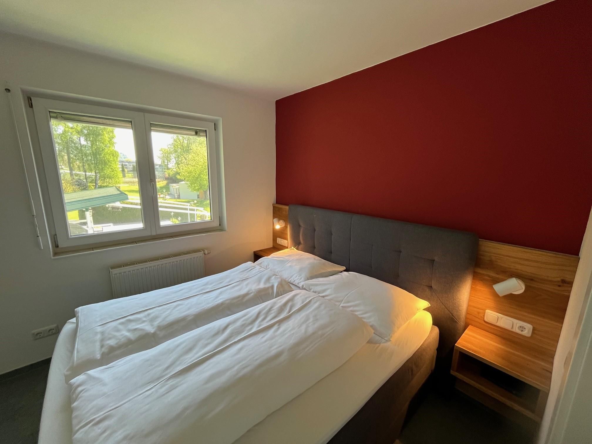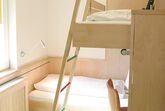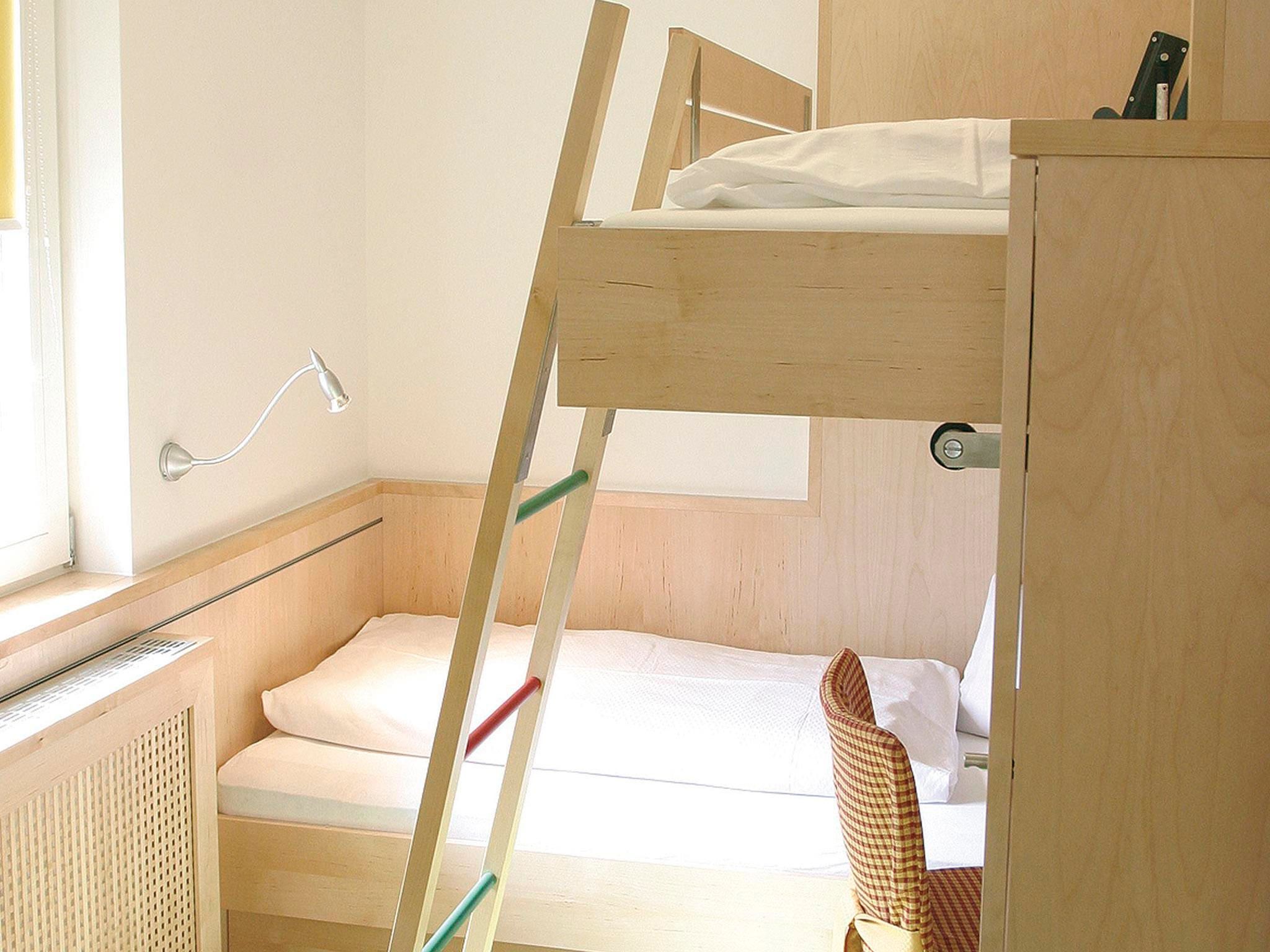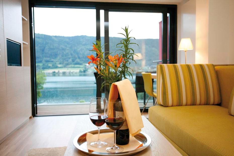 Familienzimmer mit Balkon oder Terrasse und Seeblick im Haupthaus, Landhaus oder Haus am See, seeseitiges Elternzimmer und getrenntes Kinderzimmer, teilweise Hochbetten, Bad oder DU/WC, Föhn, Sat-TV, gratis W-Lan