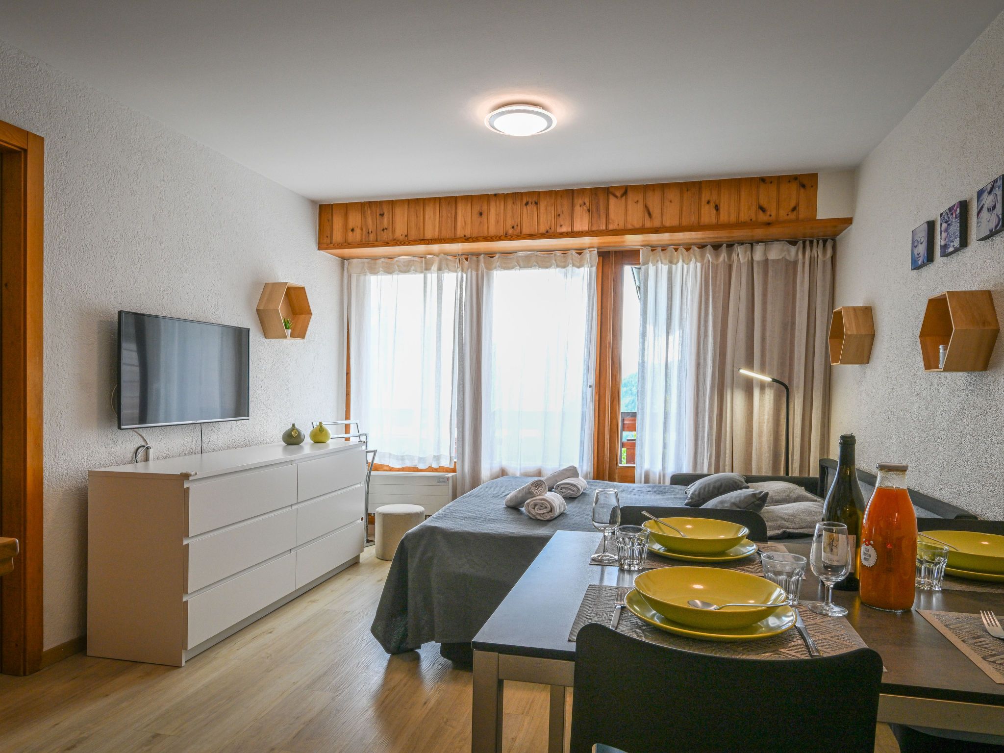 Eaux-Vives 213, 2-Zimmer-Wohnung 42 m2, Südlage. Schön und geschmackvoll eingerichtet: Eingang. Wohn-/Esszimmer mit 1 Diwanbett. Ausgang zum Balkon. 1 kleines Zimmer mit 2 Betten (90 cm, Länge 180 cm). Offene Küche (Backofen, Geschirrspüler, 4 Glaskeramikplatten, Toaster, elektrische Kaffeemaschine, Kapseln für die Kaffeemaschine (Dolce Gusto) extra, Racletteofen, Fondue Set (Chinoise, Käse)) mit Esstisch. Dusche/WC. Grosser Balkon. Balkonmöbel. Schöne Sicht auf die Berge. Zur Verfügung: Internet (Wireless LAN, gratis). Garage Nr. 213. Bitte beachten: Nichtraucher-Unterkunft. 1 kleines Haustier/Hund erlaubt.