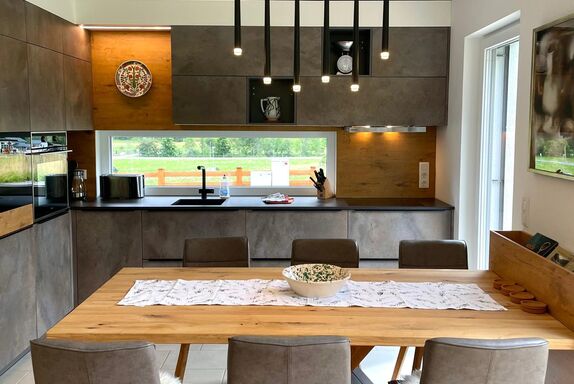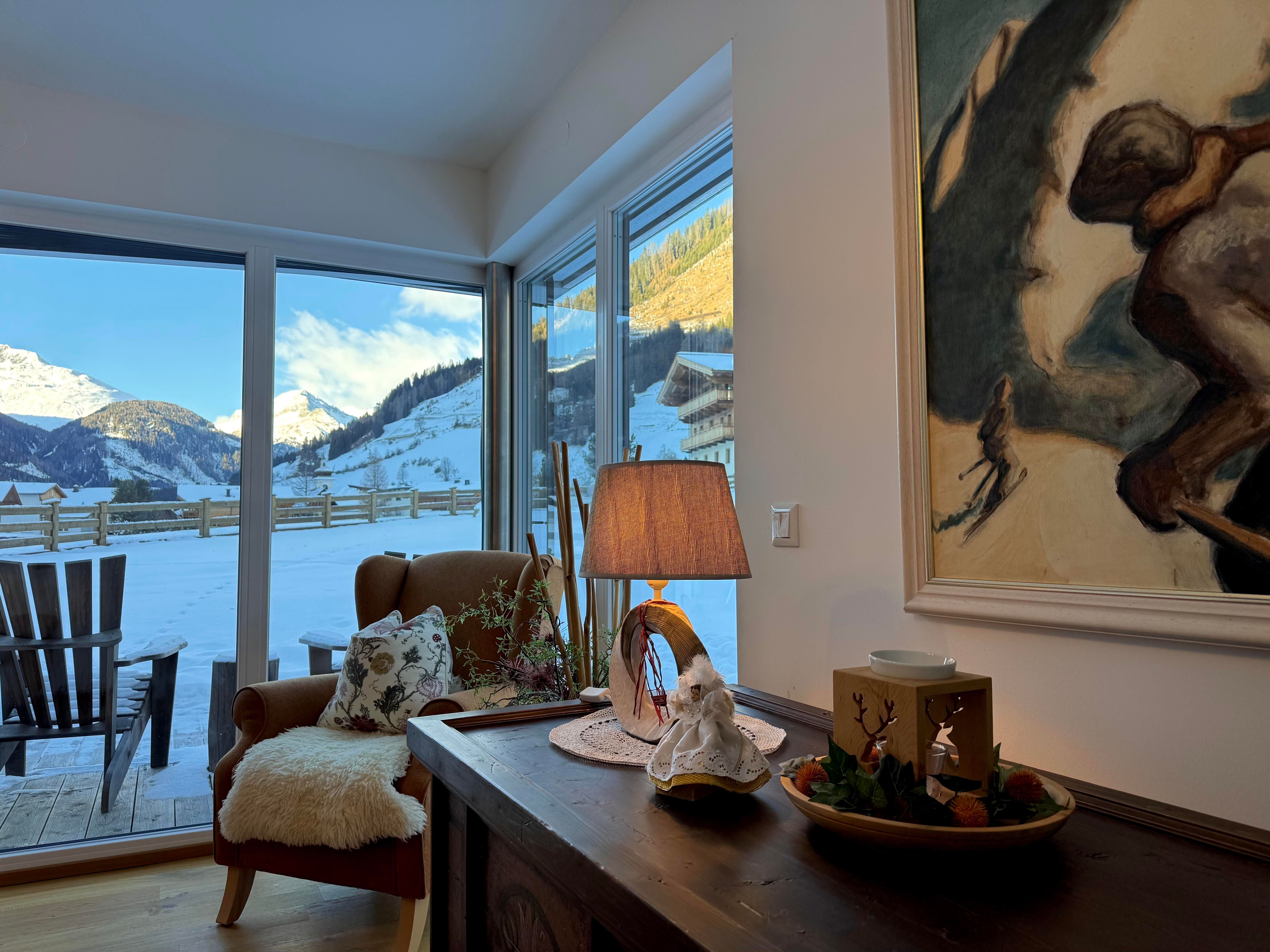 In den TYROL PURElife Lodges genießen Sie moderne Annehmlichkeiten, authentischen Tiroler Charme und Herzlichkeit. Unsere großzügigen Fensterfronten wirken wie lebendige Leinwände, die je nach Jahres- und Tageszeit die atemberaubende Deferegger Bergwelt im zarten Sonnenaufgangslicht, eingehüllt im Schneekleid oder durchzogen von der herbstlichen Farbpalette in Orange-, Rot- und Goldtönen bis hin zum bunten Erwachen des Frühlings abbilden. Betrachten Sie die Werke des Künstlers Natur direkt aus Ihrer Lodge. Ob beim Kochen in den perfekt ausgestatteten Küchen, beim Relaxen in den Hydrosoft-Infrarotkabinen aus Zirbenholz, beim Schlafen in den erholsamen Zirbenholzbetten oder beim Genießen der sonnigen Terrassen und des privaten Gartenanteils, hier verbinden sich Ruhe, Komfort und Natur zu einem unvergesslichen Aufenthalt. Die Einrichtung vereint elegant moderne Elemente mit traditionellen Nuancen. Von Vollholzbetten aus Zirbenholz und alten, antiken Bauernschränken über stimmungsvolle Gemälde und hochwertige Teppiche bis hin zu liebevoller Dekoration trägt alles dazu bei, dass Sie sich sofort wie zu Hause fühlen.