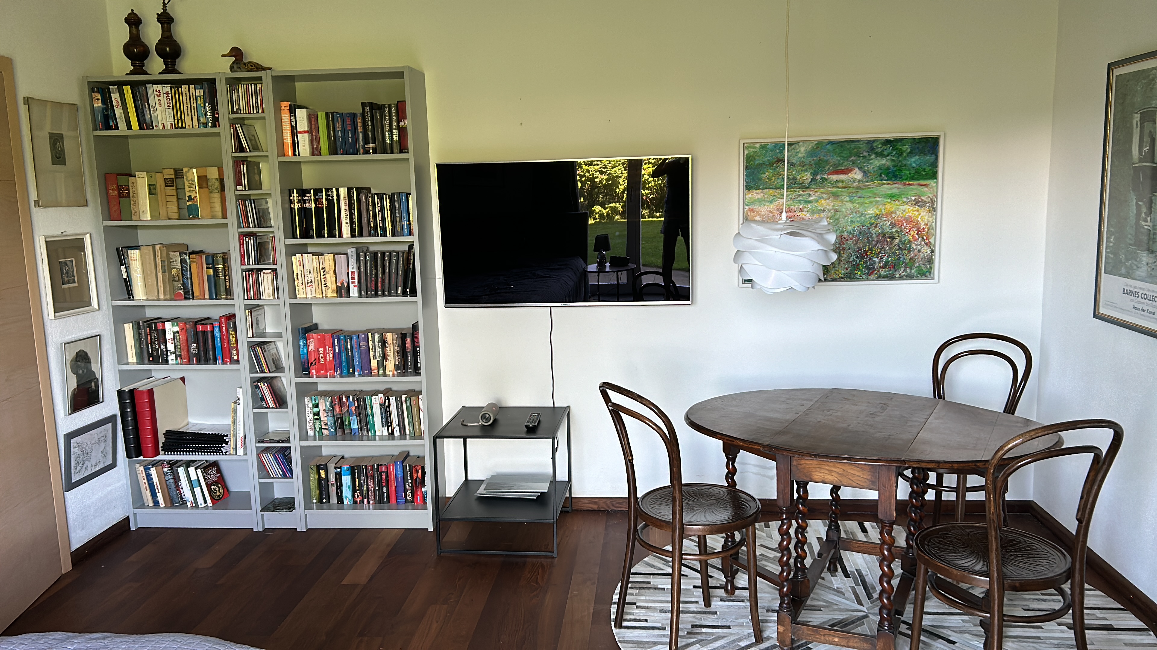 Die 60qm Wohnung liegt im Erdgeschoß, mit Wohn/Schlafzimmer, Schlafzimmer, Küche, hochwertigem Duschbad mit Tageslicht, einem großzügigen Flur und einer hübschen Terrasse, die im Frühjahr von blühender Clematis und vielen Himbeeren gesäumt wird.