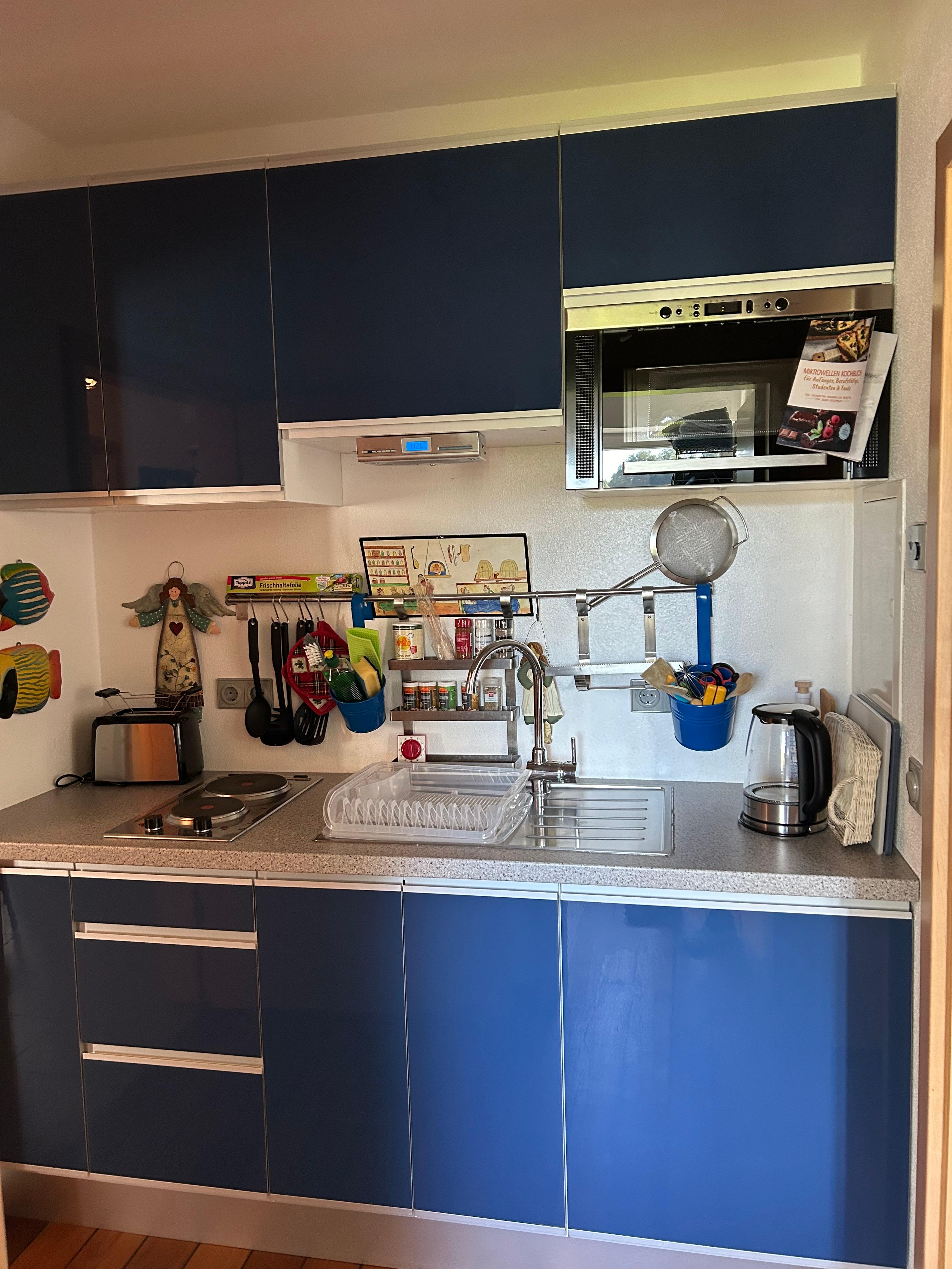 In der Küche gibt es 2 Herdplatten, einen Standbackofen, Mikrowelle, einen Wok und dazu passende Kochbücher. Sie ist mit allem ausgestattet, was das Kochherz begehrt..