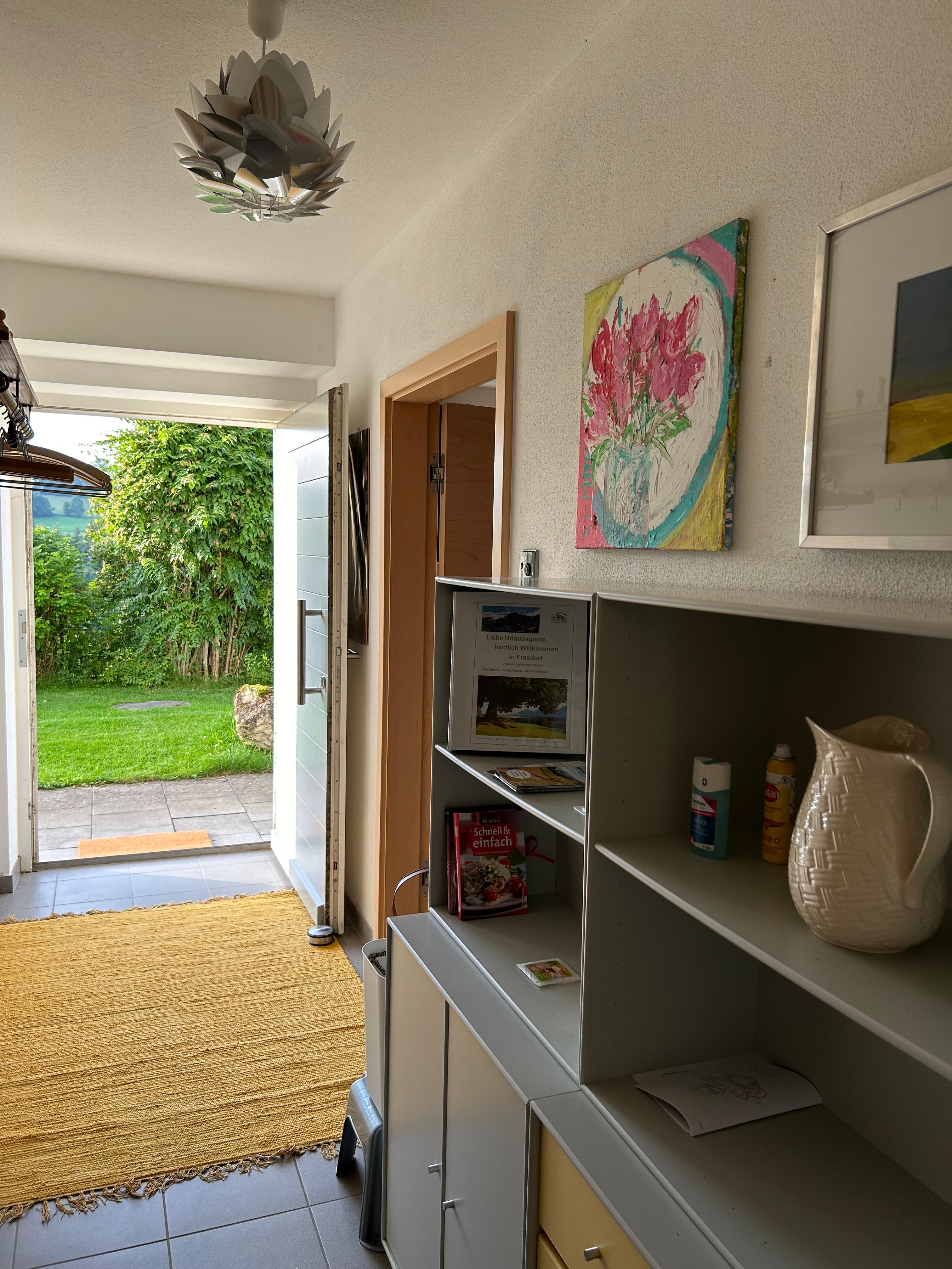 Die Ferienwohnung ist von der Hauptwohnung gut abgeteilt und besitzt einen eigenen Eingang. Ebenso einen abtrennbaren, großen (270qm) Gartenanteil. Natürlich kann der Carport mitbenutzt werden, zusätzlich gibt es noch einen Standstreifen und Abstellmöglichkeiten für Fahrräder.