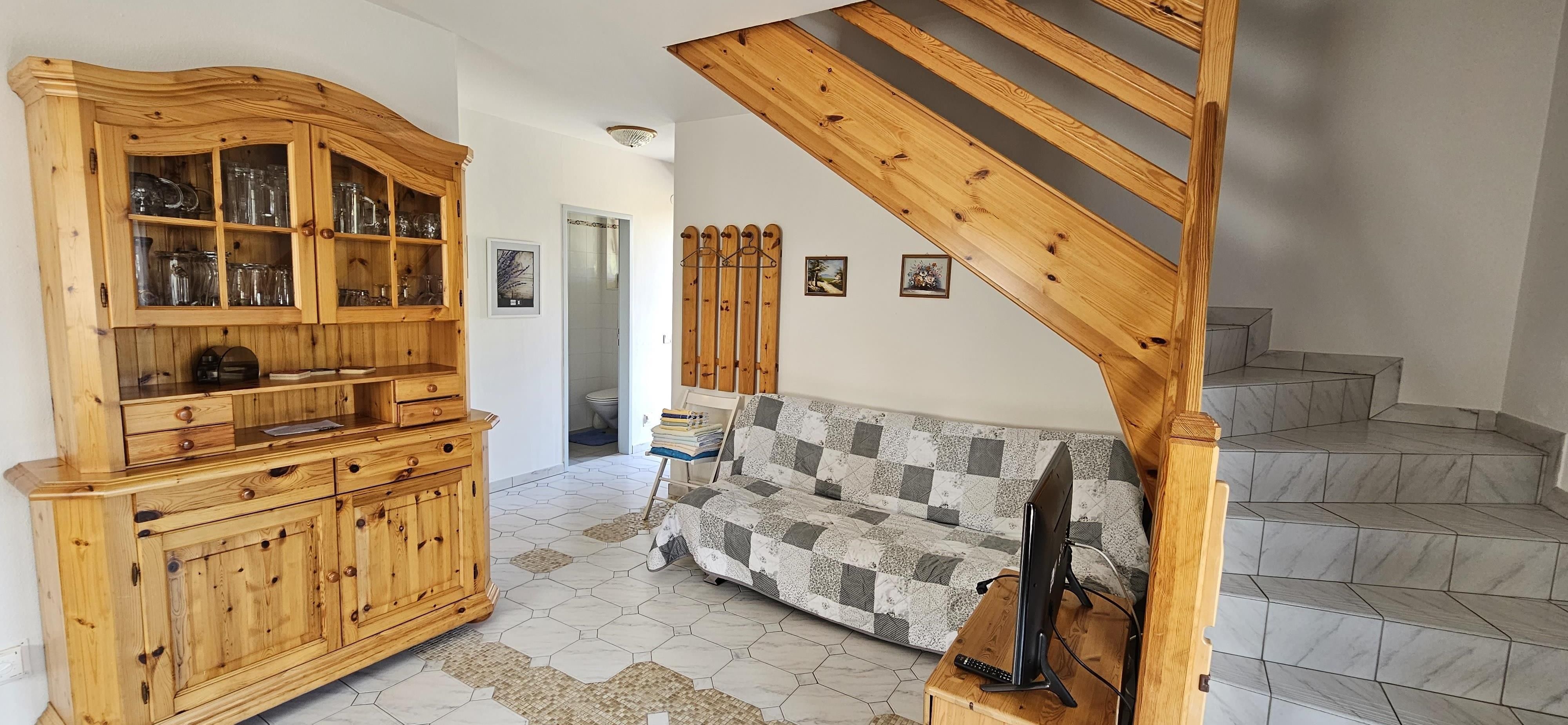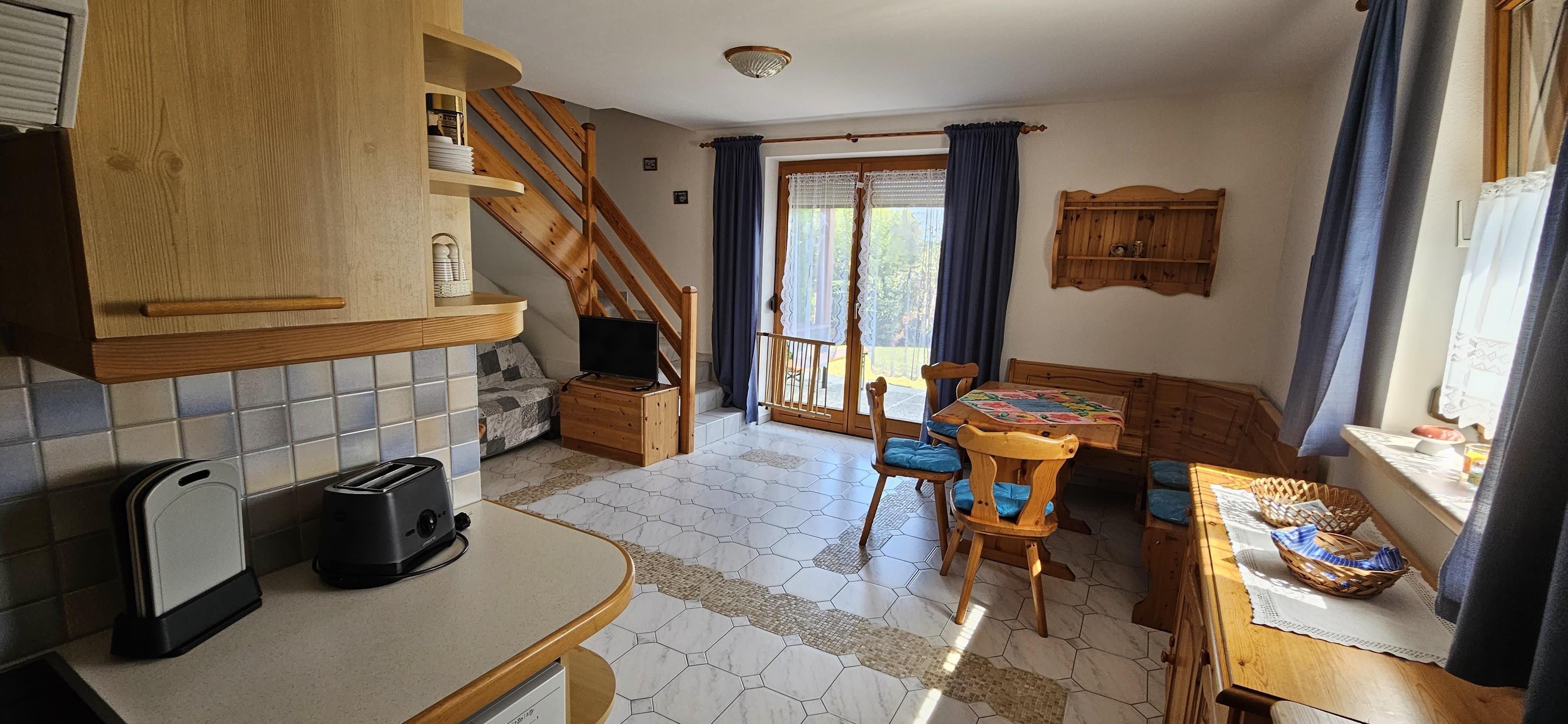 Die Ferienwohnung verfügt über eine große Wohnküche, ein Schlafzimmer, ein Kinderzimmer mit Stockbett und ein normales Bett, Bad, WC, Terrasse mit Garten, Sonneliegen und Sitzgarnitur. Sie haben auch freien Zugang in das schöne Strandbad, welches nur drei Minuten von unseren Ferienwohnungen entfernt ist.