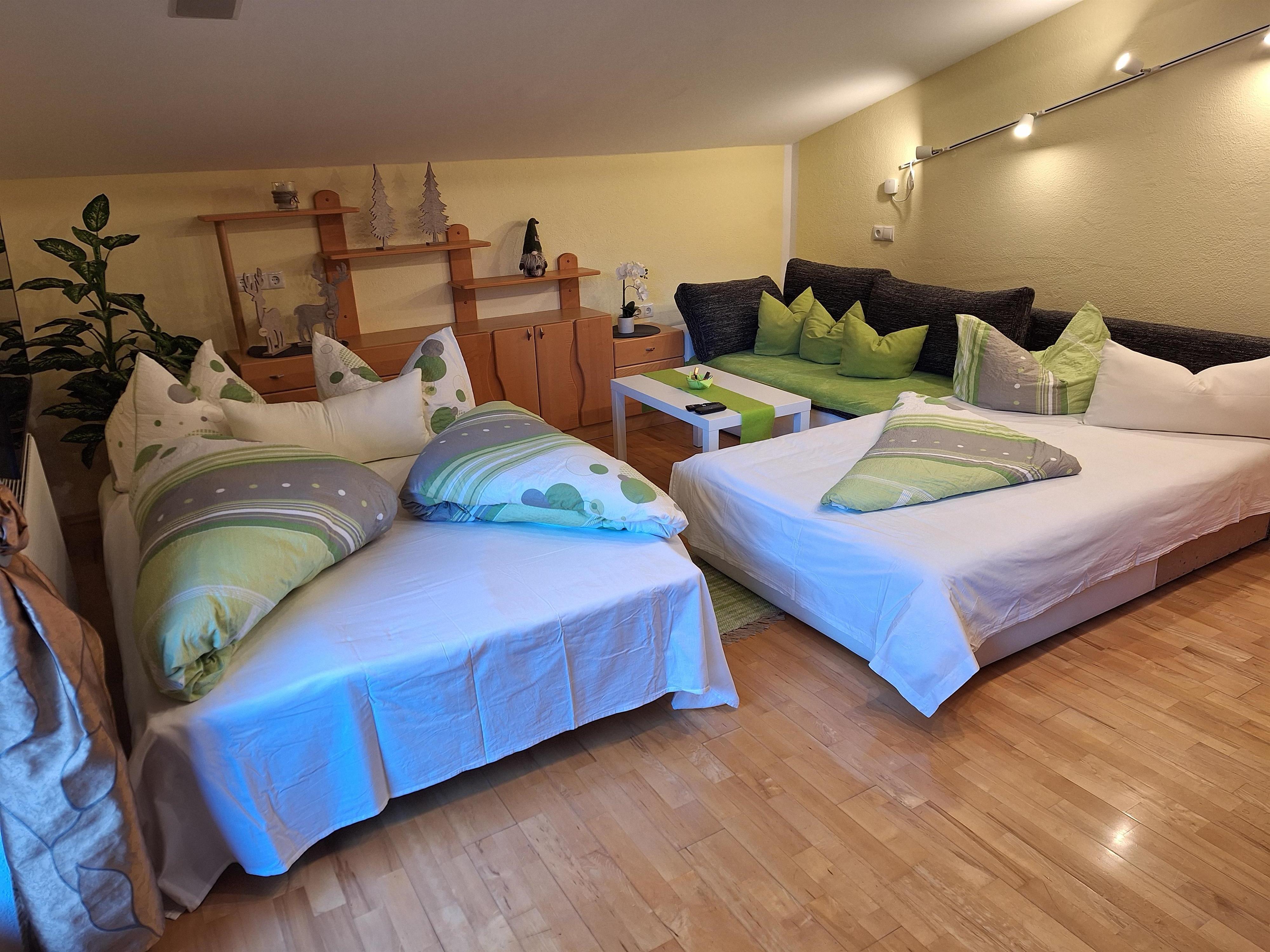 Willkommen im familiengeführten Appartment Serles! Das neu renovierte Dachgeschoss-Apartment bietet 85 m² Wohnfläche mit eigenem Zugang über den Garten. Es verfügt über ein gemütliches Doppelzimmer mit TV, einen Balkon mit Blick auf die Serles, eine voll ausgestattete Küche mit Geschirrspüler, sowie ein Wohnzimmer mit zwei Schlafcouches und TV. Das großzügige Bad bietet Badewanne und Dusche, zudem steht eine Waschmaschine bereit. Wir freuen uns, Sie in unserer familiärgeführten Unterkunft im Stubaital begrüßen zu dürfen!
