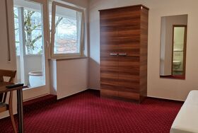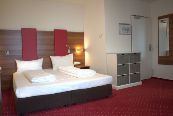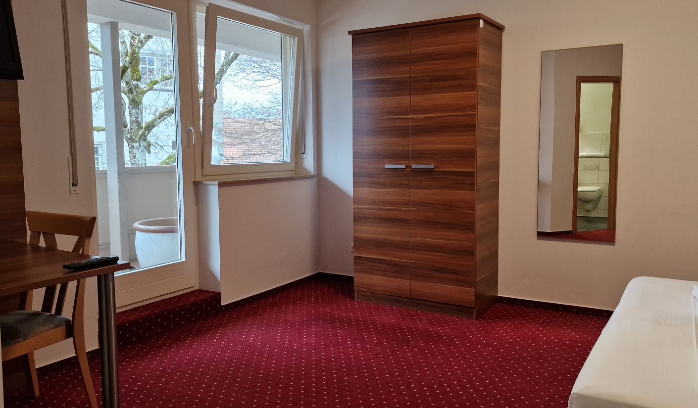Unser Apartment mit Ausblick auf das Schloss. Die Ferienwohnung 01 befindet sich im 1. Obergeschoss. Mit 35 qm ist sie eine der kleinsten Wohnungen in unserem Gästehaus. Diese verfügt über ein Schlafzimmer mit Doppelbett, Badezimmer und einen großen Balkon. Das Zimmer verfügt über einen Flachbild TV, Schränke, Tisch, kostenloses WLAN und eine hochwertige Ausstattung. Das Schlafzimmer ist mit Flachbildfernseher und SAT TV gemütlich eingerichtet. Es ist für maximal zwei Personen zu belegen. Ein Kinderbett kann falls verfügbar optional bereitgestellt werden. Das Badezimmer ist mit einer Dusche und Spiegel geschmackvoll gestaltet. WC, Waschbecken, Handtücher, Haartrockner und Pflegeprodukte sind vorhanden.