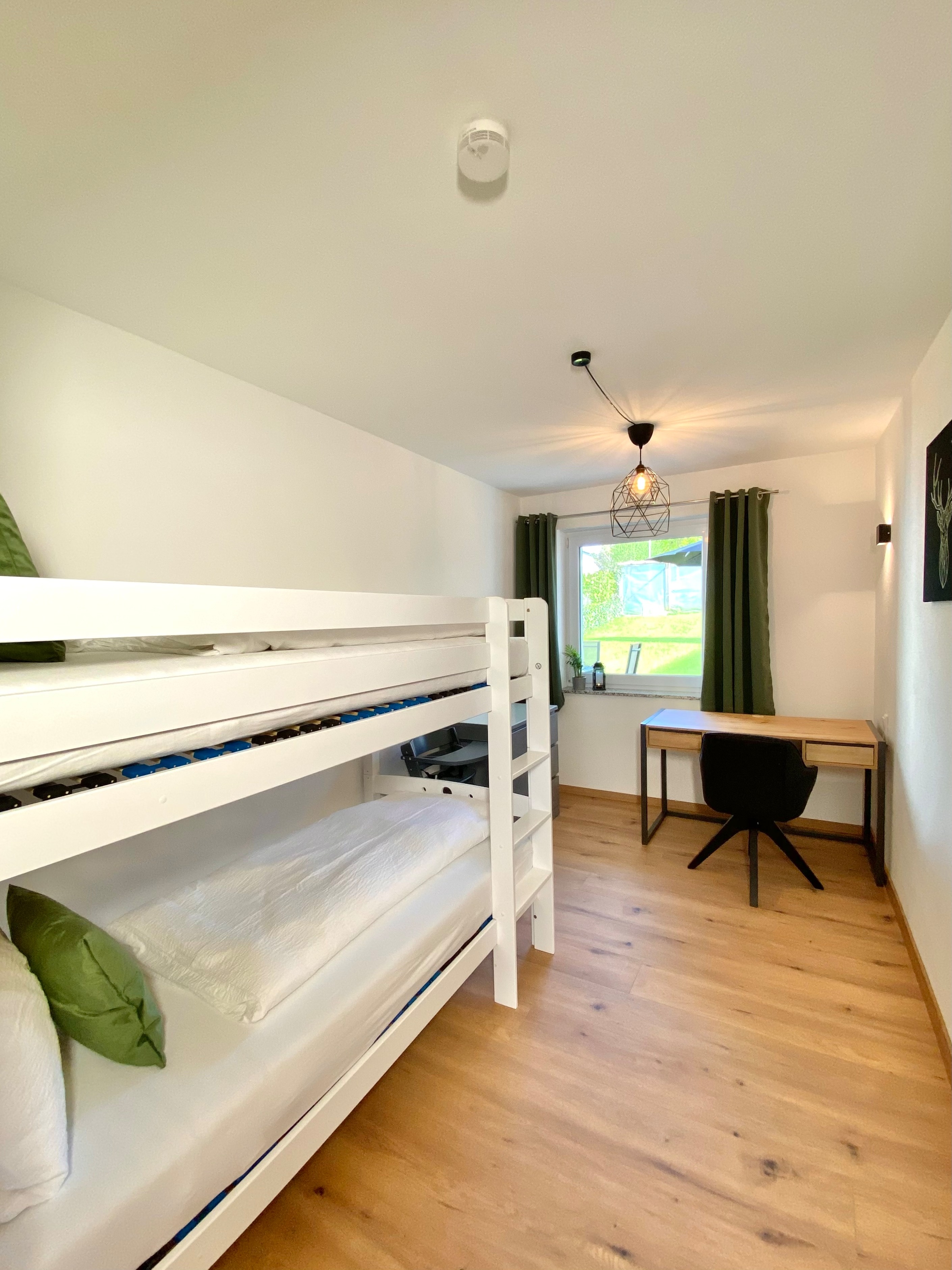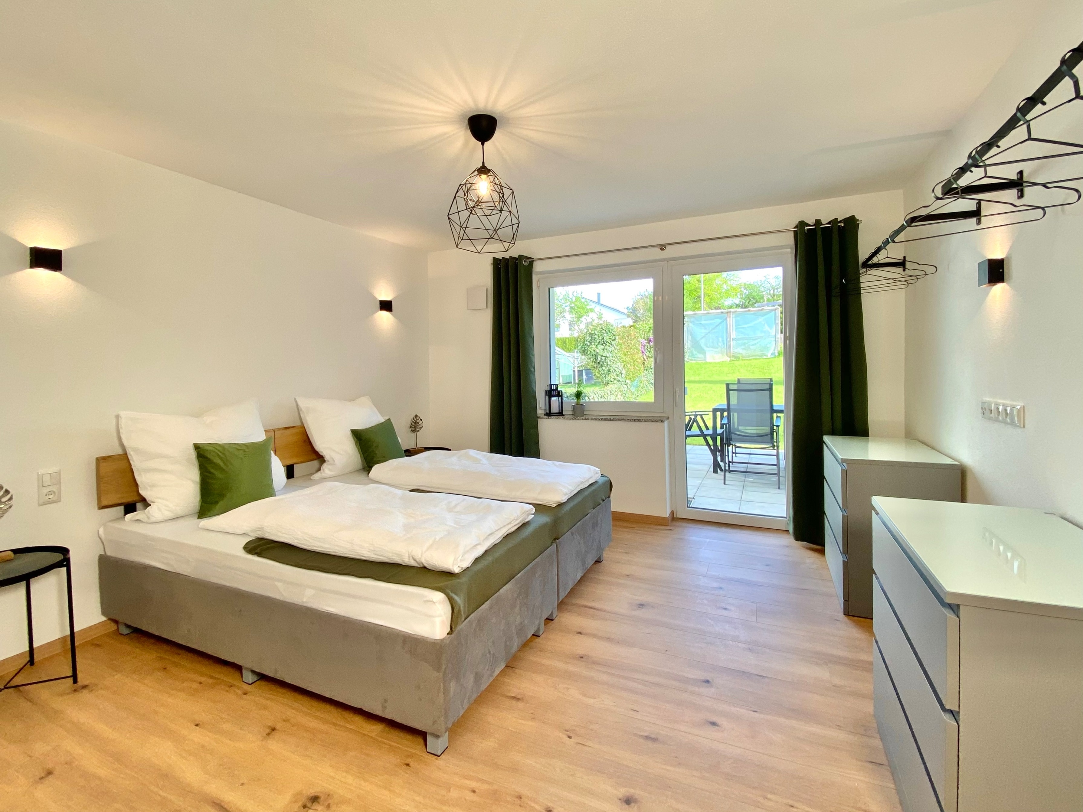 Diese einzigartige Wohnung besticht durch ihren modernen Einrichtungsstil. Sie bietet Platz für bis zu 8 Personen und verfügt über eine gut ausgestattete Küche, einen Wohnraum mit einem schönen Essbereich und einem Sofa, das sich in ein Bett 180x200 cm verwandeln lässt. Zusätzlich gibt es ein Zimmer mit einem Schreibtisch und einem Stockbett, 2 gemütliche Schlafzimmer mit jeweils zwei Einzelbetten 90x200 cm, die auch zu einem Doppelbett verbunden werden können, sowie eine Terrasse mit Garten.