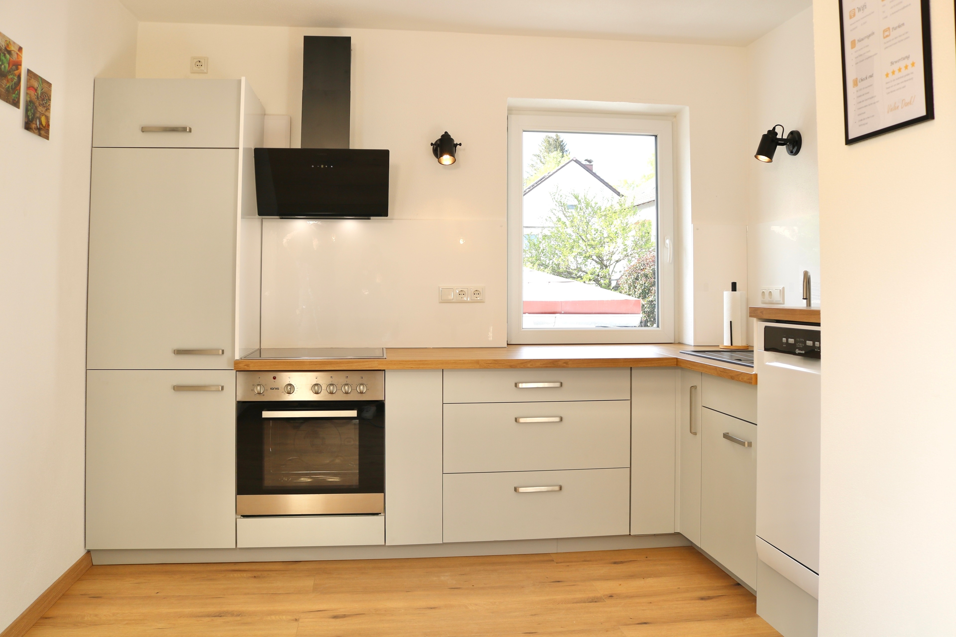 Für den abendlichen Schlummertrunk ist die schöne Terrasse ideal. Die gut ausgestattete Küche besitzt unter anderem einen Kühlschrank, einen Herd zum Kochen und sogar eine Spülmaschine.