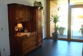 Badezimmer mit Bad und WC. Garderobe.