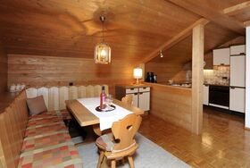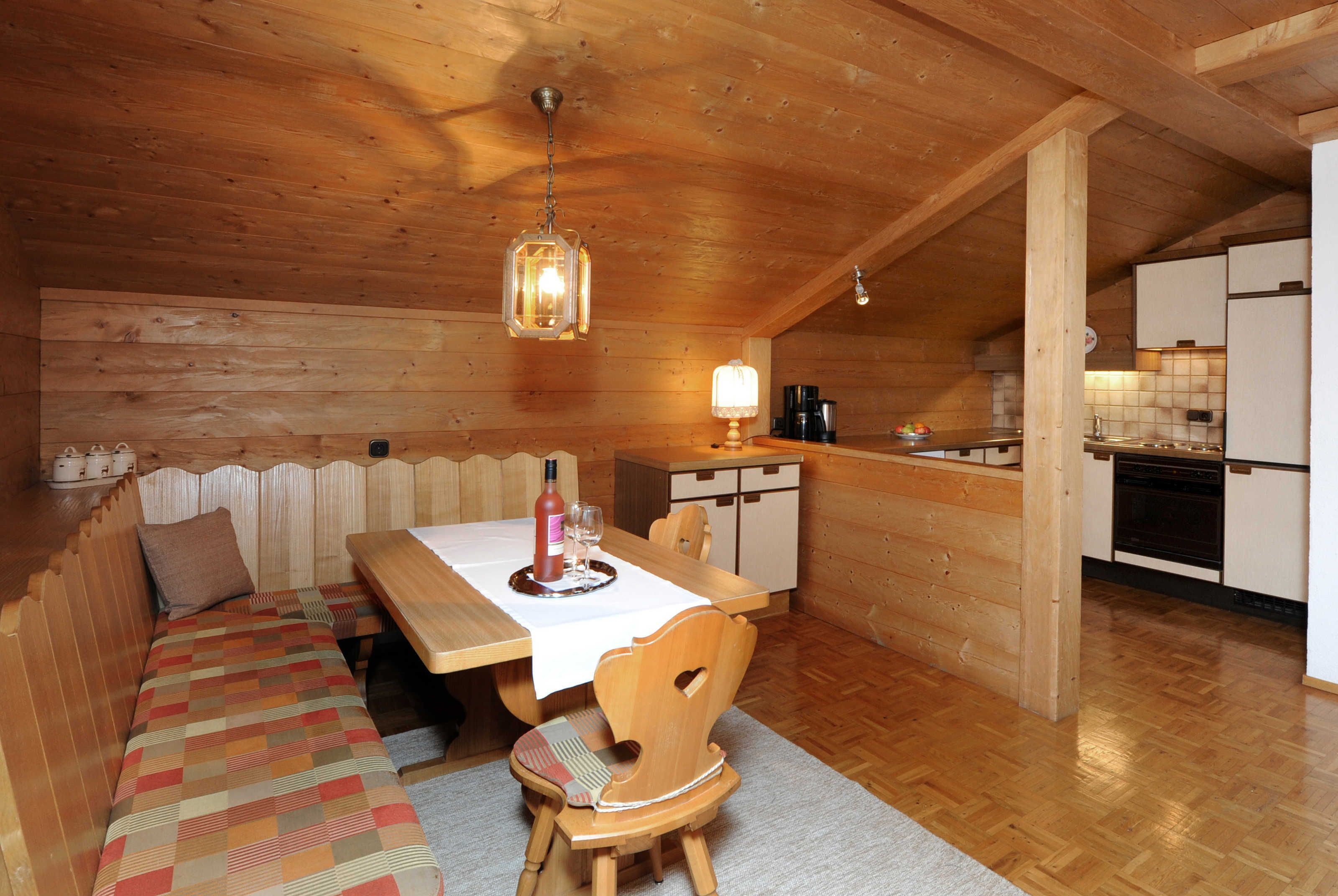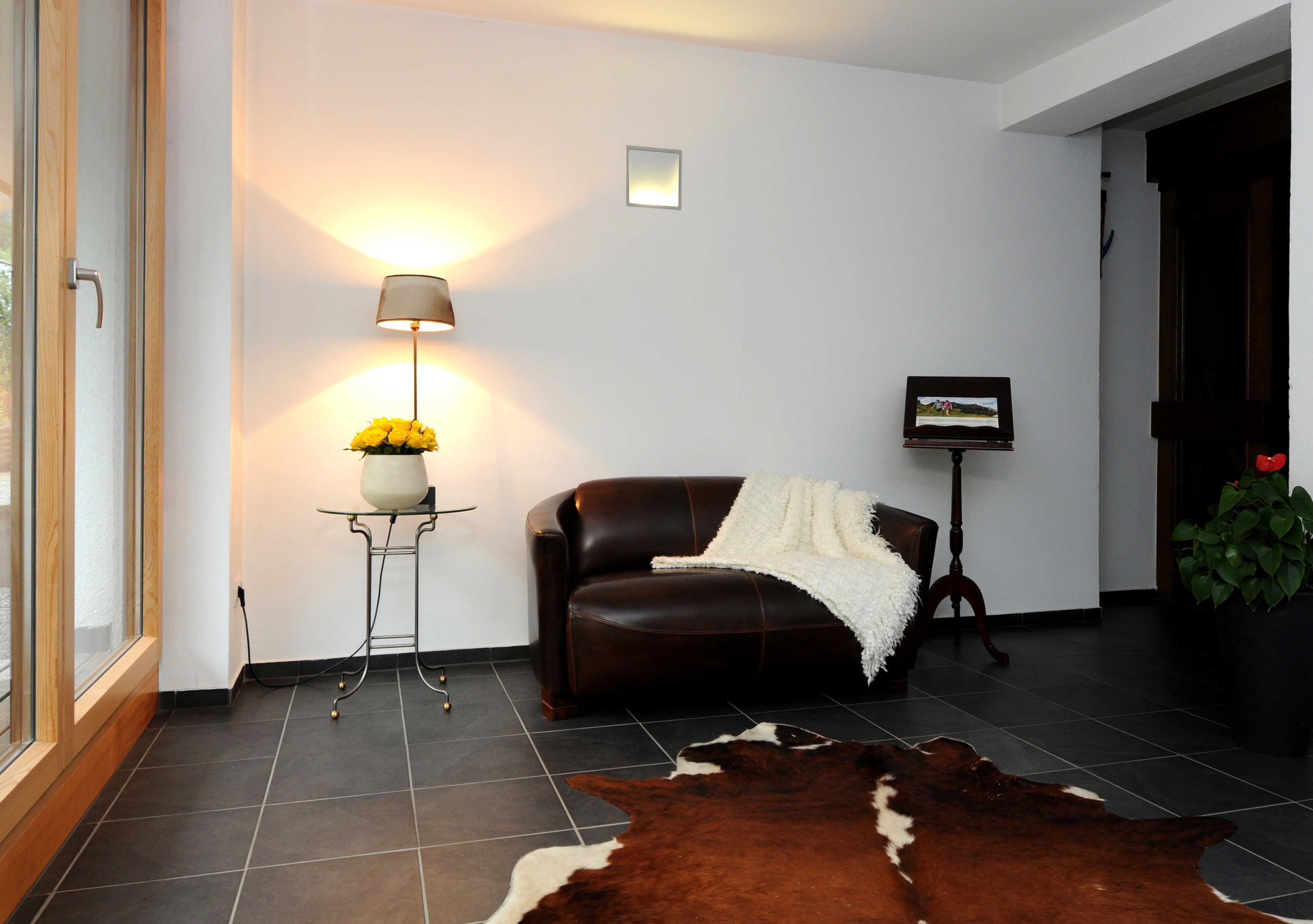 Apartment im 3. Obergeschoss für 2 Erwachsene und 2 Kinder mit privatem Balkon und Blick auf die Künzelspitze. Wohnzimmer mit einer ausziehbaren Couch (180 x 200).