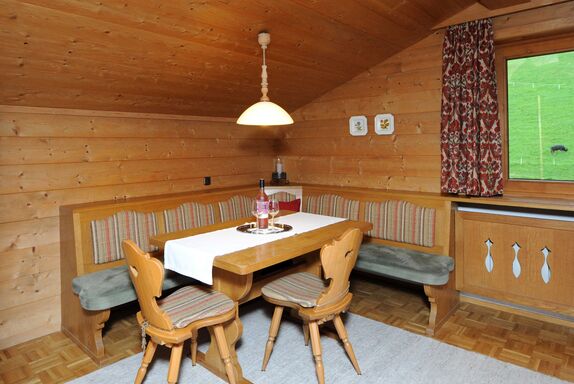 Gesellige Küche mit gemütlicher Eckbank im Essbereich.