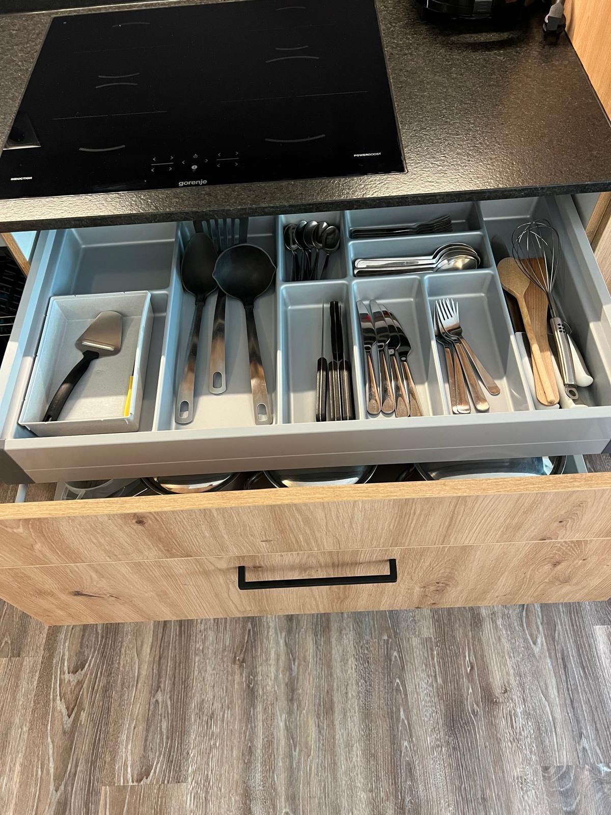 - Kochutensilien und Geschirr: Hochwertige Kochutensilien, Töpfe, Pfannen und Geschirr sind vorhanden, sodass Sie alle kulinarischen Wünsche erfüllen können.