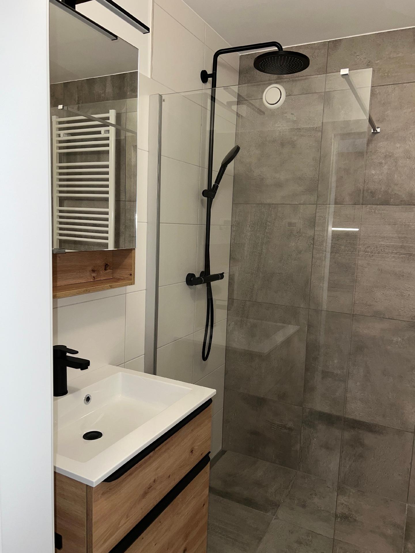 - Moderne Badezimmer: Die Badezimmer wurden komplett renoviert und mit modernen Armaturen ausgestattet. Sie bieten eine Dusche mit Regenbrause, ein Waschbecken mit großem Spiegel und ausreichend Ablagefläche.