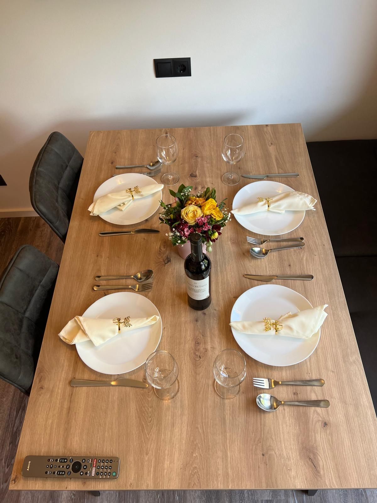 - Voll ausgestattete Küche: Die Küche wurde mit den neuesten Geräten ausgestattet. Dazu gehören ein großer Kühlschrank mit Gefrierfach, ein moderner Backofen, eine Mikrowelle, ein Geschirrspüler und ein Induktionskochfeld. Eine Kaffeemaschine, ein Wasserkocher und ein Toaster stehen ebenfalls zur Verfügung.