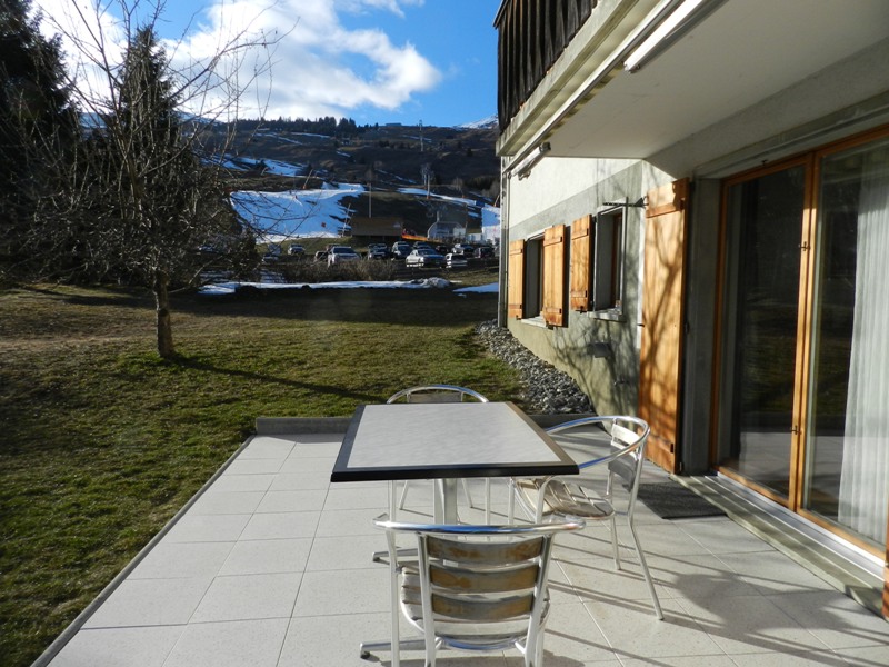 Schöne helle 3.5 Zimmerwohnung mit Sitzplatz und Liegewiese. Der Sessellift ist nur ca. 100m entfernt. Dorfladen, Bank inkl. Bankomat und Arzt nicht weit entfernt.
