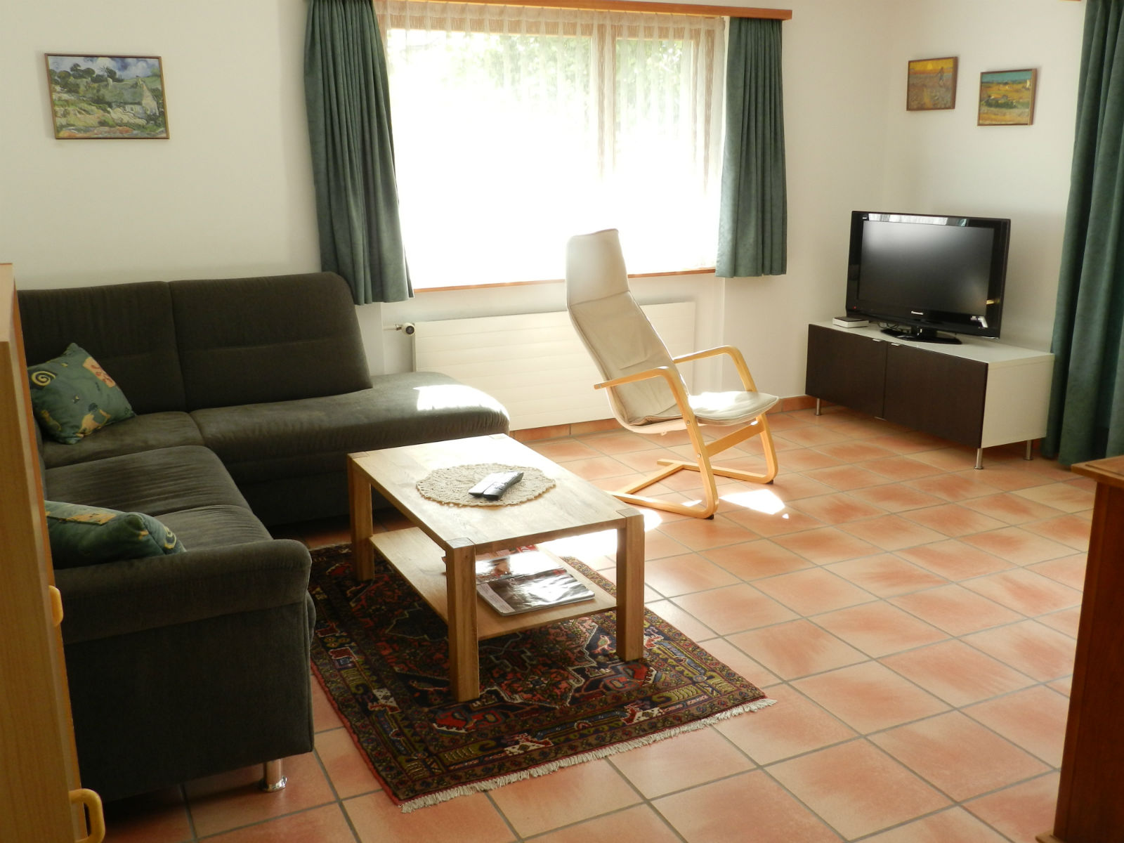 Gemütliches Wohnzimmer mit Sofa, TV, Radio und WLAN. Küche:
